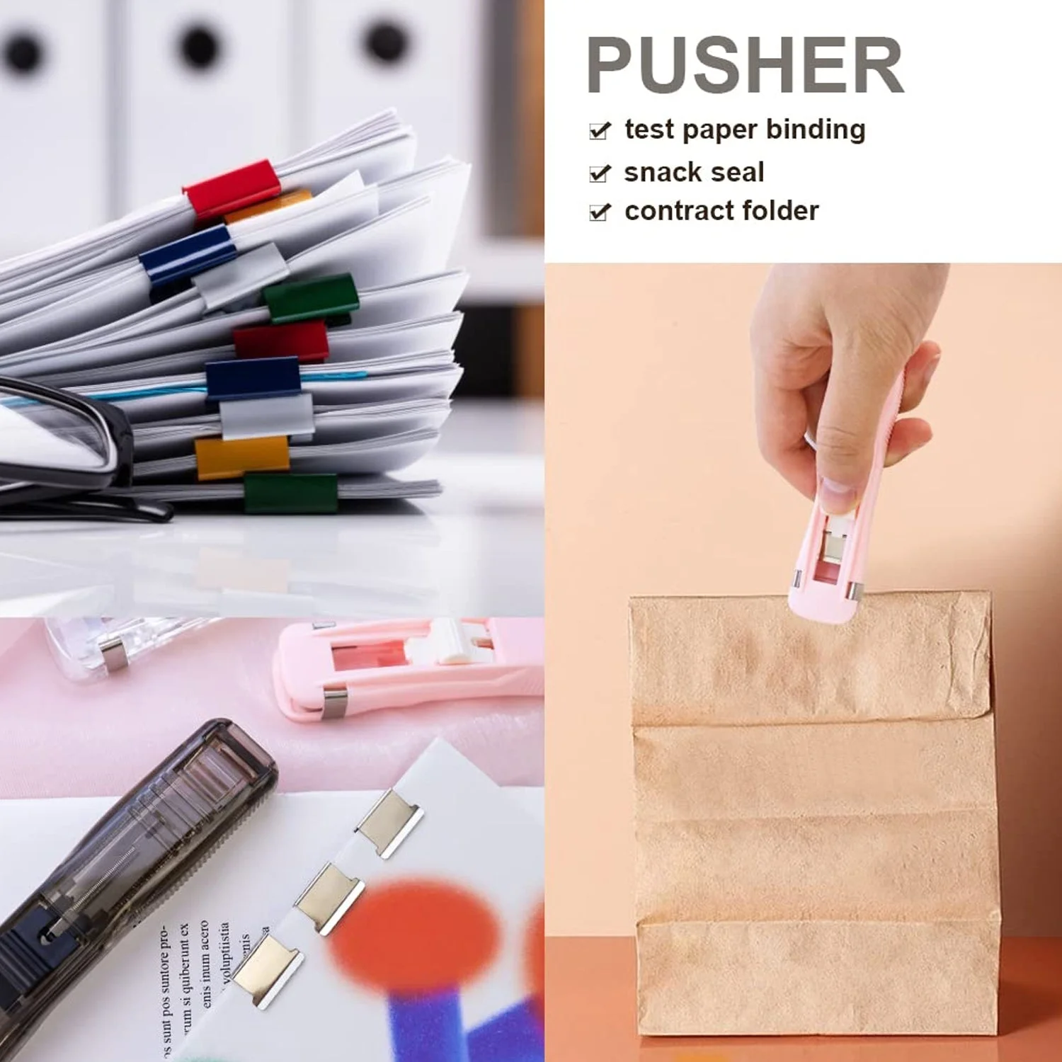 Portable Paper Clam With 8 Pcs Clip Dispenser Handheld Paper Fast Clam Clip Dispenser Labor Saving Wrapping Paper Handheld Student Paper Clipper for Home Office School Teacher Gifts (1 Set)