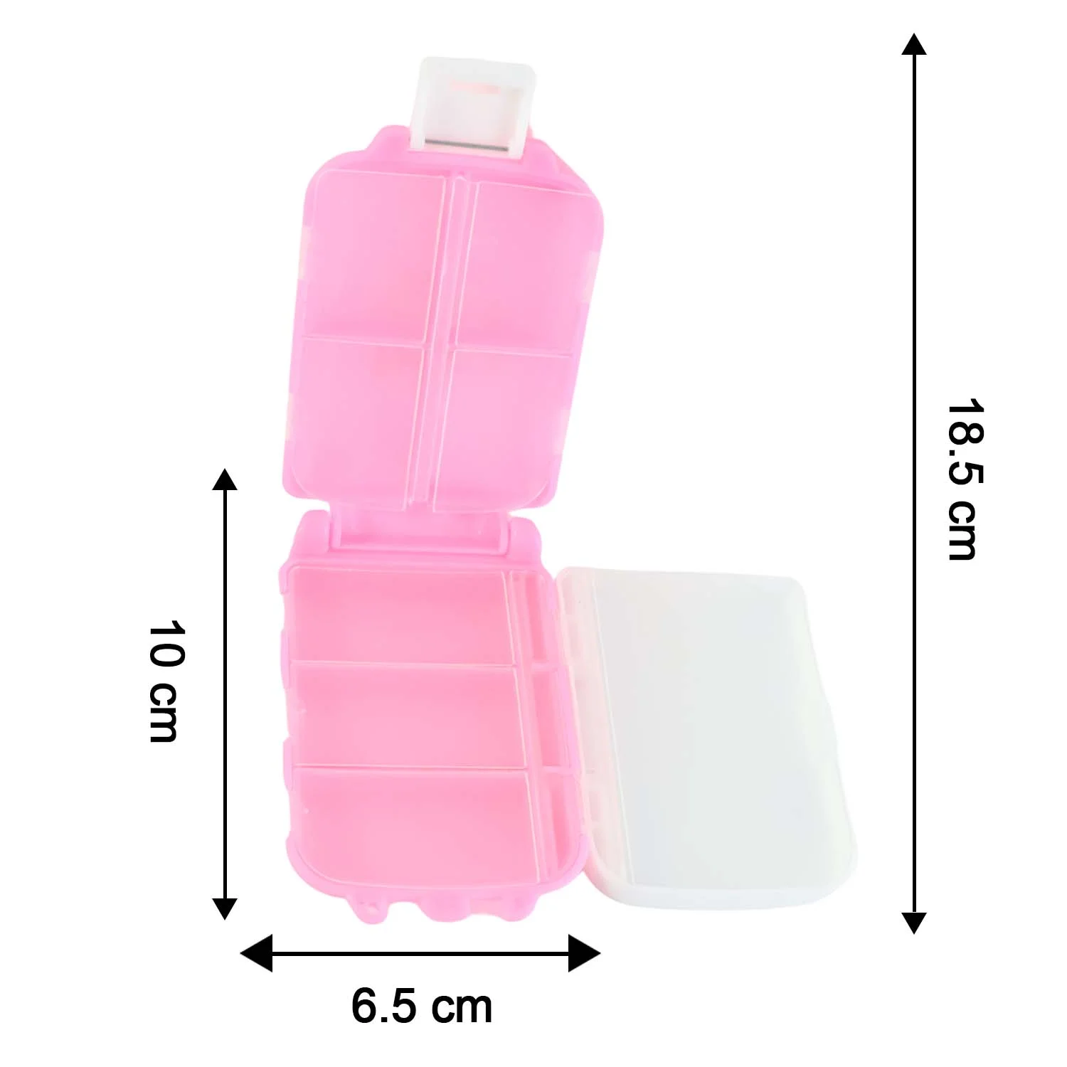 Portable Pink Dual-Sided Pill Organizer Box – 8-Compartment Pocket Medicine Case with Secure Snap Locks – Moisture-Resistant, BPA-Free Plastic Travel Storage for Daily Vitamins, Tablets & Small Essentials