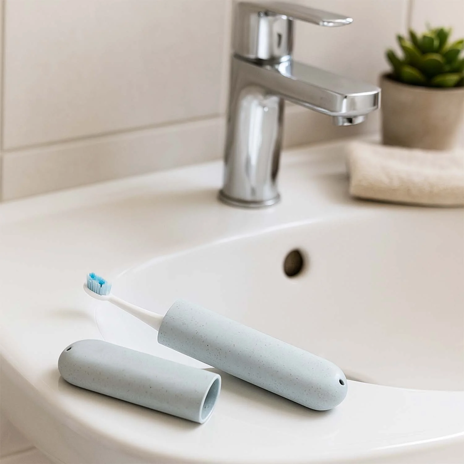 Hygienic design protects toothbrush from dust, dirt, and moisture.