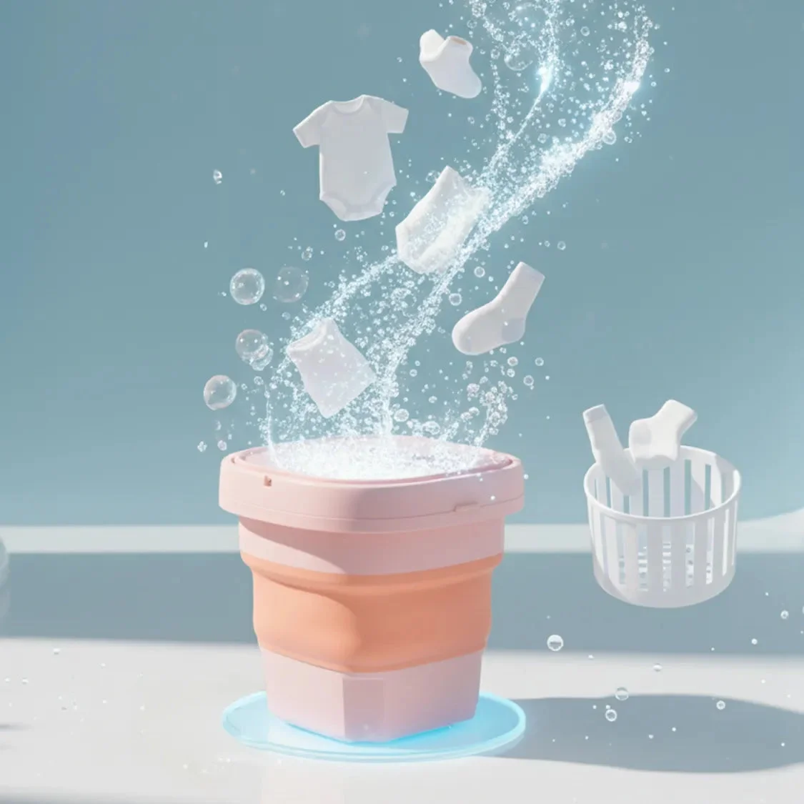 Portable Washing Machine, Foldable Washer and Dryer Combo, Small Foldable Bucket Washer for Baby Clothes, Underwear or Small Items, Apartment, Dorm, Camping, Travel laundry (1 Set / Mix Color)