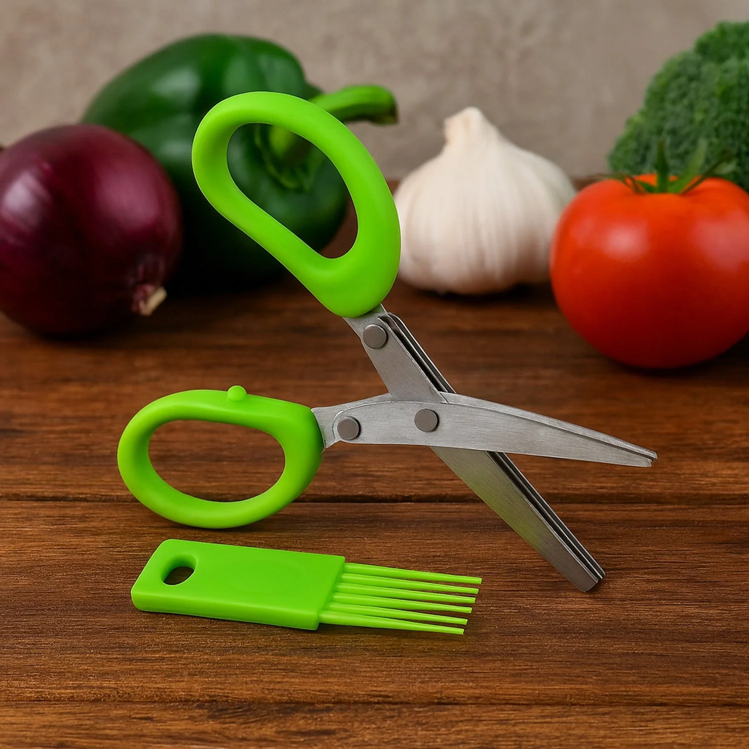 Premium 3-Blade Multipurpose Kitchen Scissors with Cleaning Comb – Heavy Duty Stainless Steel Herb Cutter Scissors for Vegetables, Salad, Coriander, Spring Onions, Spices & Garnishing – Fast Cutting Kitchen Tool with Soft Grip Handle for Effortless Chopping (1 Pc)