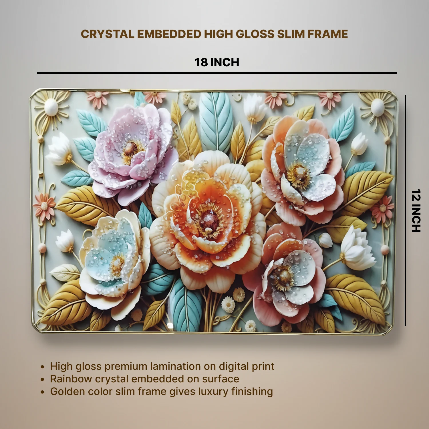 Be the first to review Premium 3D Floral Wall Art Panel – Luxury Golden Frame Home Decor!