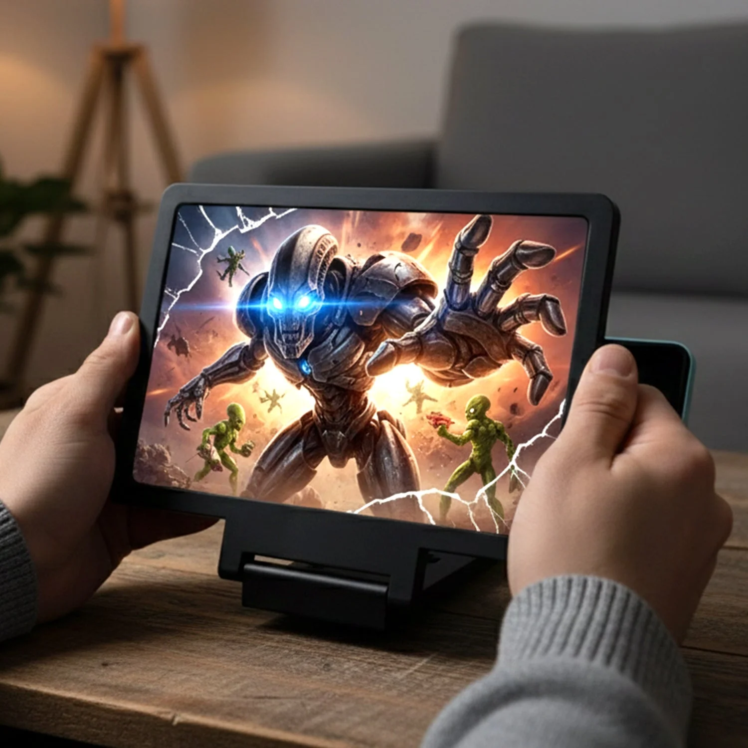 Upgrade your mobile viewing experience with this 3D Mobile Phone Screen Enlarger, designed to magnify your smartphone screen for a bigger and more comfortable display. It features a high-clarity magnifier lens that makes watching movies, web series, sports, reels, and videos more enjoyable. The foldable stand design makes it easy to carry and perfect for travel, office desks, and home use.