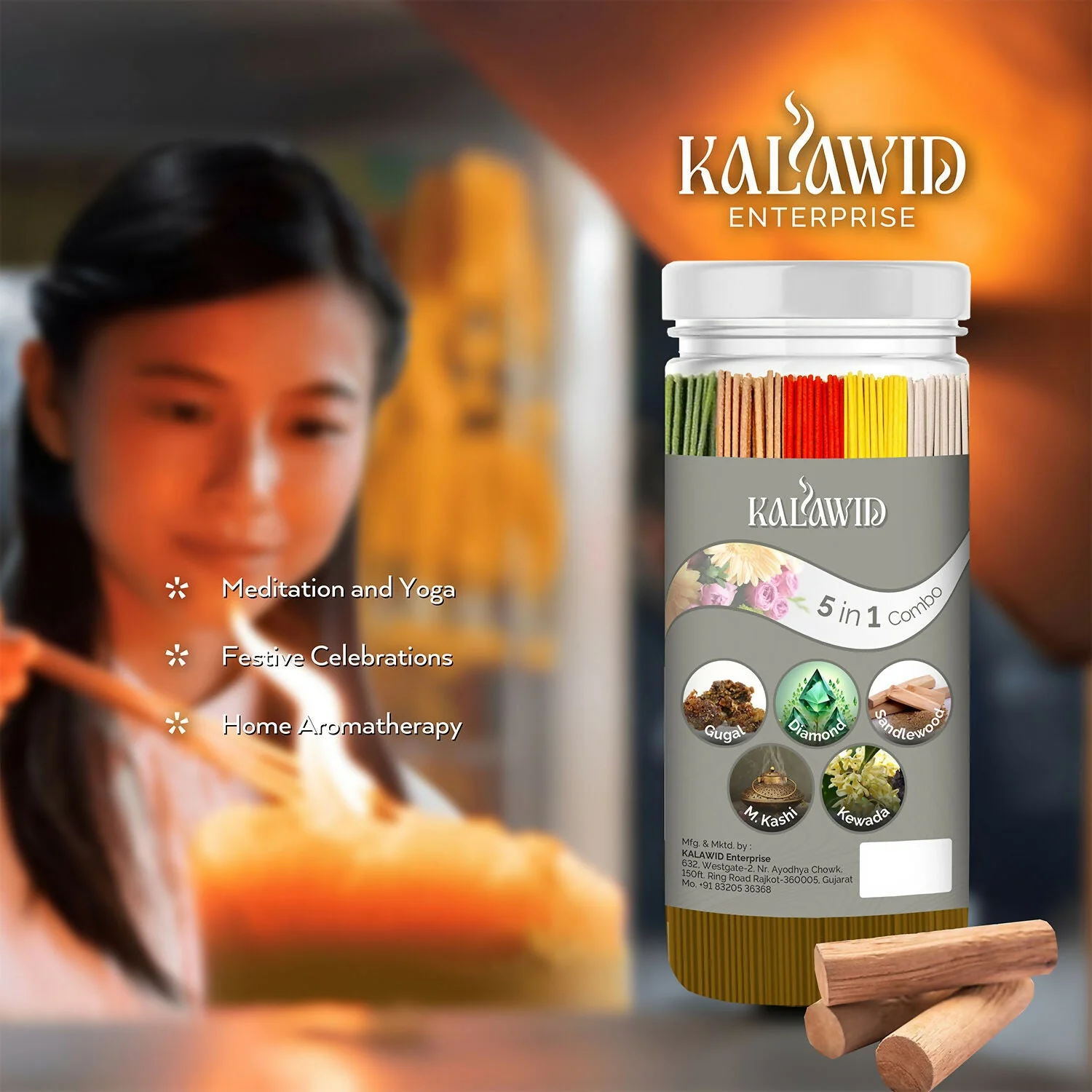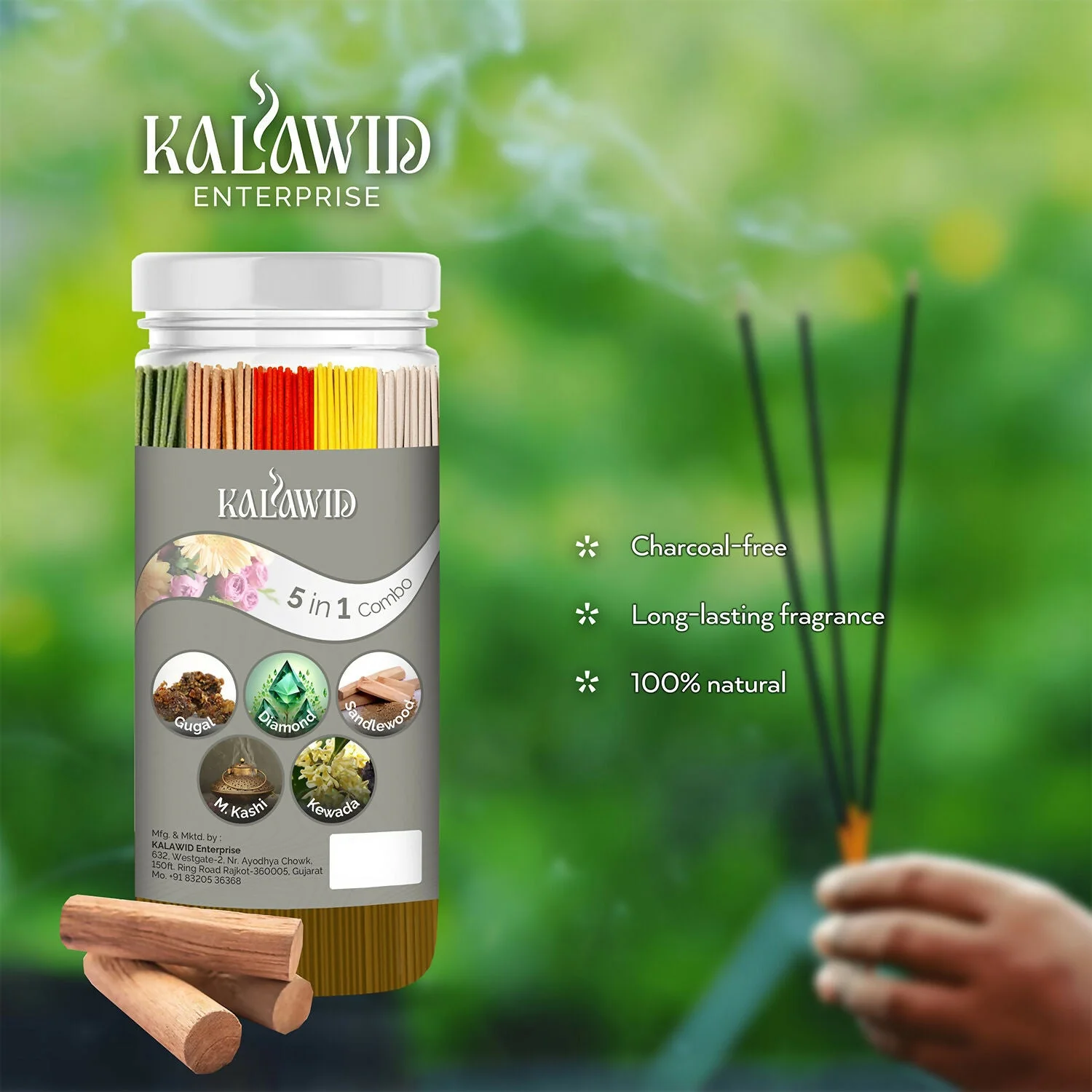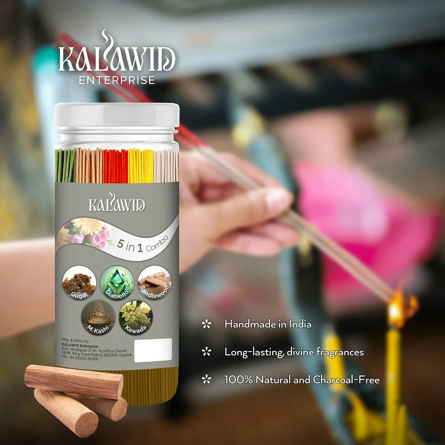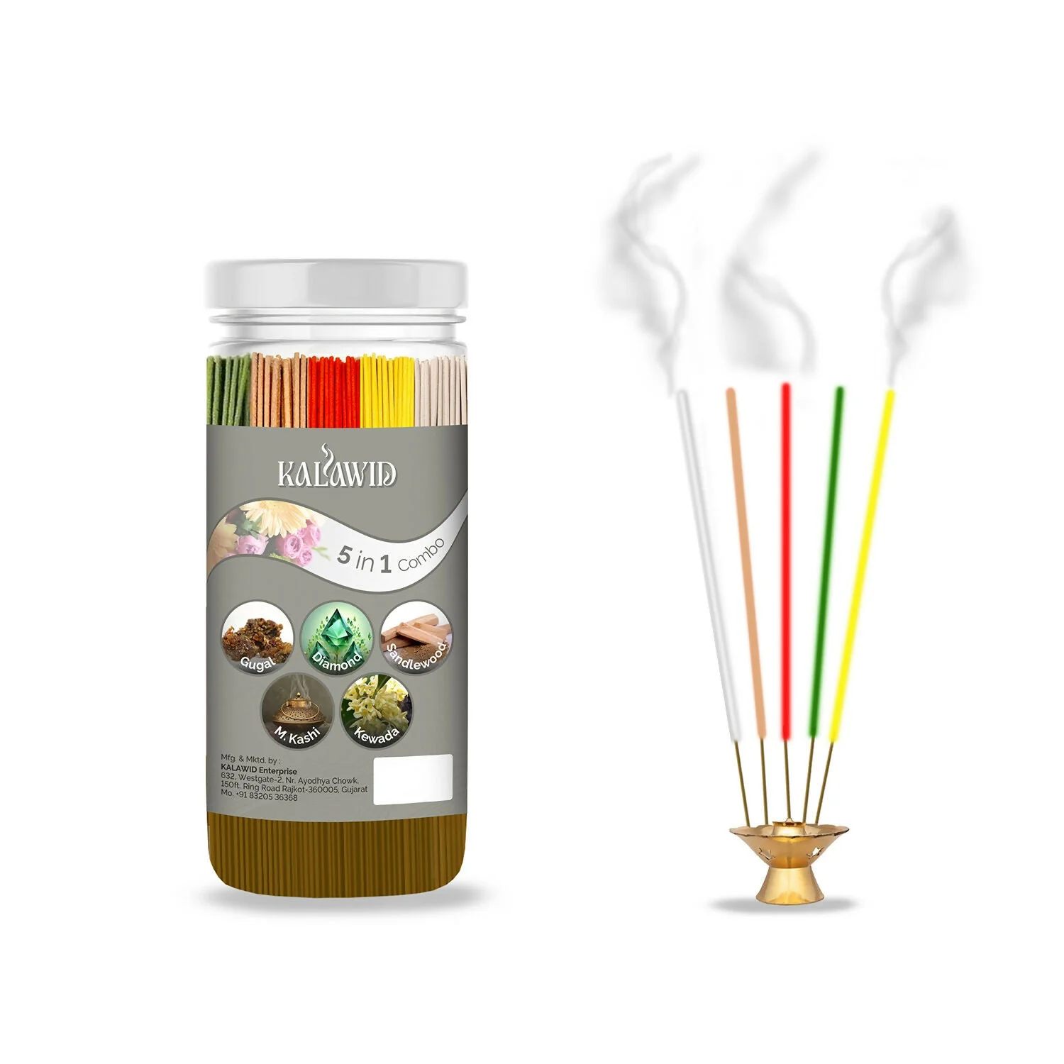 Be the first to review Premium Agarbatti 5 In 1 Combo with Gugal, Diamond, Sandalwood, Masalakashi, Kewada Fragrances for Long Lasting Aroma (400 Gm)!