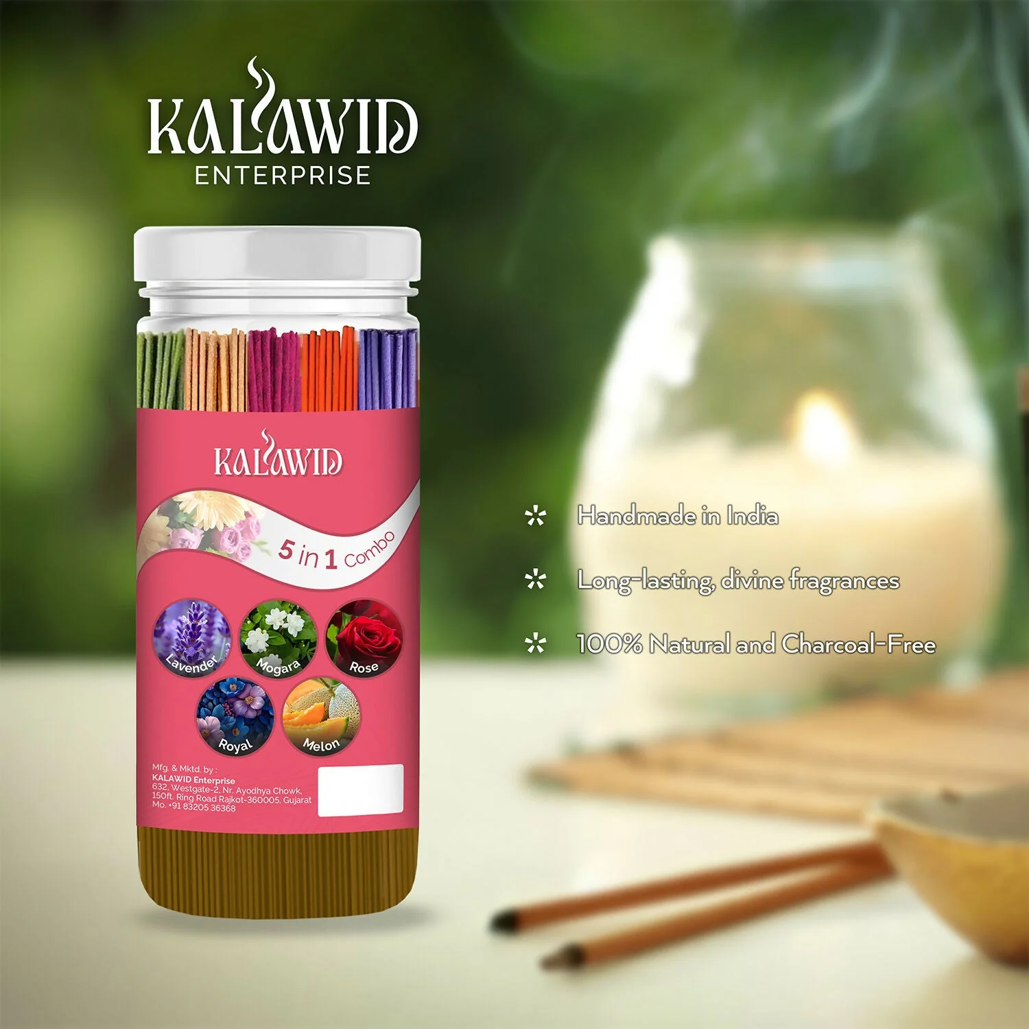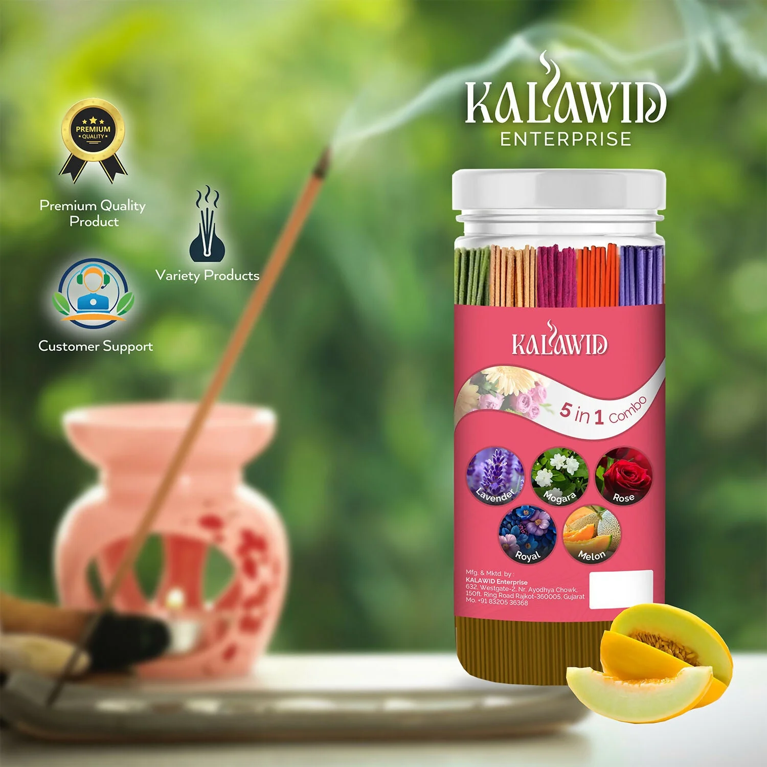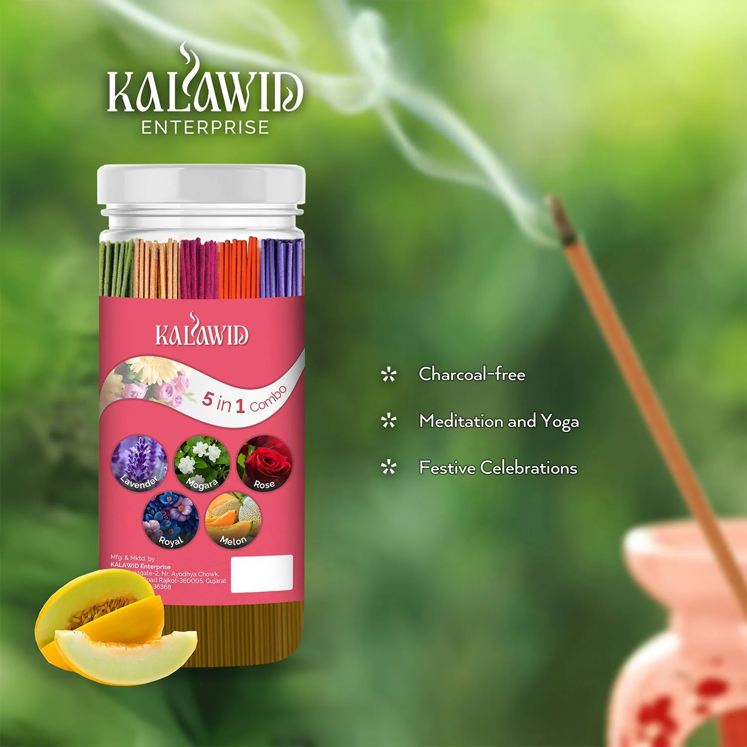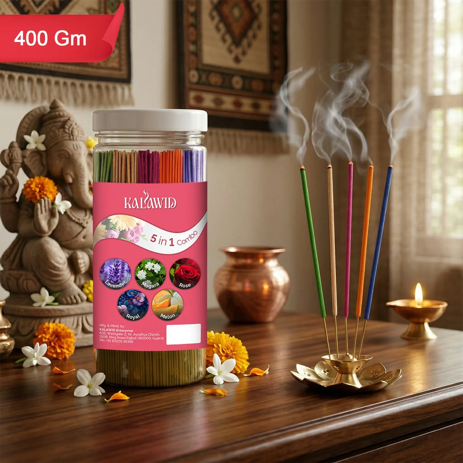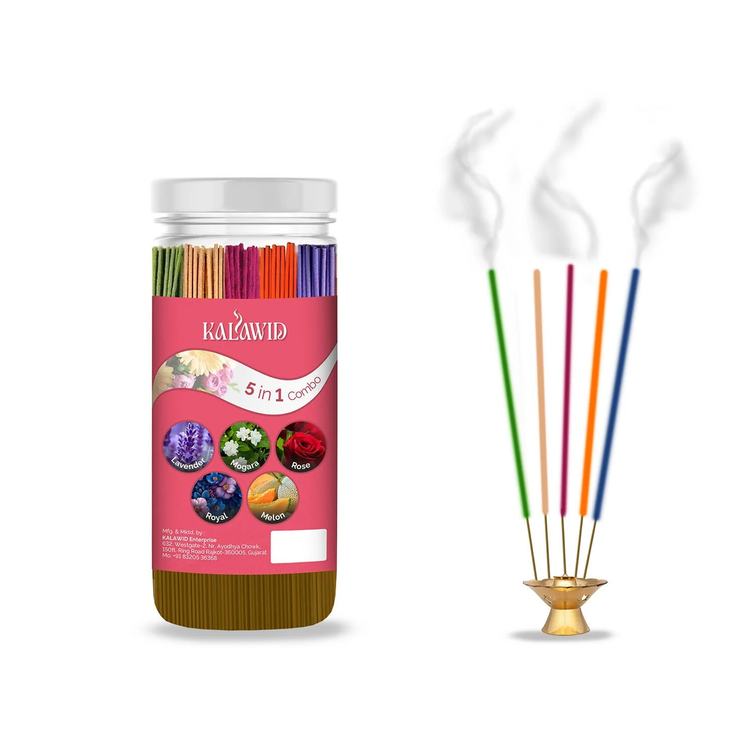 Be the first to review Premium Agarbatti 5 In 1 Combo with Lavender, Mogara, Rose, Royal, Melon Fragrances for Long Lasting Aroma (400 Gm)!