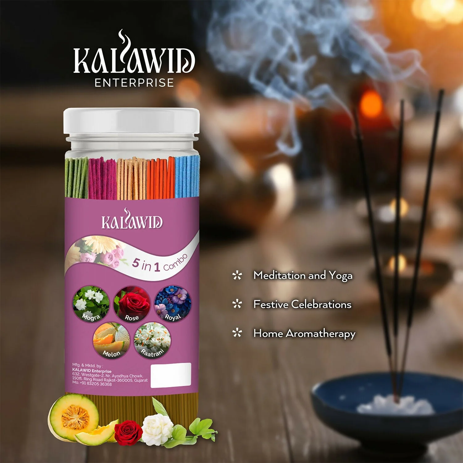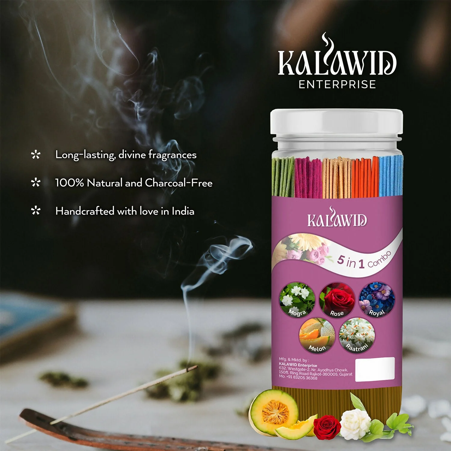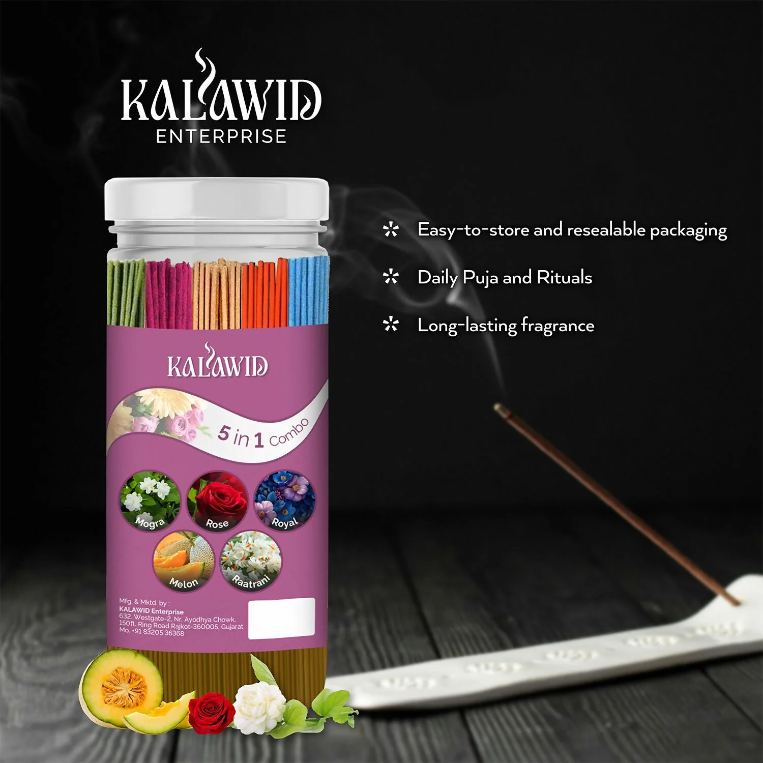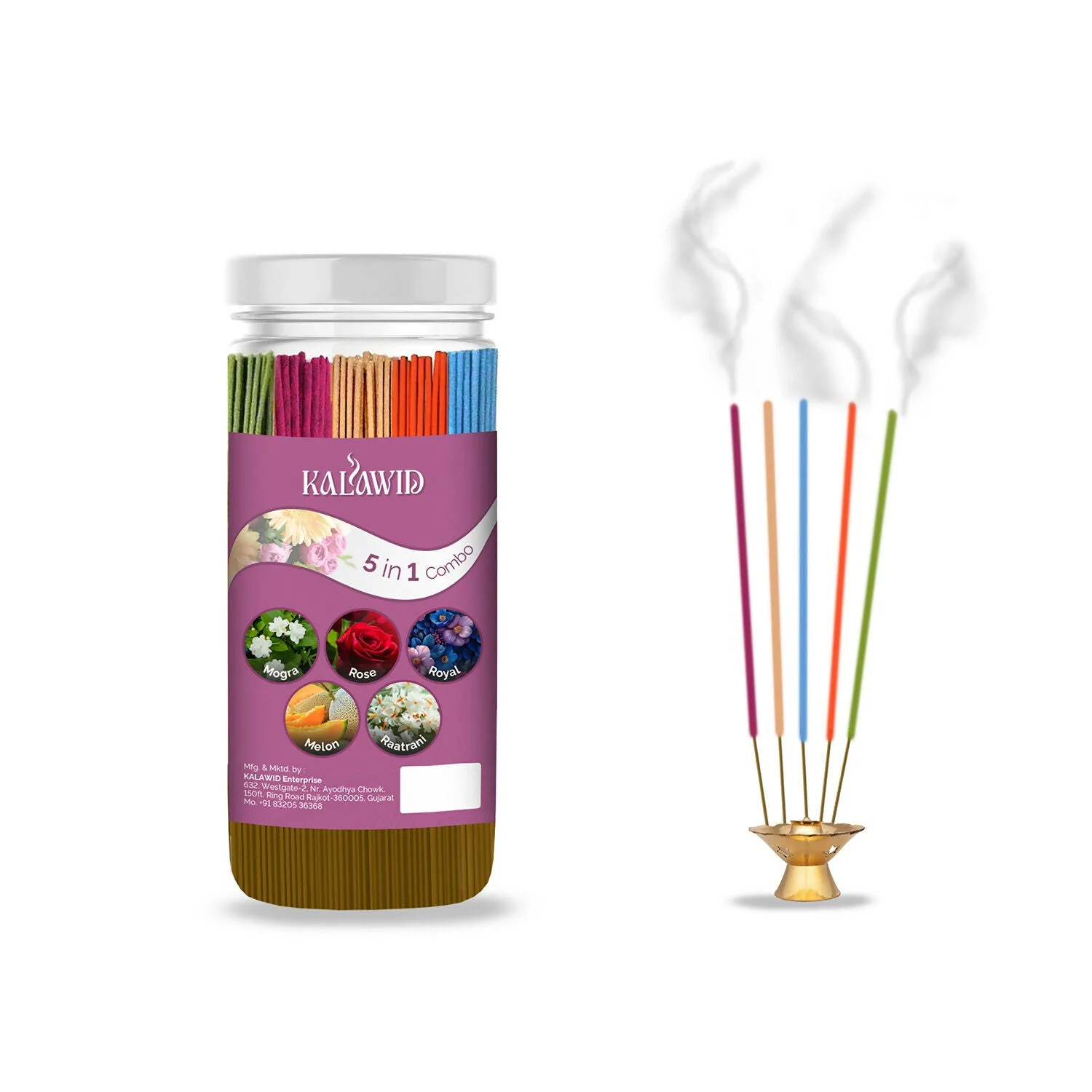 Be the first to review Premium Agarbatti 5 In 1 Combo with Mogra, Rose, Royal, Melon, Ratrani Fragrances for Pooja & Aromatherapy (400 Gm)!
