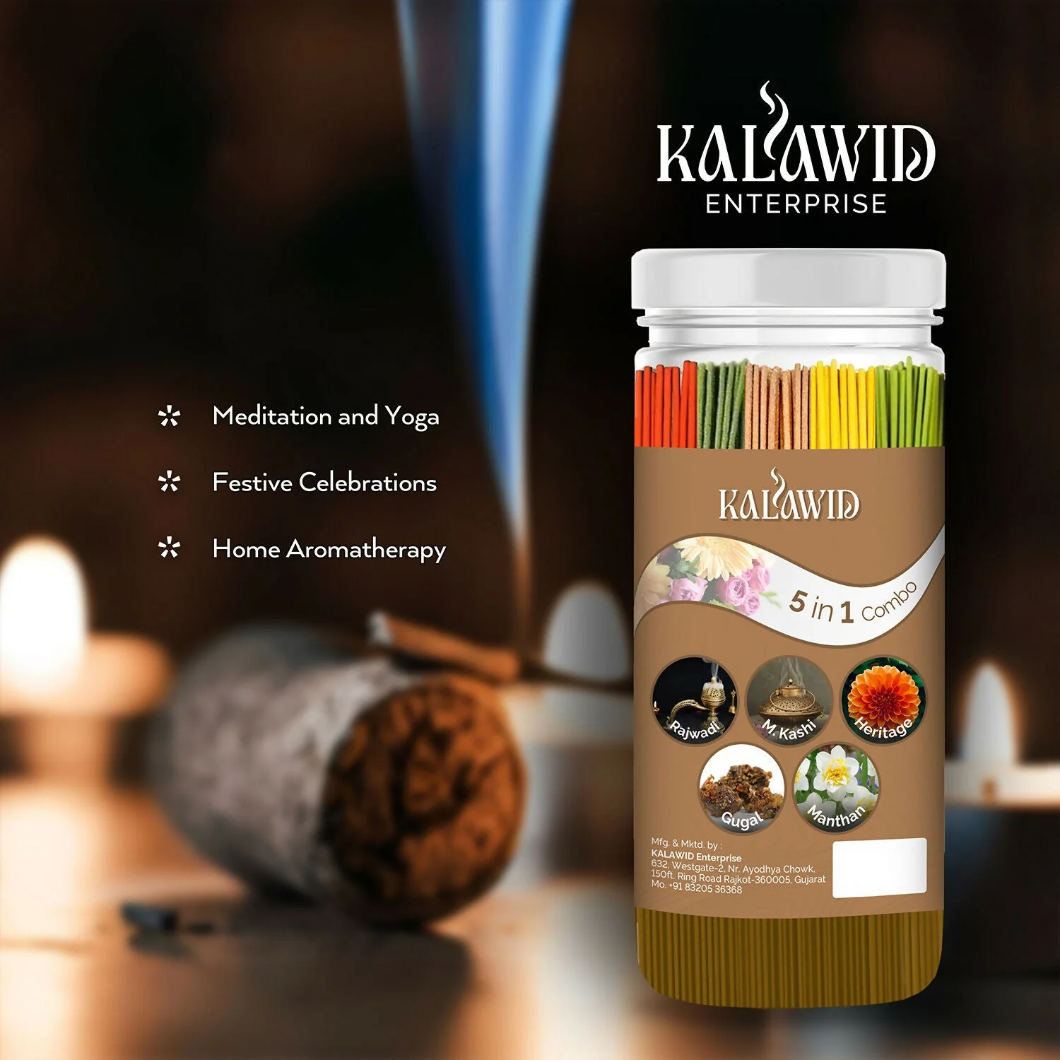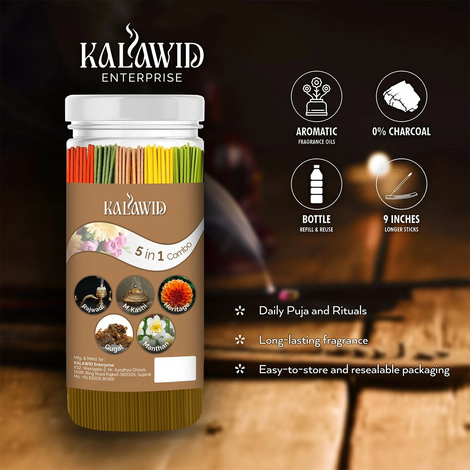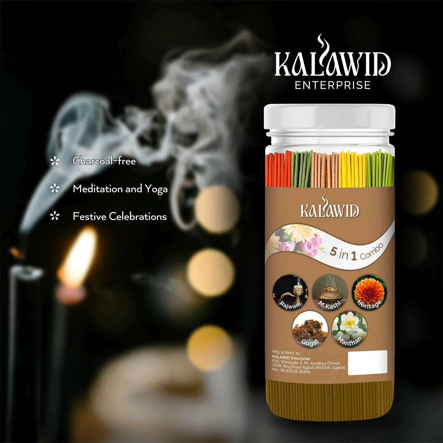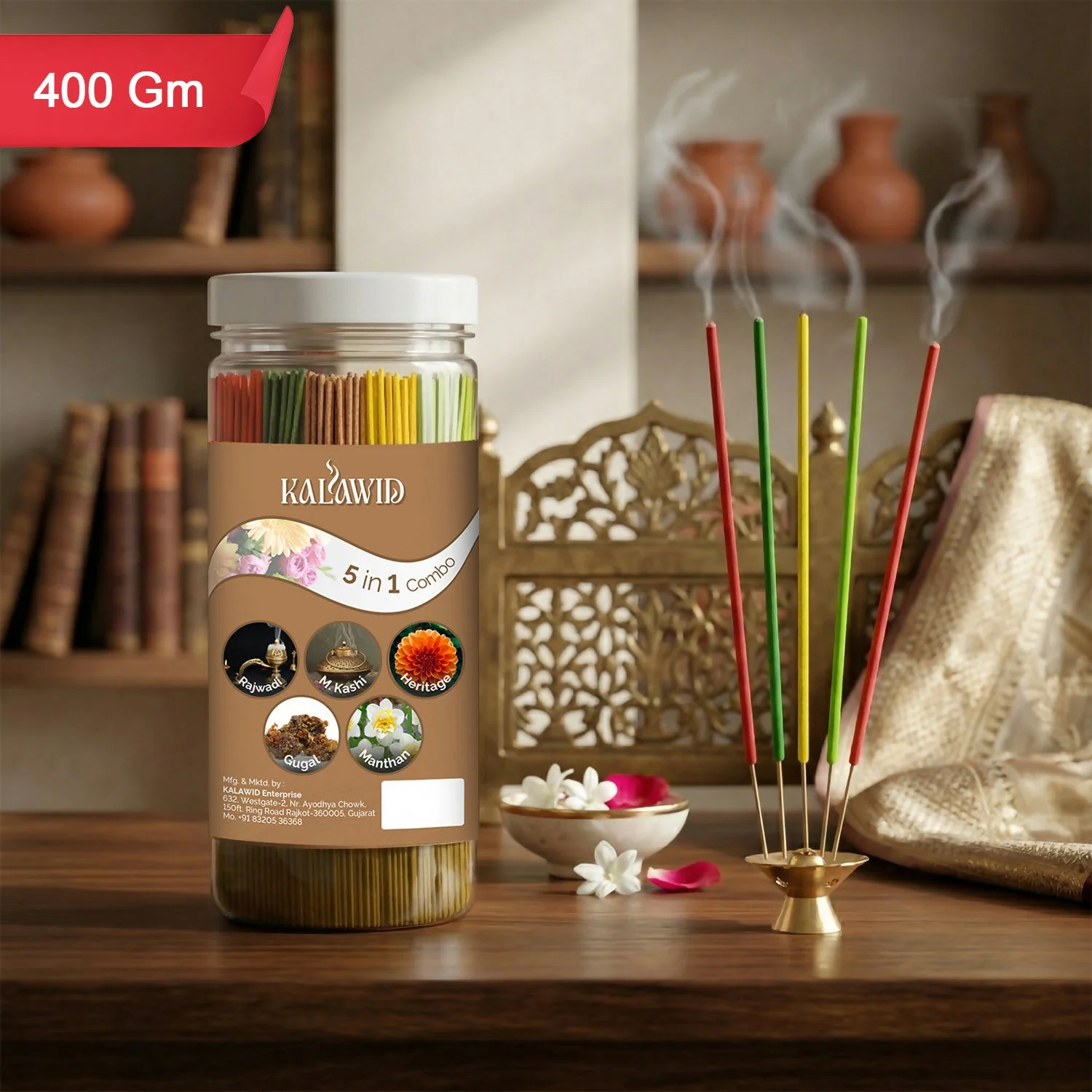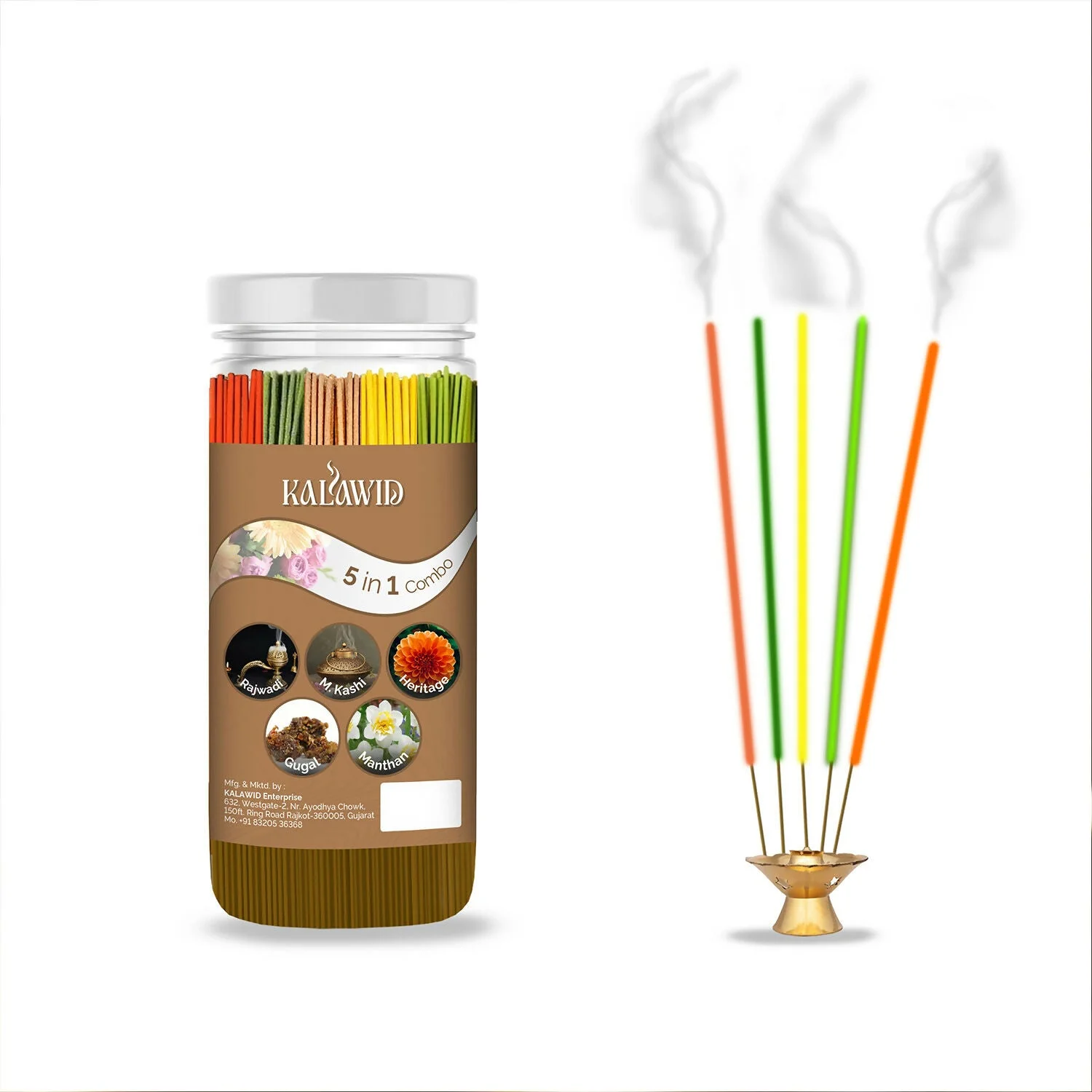 Be the first to review Premium Agarbatti 5 In 1 Combo with Rajwadi, Masalakashi, Heritage, Gugal, Manthan Fragrances for Long Lasting Aroma (400 Gm)!