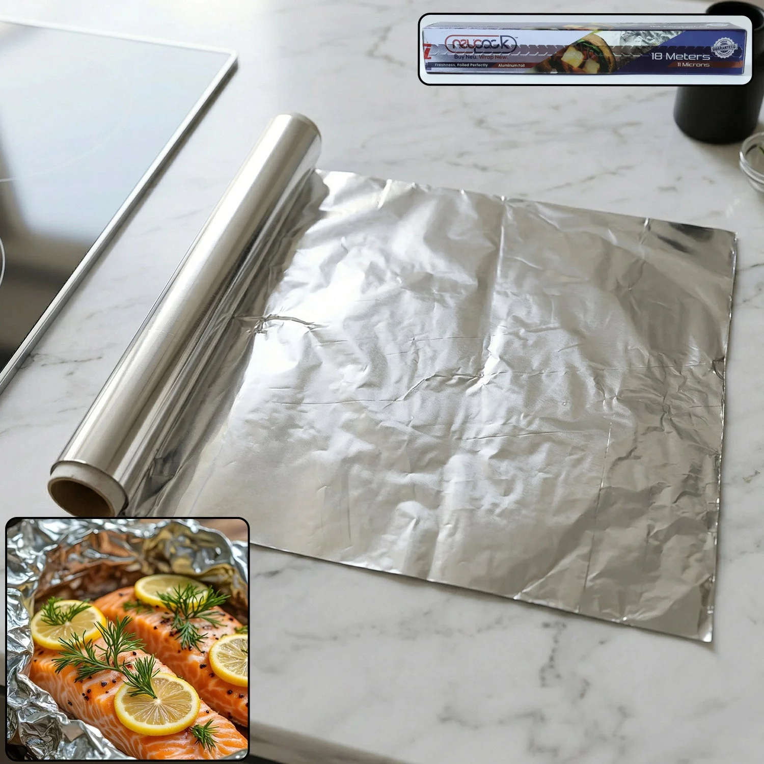 Premium Aluminium Foil Paper Roll 18 Mtr – Multipurpose Food Wrapping Cooking Baking Storage Foil Sheet for Kitchen Home and Catering Use