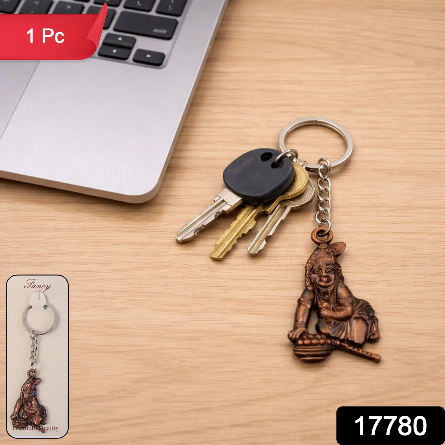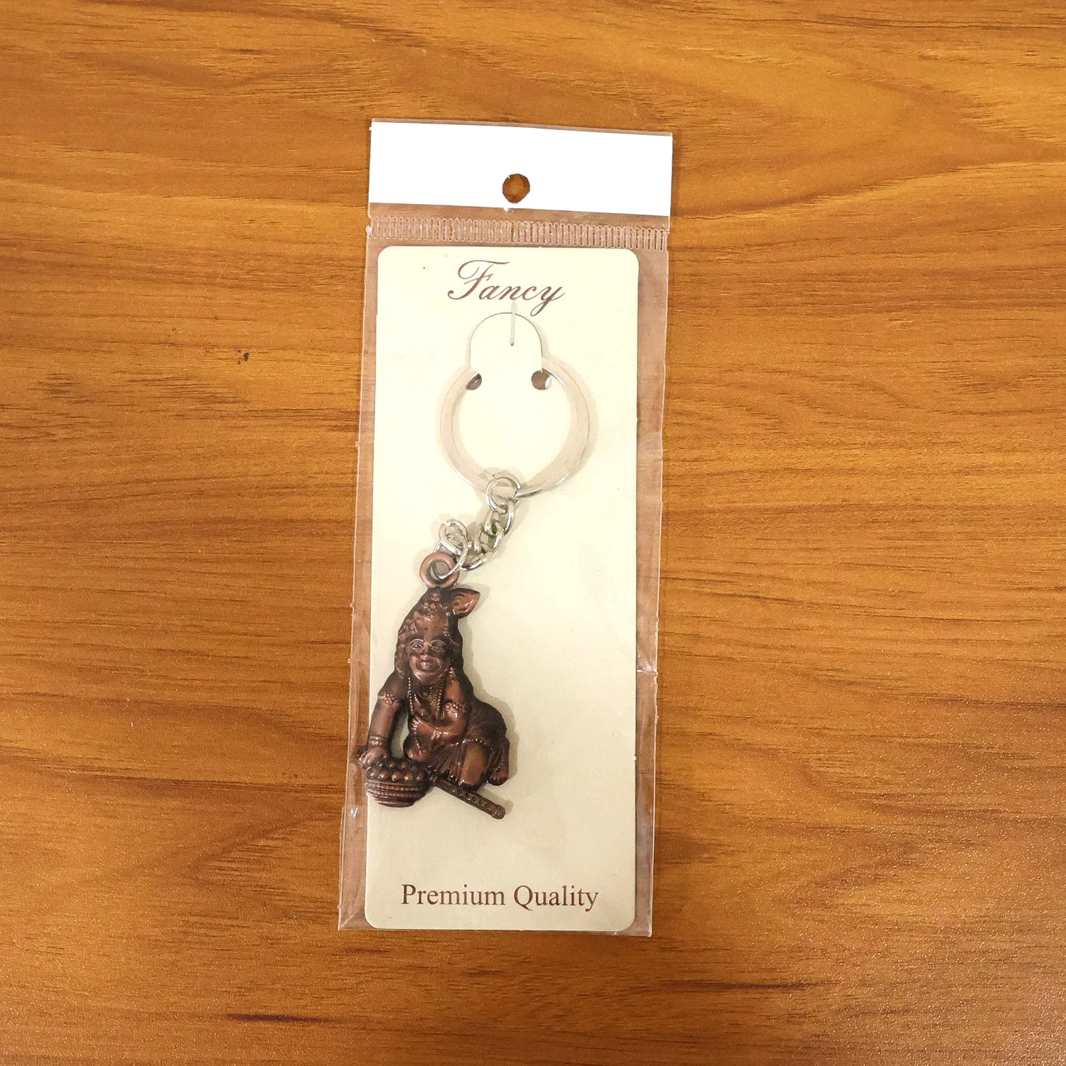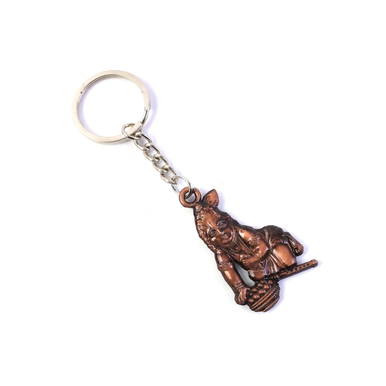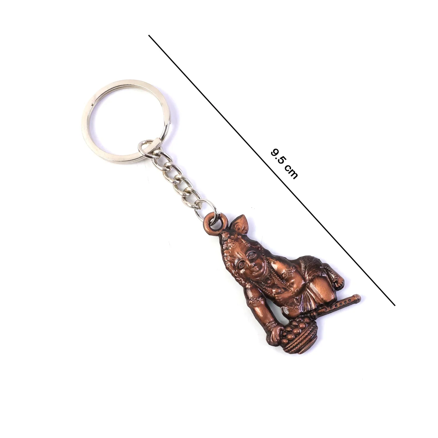 Premium Antique-Gold Metal Bal Krishna Makhan Chor Keychain – Divine Baby Krishna Eating Butter Idol Keyring for Car, Bike, Home & Auspicious Gifting (1 Pc)