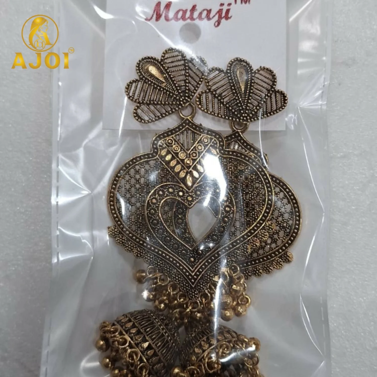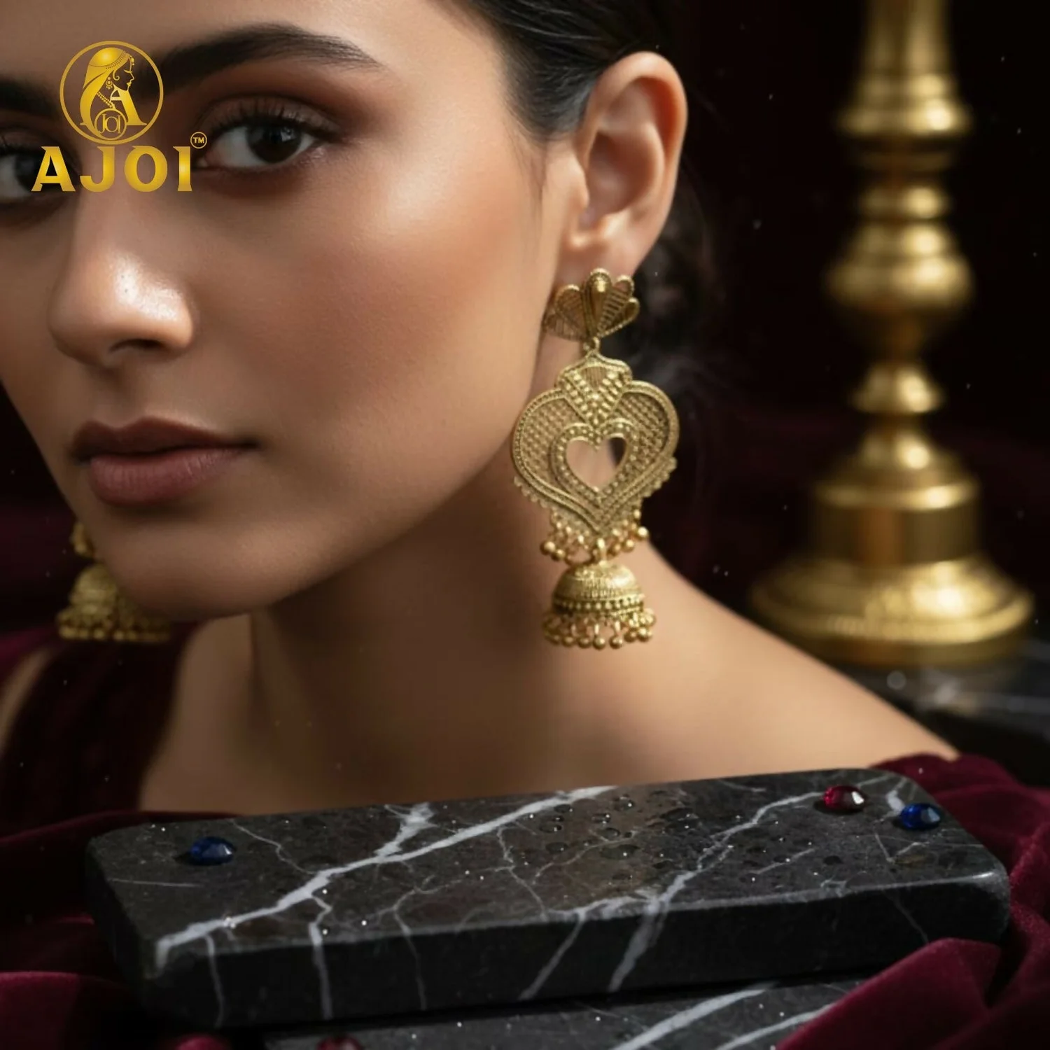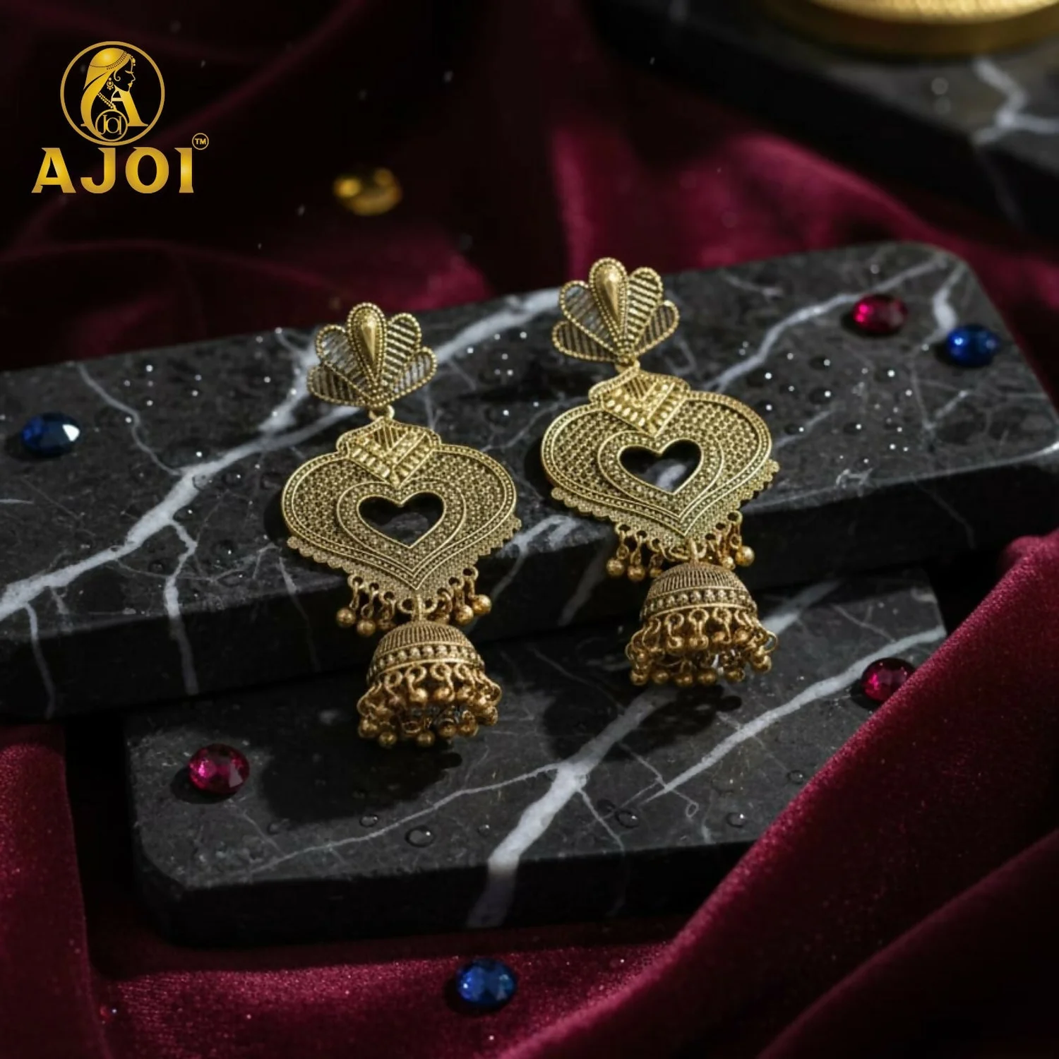 Be the first to review Premium Antique Heart Jhumka Earrings with Traditional Gold-Tone Detailing!