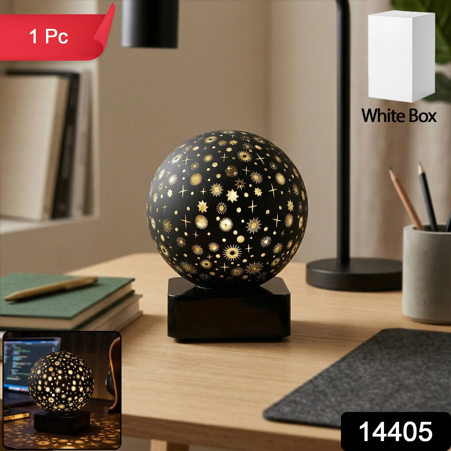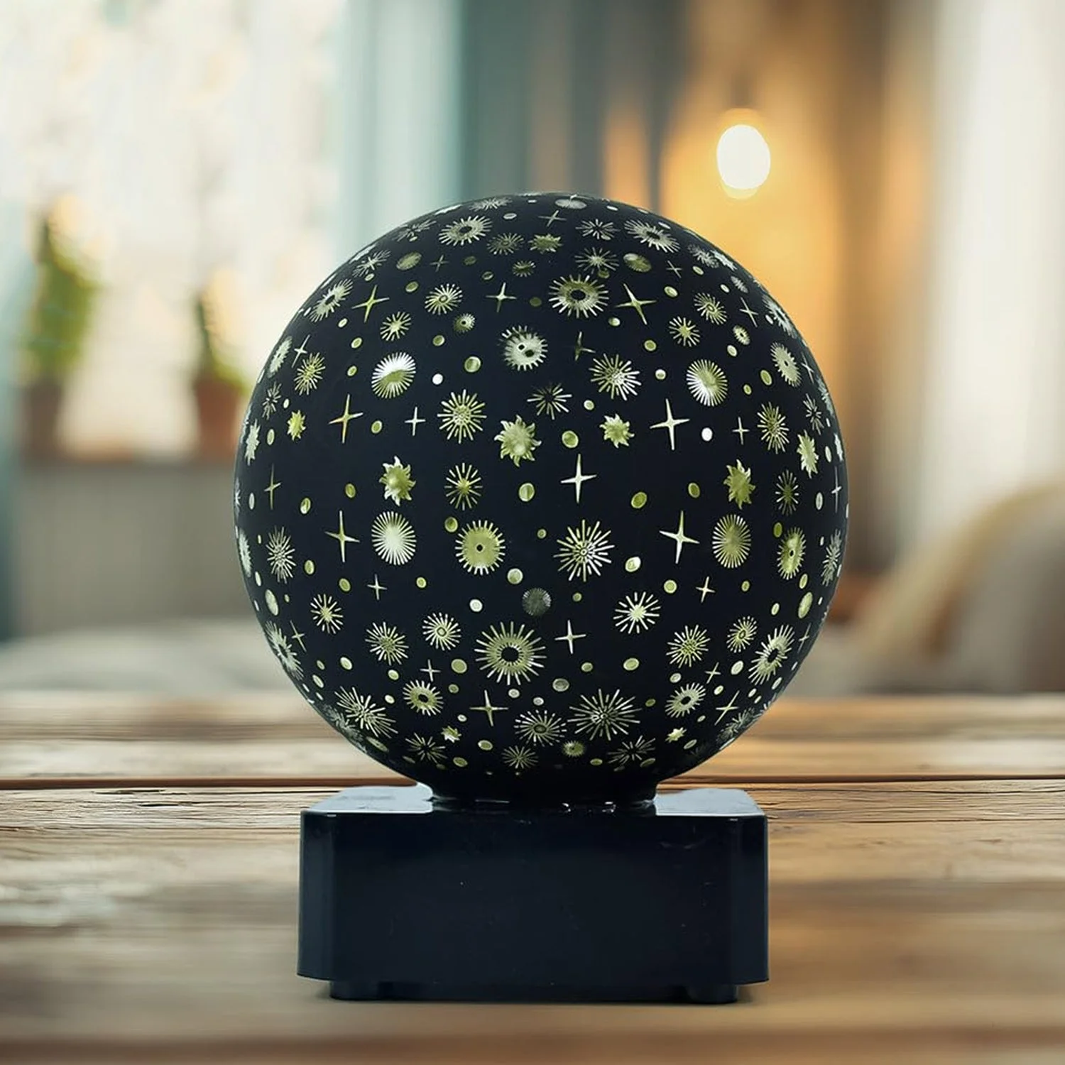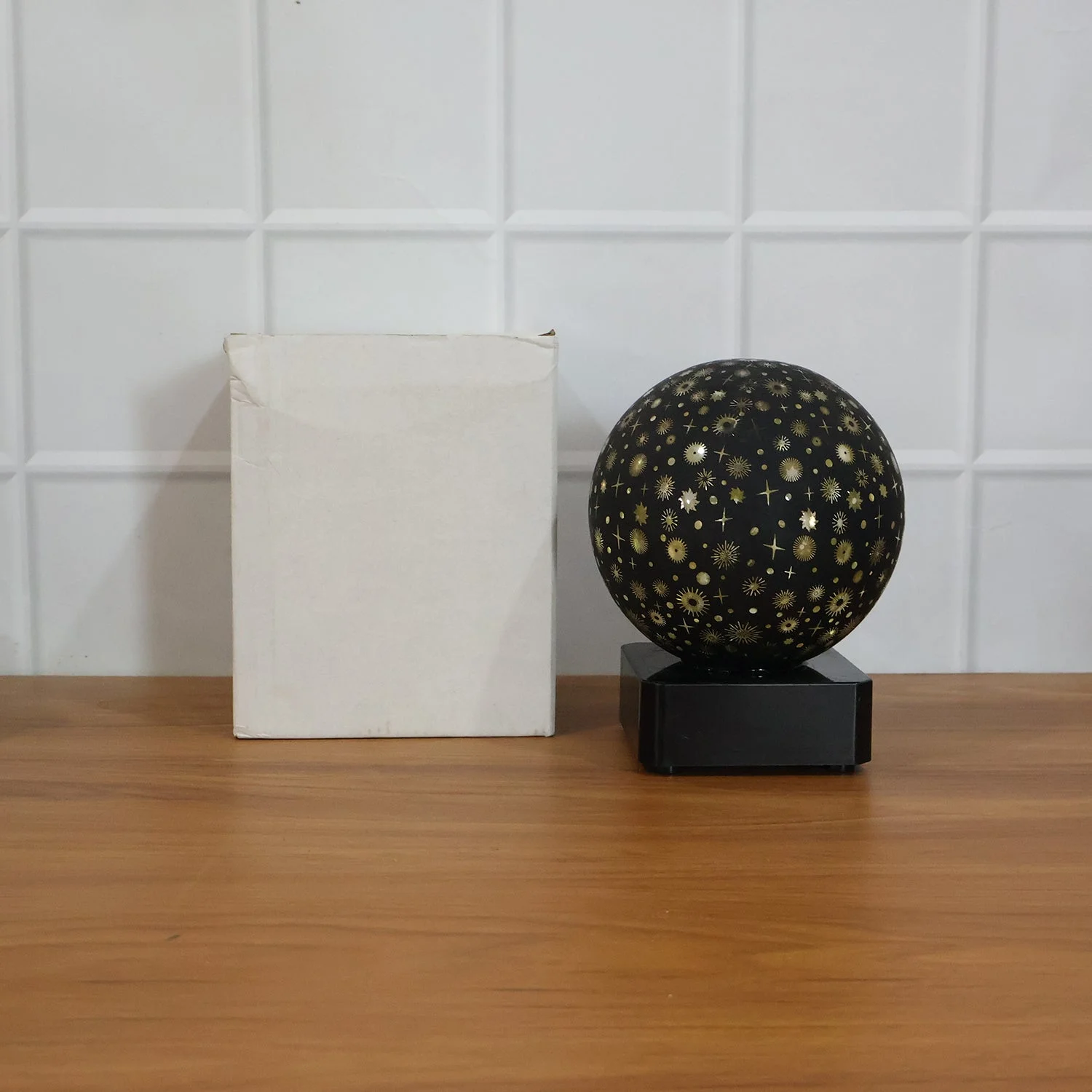 Enhance your space with this premium decorative LED night lamp designed in a stylish award-inspired spherical shape. Featuring an elegant star and pattern cut design, this lamp creates a beautiful ambient lighting effect that adds warmth and charm to any room. The soft glow makes it perfect for relaxing environments such as bedrooms, living rooms, or bedside tables. Its compact and modern design blends seamlessly with various décor styles, making it both a functional and decorative piece. Ideal for gifting or personal use, this lamp brings a cozy and aesthetic atmosphere to your space.