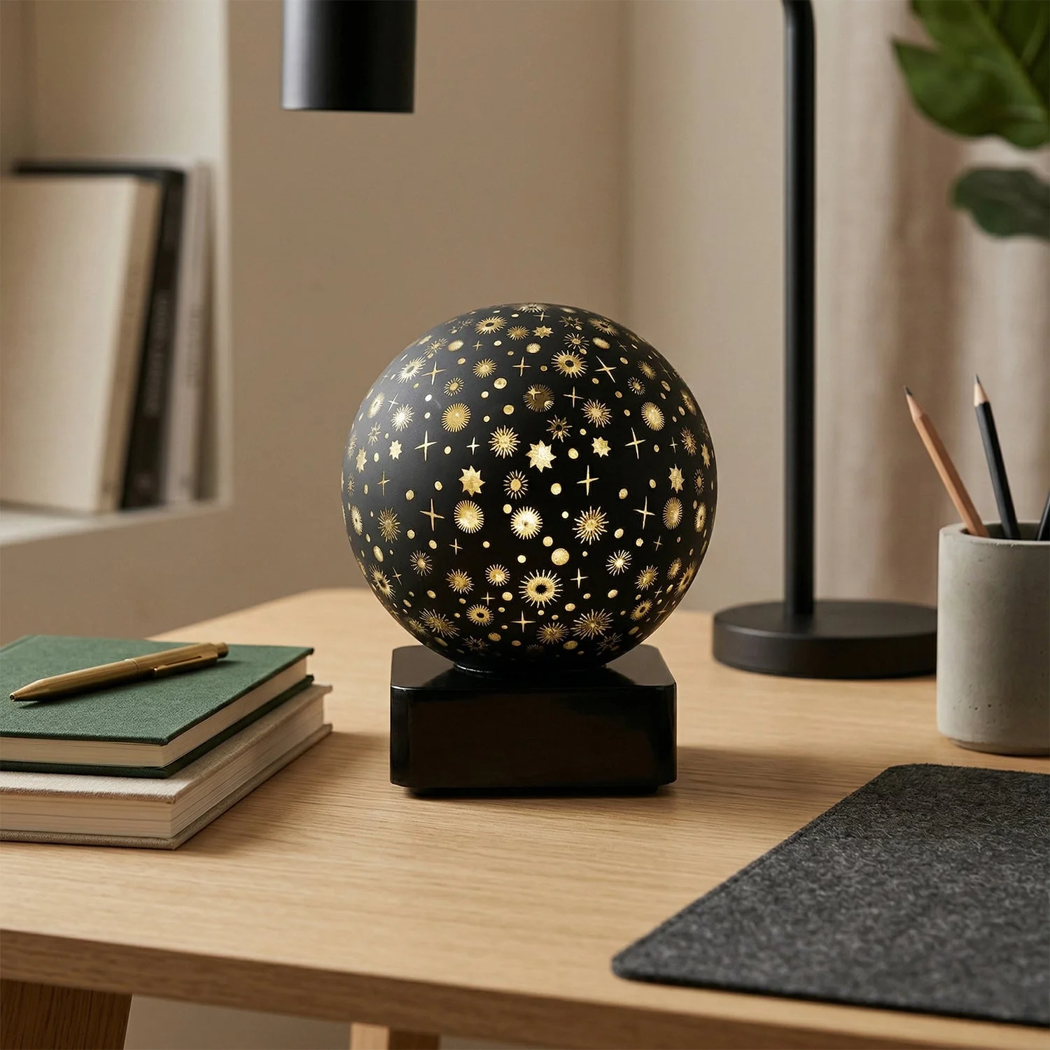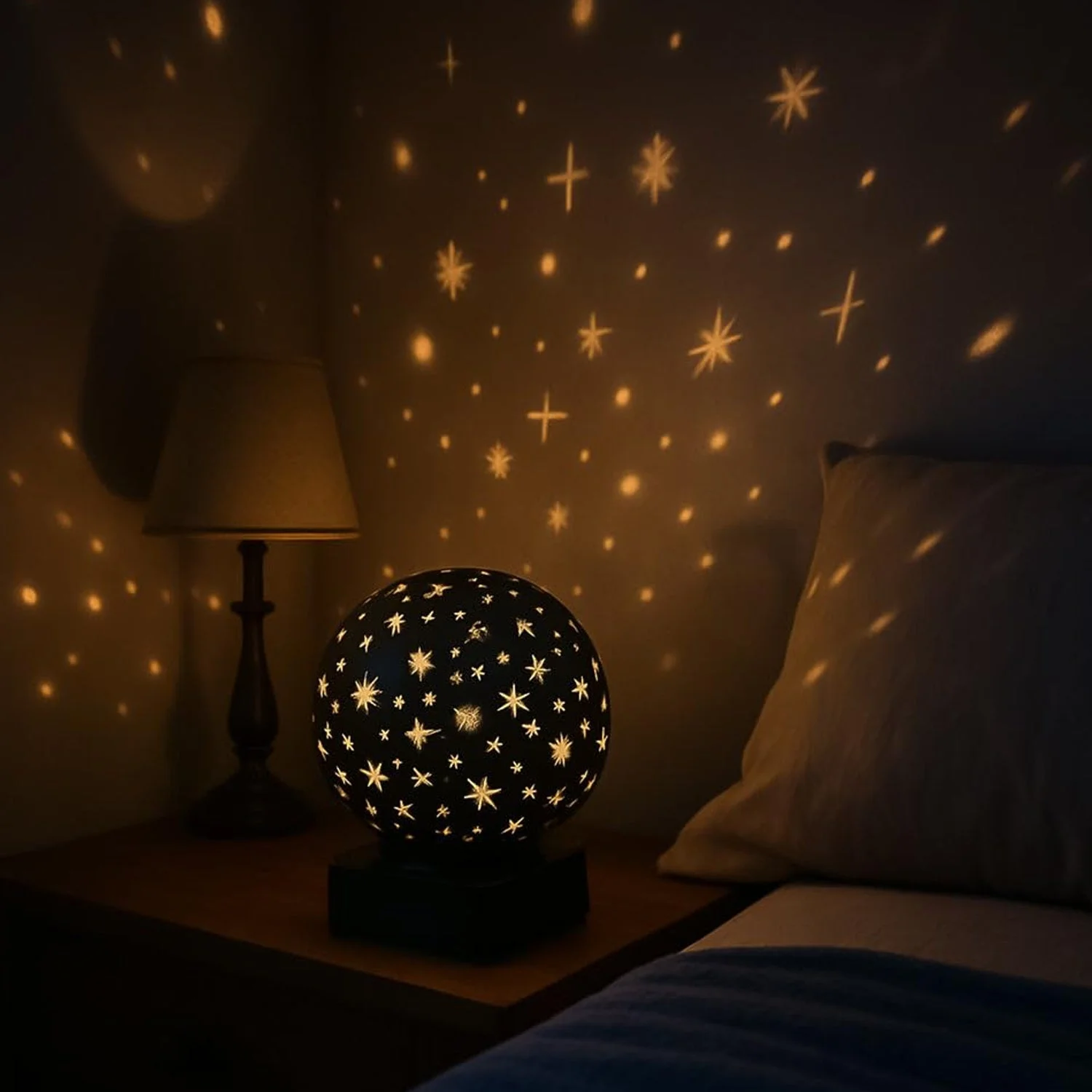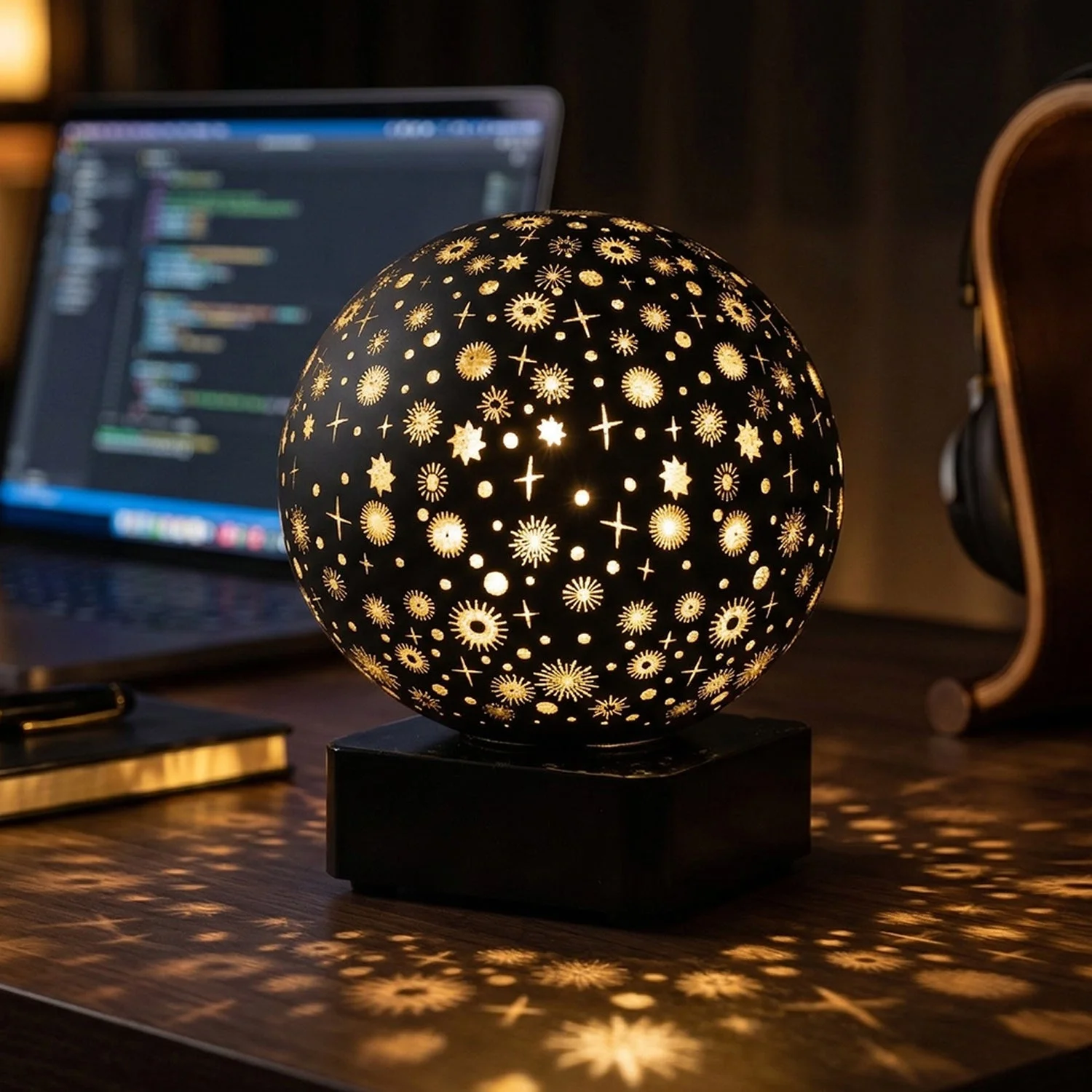 Enhance your space with this premium decorative LED night lamp designed in a stylish award-inspired spherical shape. Featuring an elegant star and pattern cut design, this lamp creates a beautiful ambient lighting effect that adds warmth and charm to any room. The soft glow makes it perfect for relaxing environments such as bedrooms, living rooms, or bedside tables. Its compact and modern design blends seamlessly with various décor styles, making it both a functional and decorative piece. Ideal for gifting or personal use, this lamp brings a cozy and aesthetic atmosphere to your space.