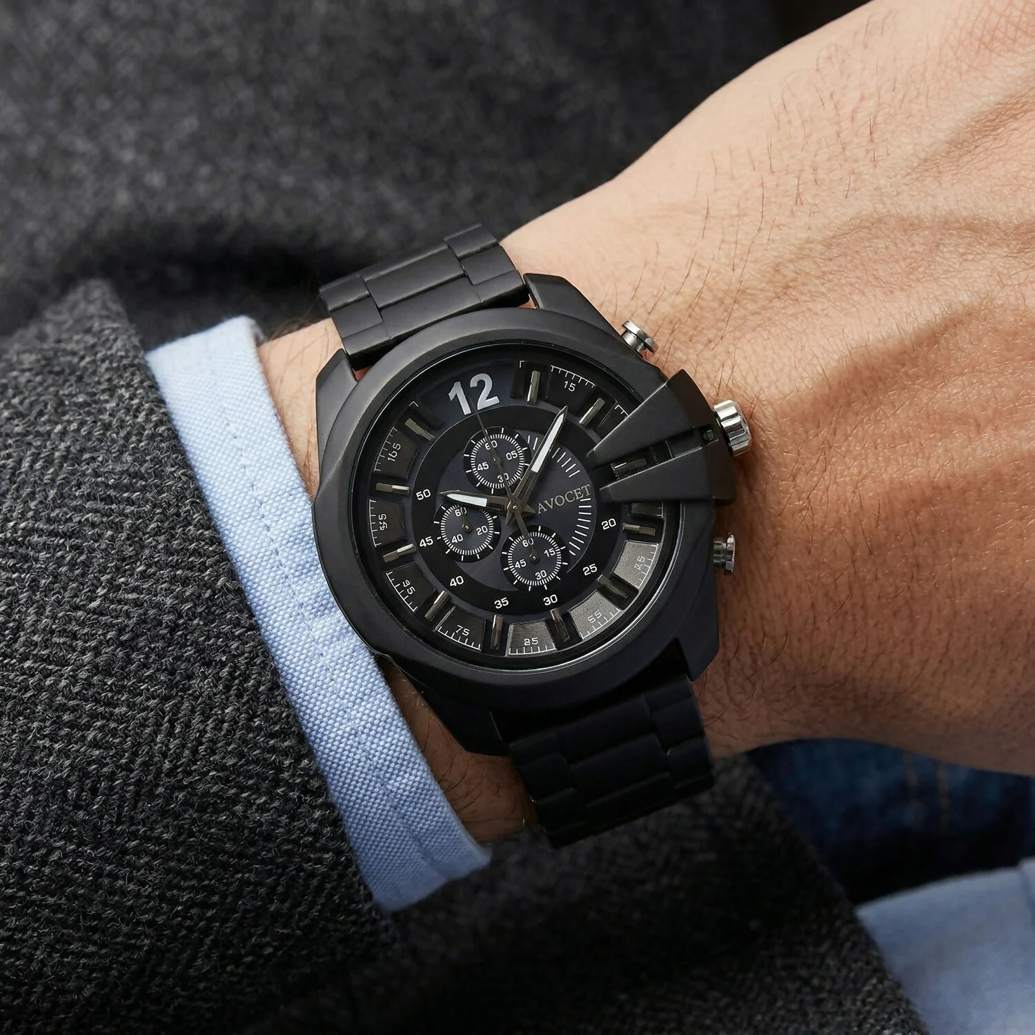 Upgrade your everyday style with this bold and modern analog wrist watch designed to deliver both performance and visual appeal, featuring a striking all-black design that adds a powerful and sophisticated touch to any outfit, making it suitable for both casual and formal occasions; the detailed chronograph-style dial enhances its premium look with a multi-functional appearance that stands out effortlessly, while the sturdy metal strap ensures durability and a comfortable fit, complemented by a secure clasp that keeps it firmly in place throughout the day, making it an ideal accessory for daily wear, office use, travel, and special events, as well as a great addition to any watch collection or a thoughtful gifting option.
