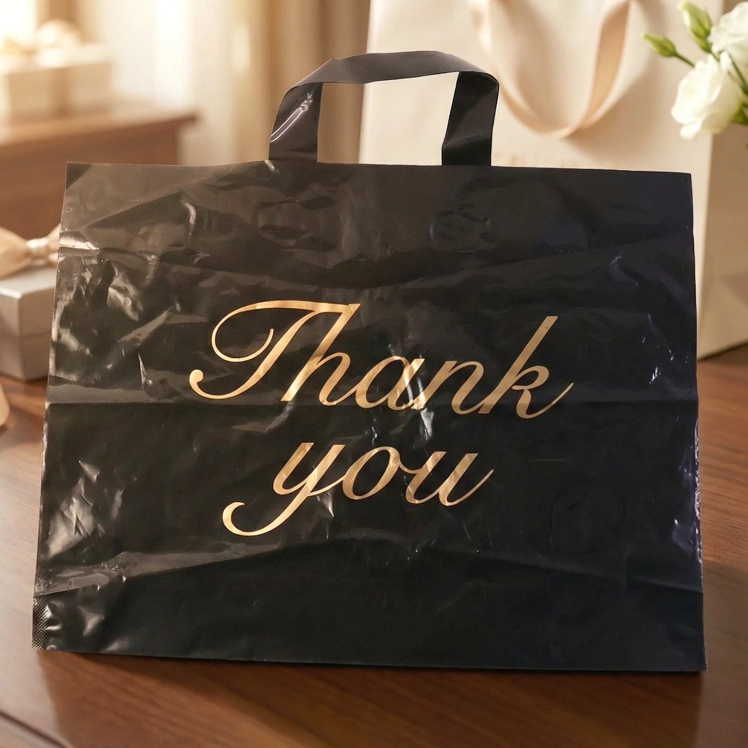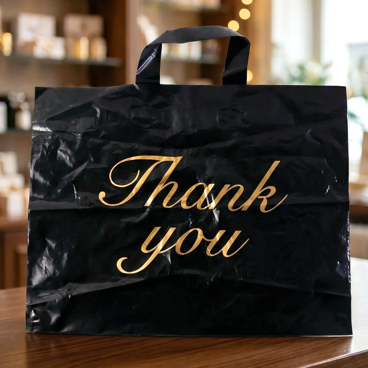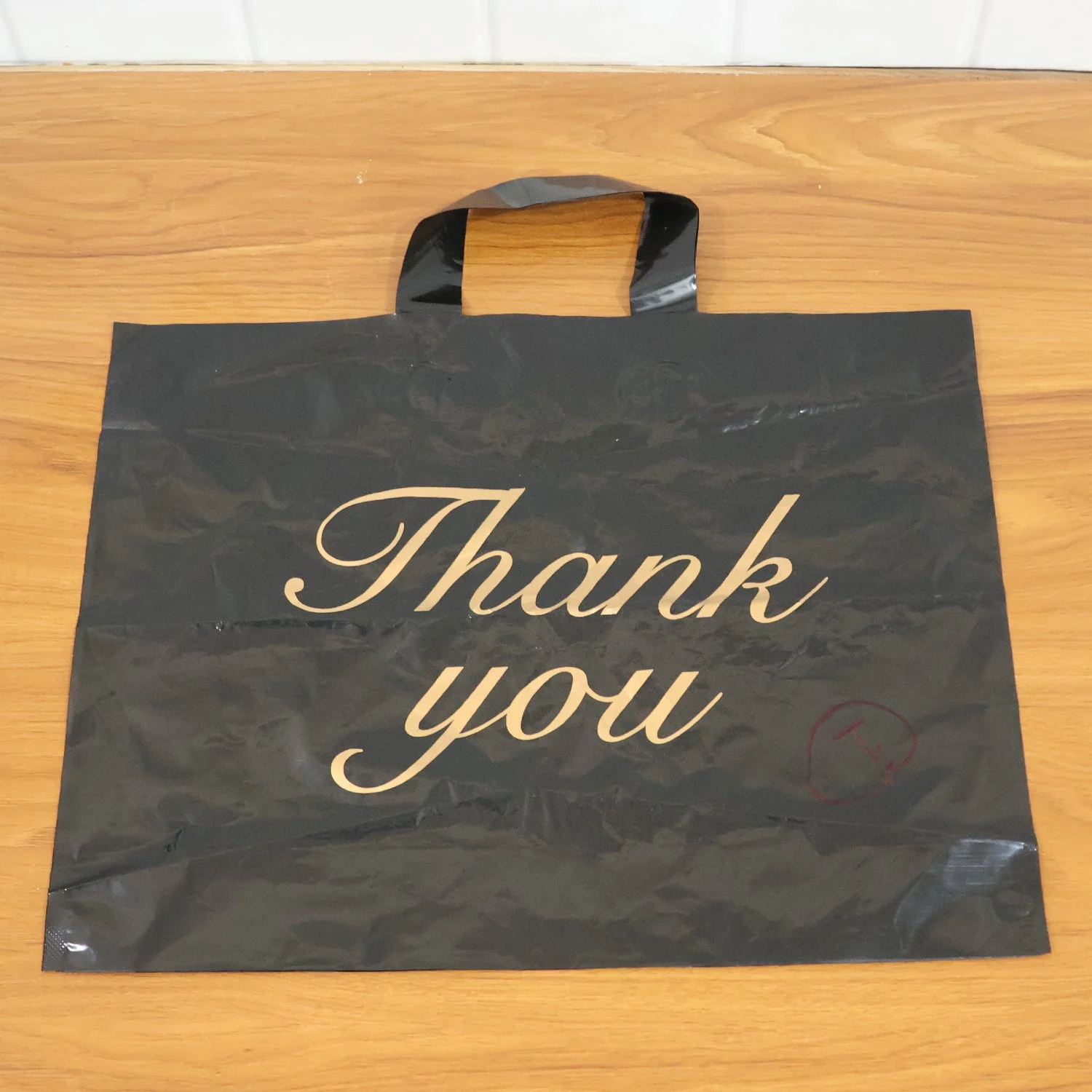 premium black thank you bag, thank you printed carry bag, plastic carry bag with handle, black plastic shopping bag, retail thank you bags, gift packaging carry bags, strong handle plastic bag, durable carry bag, reusable plastic carry bag, retail shopping bags, thank you print packaging bag, boutique carry bags