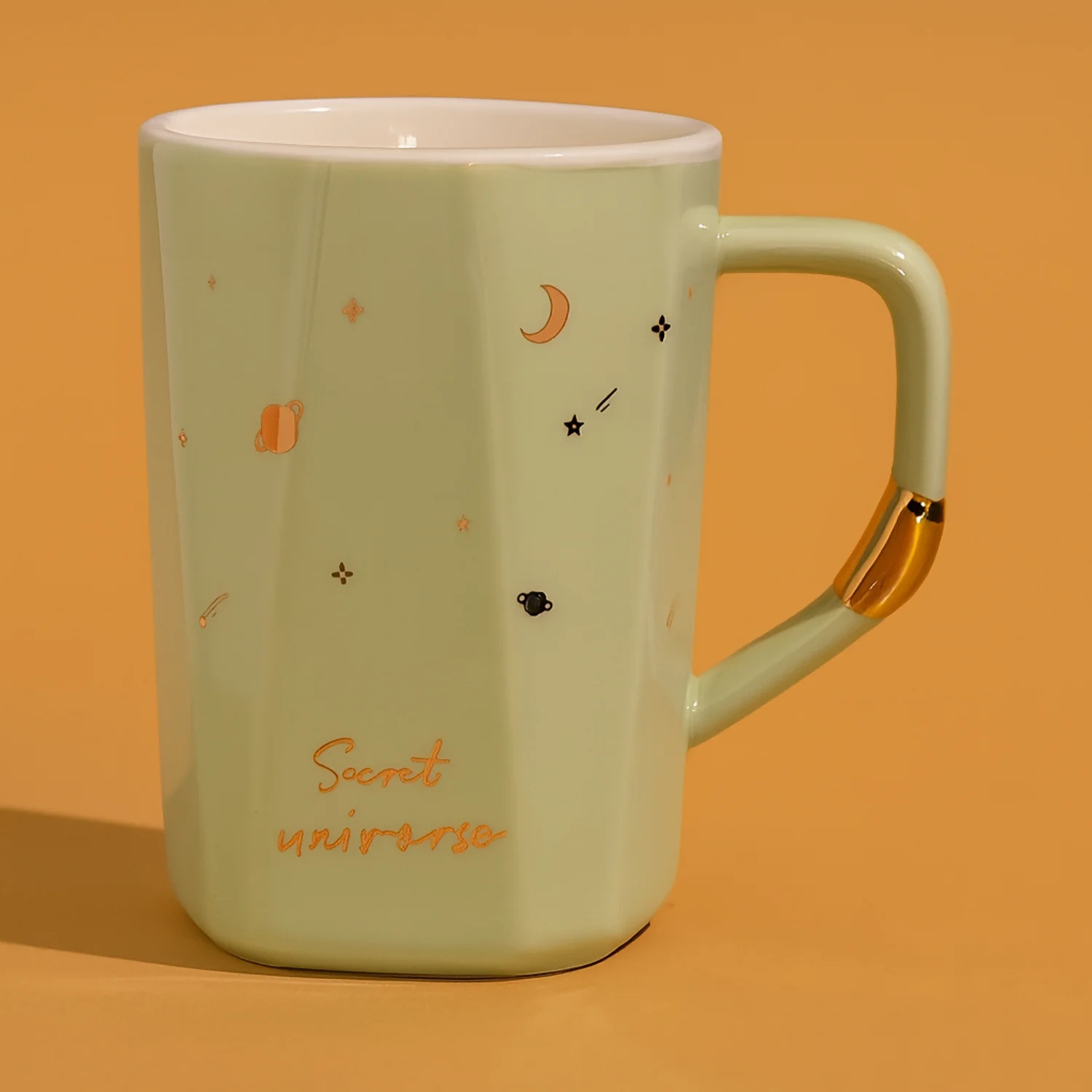 secret universe mug, ceramic mug for coffee, designer tea cup, celestial themed mug, gold handle ceramic cup, premium coffee mug, aesthetic mug for gifting, hot beverage mug, office desk mug, cute pastel mugs, ceramic tea coffee cup, unique gift mug, stylish drinkware, cosmic design mug, luxury ceramic mug, breakfast mug, modern coffee cup