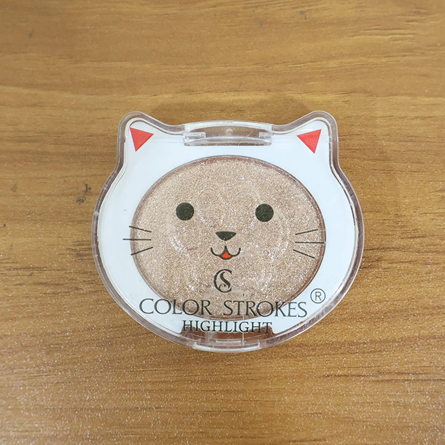 premium color strokes shimmer highlighter, ultra glowing highlighter, soft blend highlighter, illuminating powder, radiant finish highlighter, lightweight highlighter, cat themed compact,professional makeup highlighter, cosmetic highlighter powder, glow makeup product, shimmer face powder