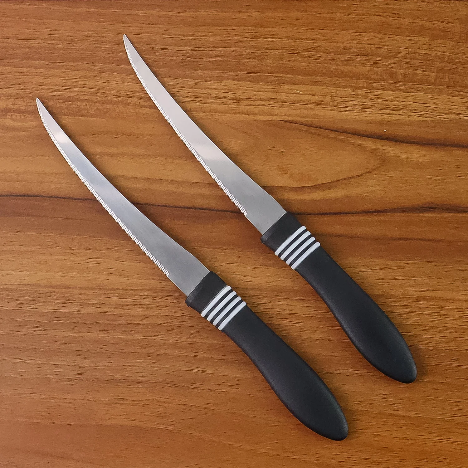 Premium Curved Serrated Stainless Steel Kitchen Knife Set – 2 Piece Multipurpose Utility Knife with Ergonomic Black Handle for Home & Restaurant Use