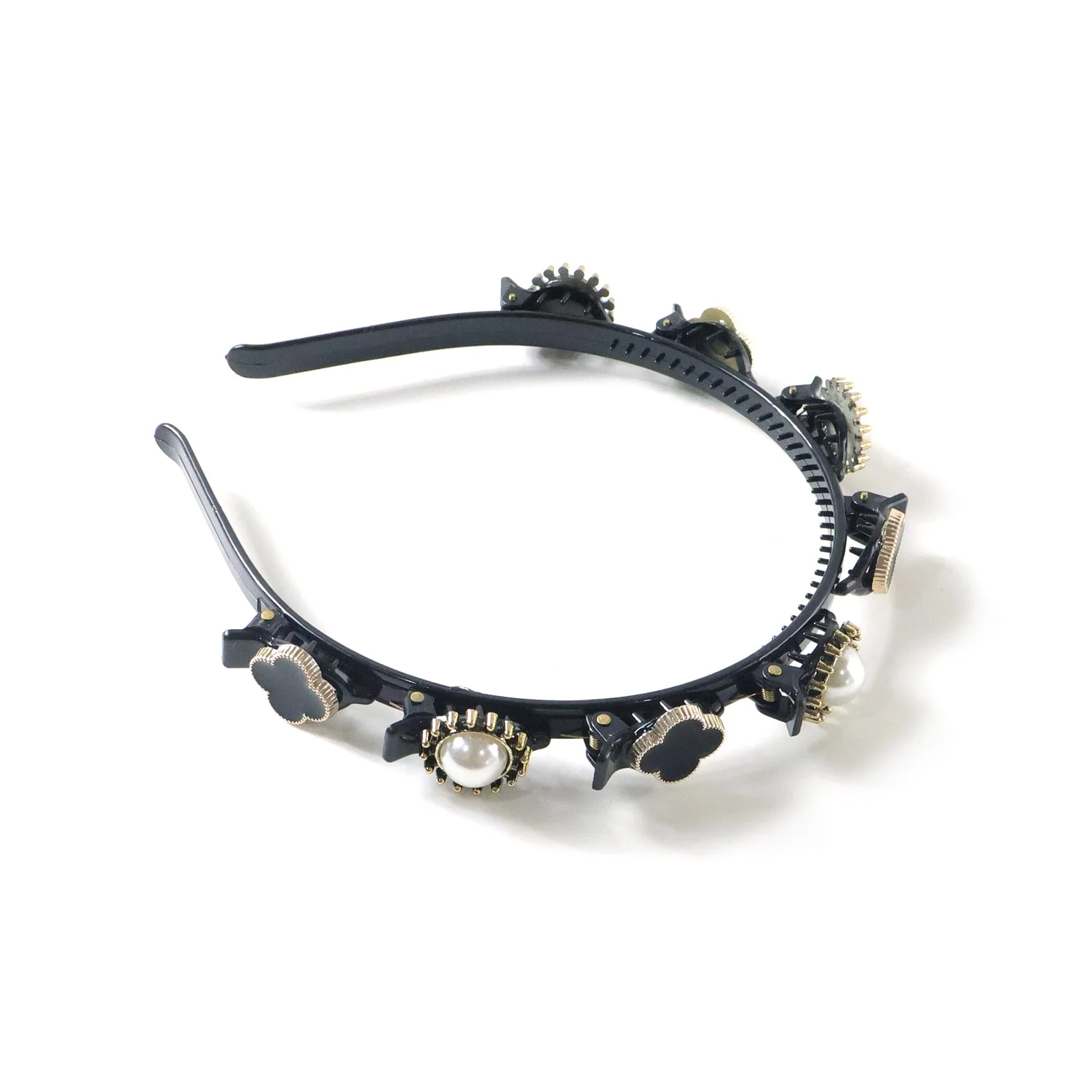 elegant pearl studded hair band,floral design headband,premium decorative headband,black and gold hair band,stylish hair accessory for women,girls headband,pearl embellished headband,floral pearl hair band,party wear hair band,daily styling headband,comfortable grip hair band,fashion hair accessory,women hair band,designer headband,bridal hair accessory,trendy hair band,luxury hair accessory,classic headband,elegant hair styling band,ornamental hair band