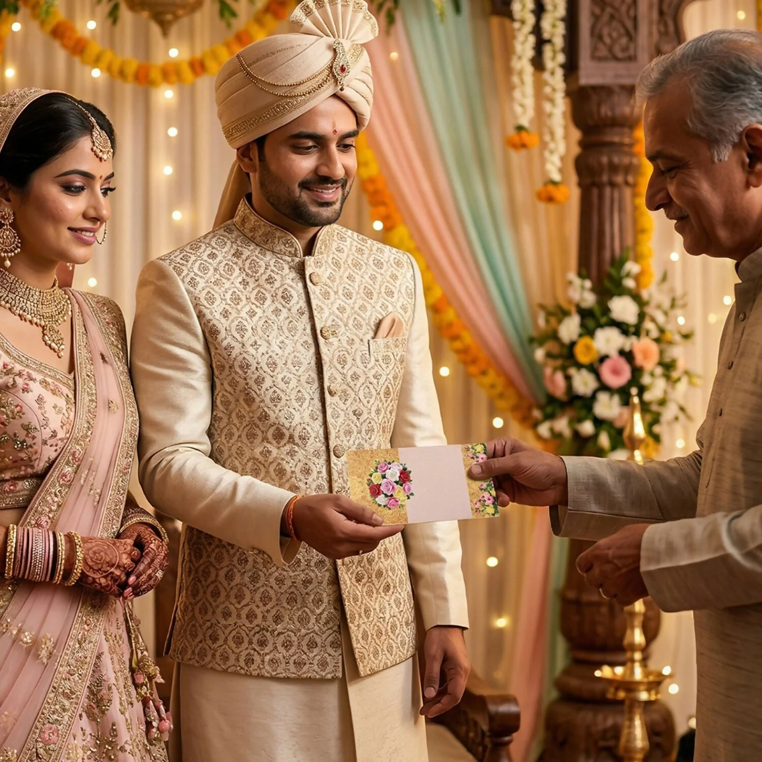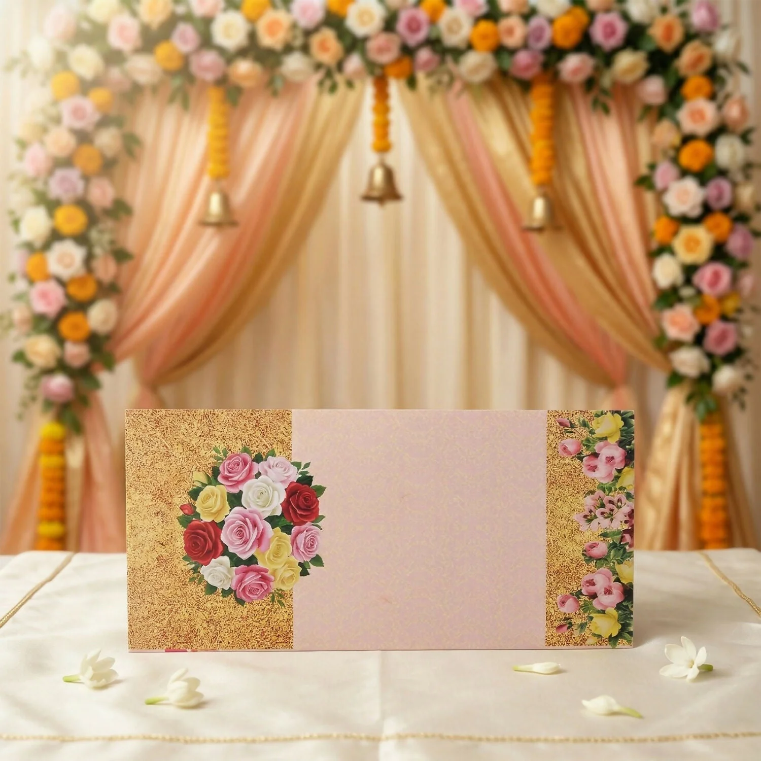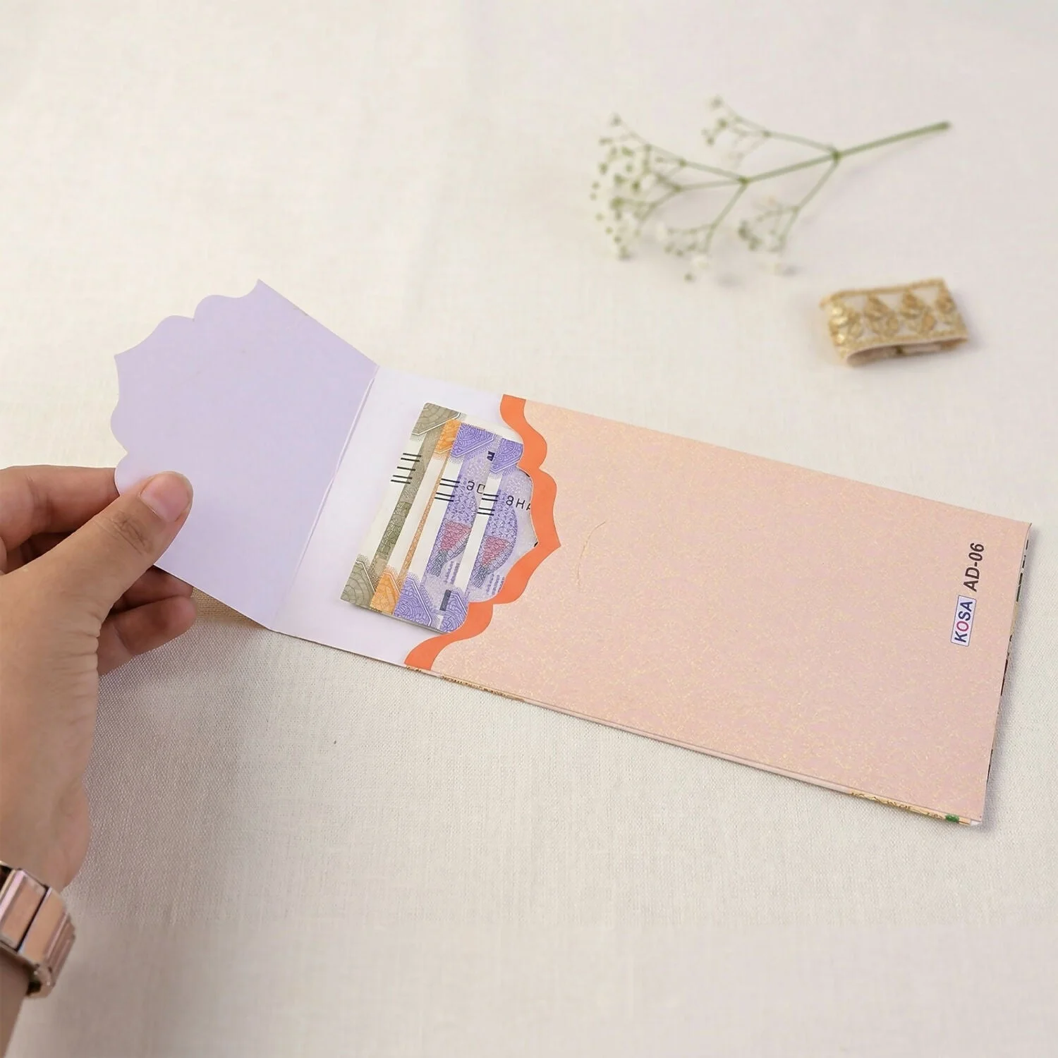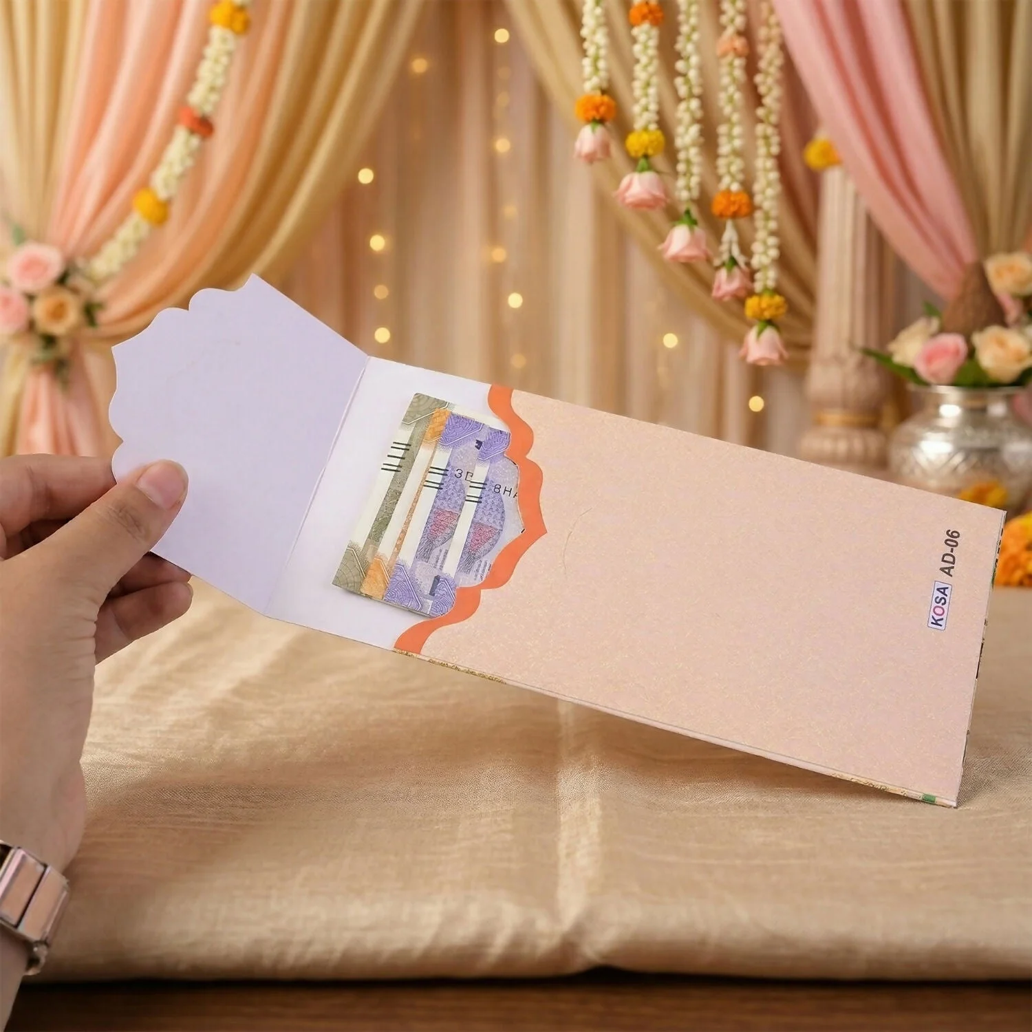 Add elegance and tradition to your gifting with this beautifully designed floral wedding shagun envelope. Crafted with a premium textured finish and adorned with vibrant floral patterns, this envelope enhances the presentation of your cash gifts. The inner pocket design ensures secure placement of money while maintaining a neat and classy look. Its aesthetic appeal perfectly complements festive and wedding occasions, making your gesture more special and memorable. Designed to reflect warmth and celebration, this envelope is ideal for modern and traditional ceremonies alike. A perfect blend of style, culture, and thoughtful gifting.