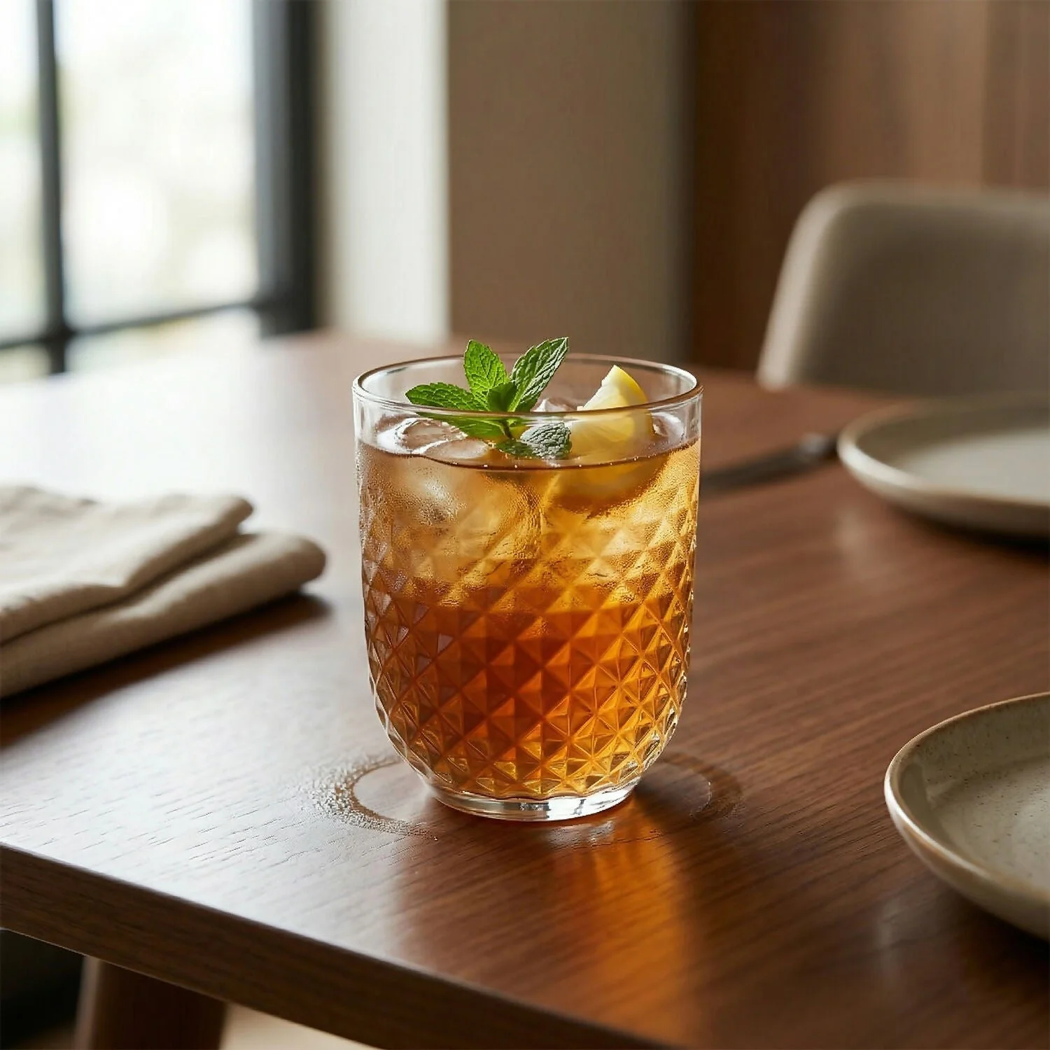 Ye 4-piece Diamond Textured Glass Set dikhne mein bilkul asli crystal glass jaisa lagta hai, lekin ye high-quality, durable plastic se bana hai. Iska unique diamond pattern na sirf ise ek luxury look deta hai, balki behtar grip bhi pradan karta hai.