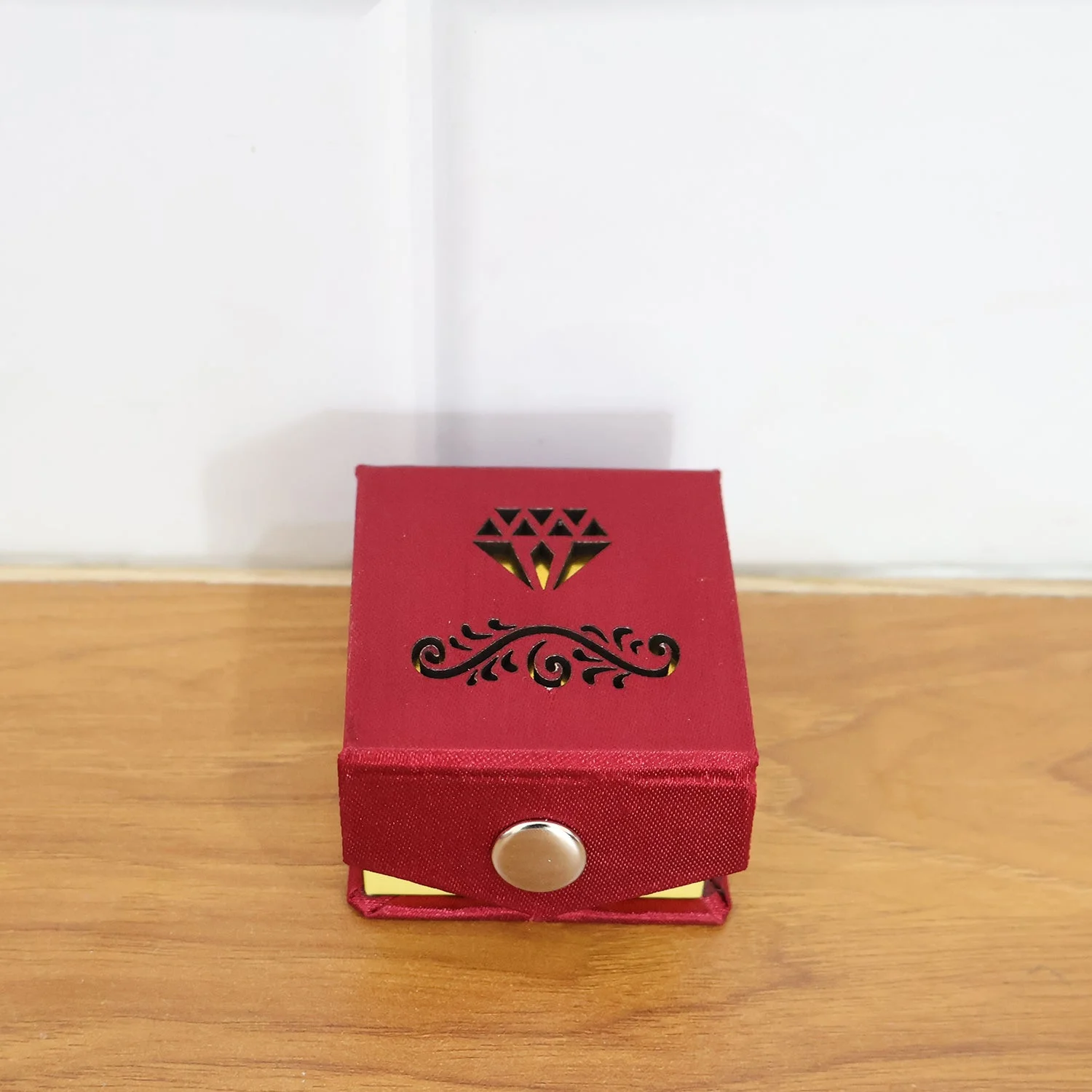 This beautifully crafted premium ring box is designed to present and protect your precious jewelry in the most elegant way. Featuring a sturdy outer casing with a decorative diamond-themed design, it adds a luxurious touch to any special occasion. The interior is lined with a soft velvet cushion that securely holds rings, preventing scratches and maintaining shine. The magnetic snap-style closure ensures the box remains firmly shut while providing easy access when needed. Compact, lightweight, and refined, it is perfect for ring presentations, gifting, and long-term jewelry storage. With its smooth finishing and striking color contrast, this box elevates the beauty and emotional value of any jewelry piece kept inside.