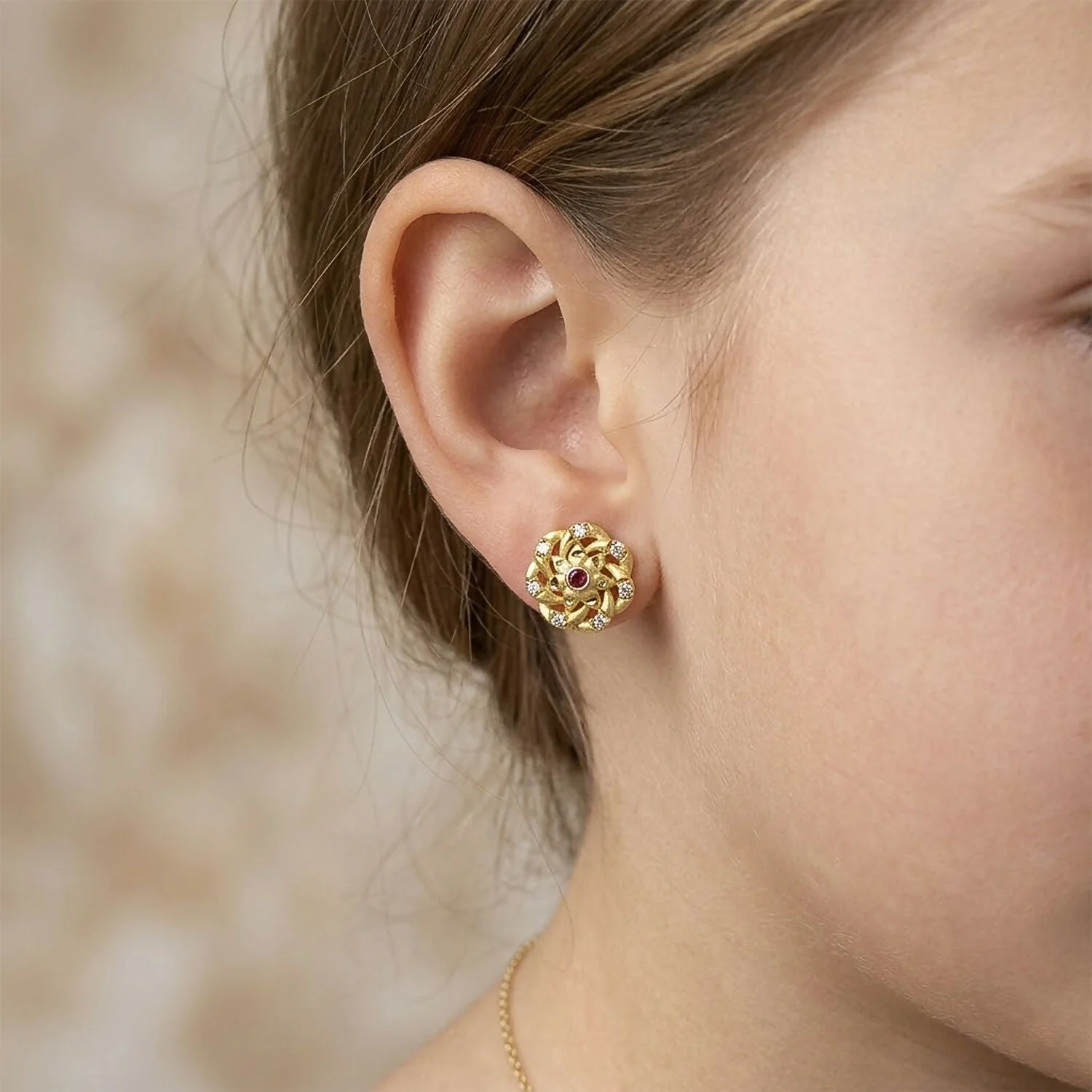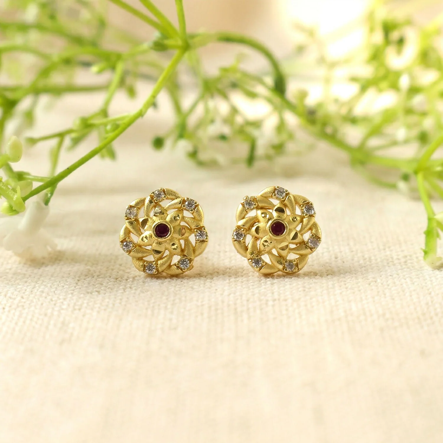 Be the first to review Premium Floral Cluster Gold Stud Earrings with Sparkling Stones!