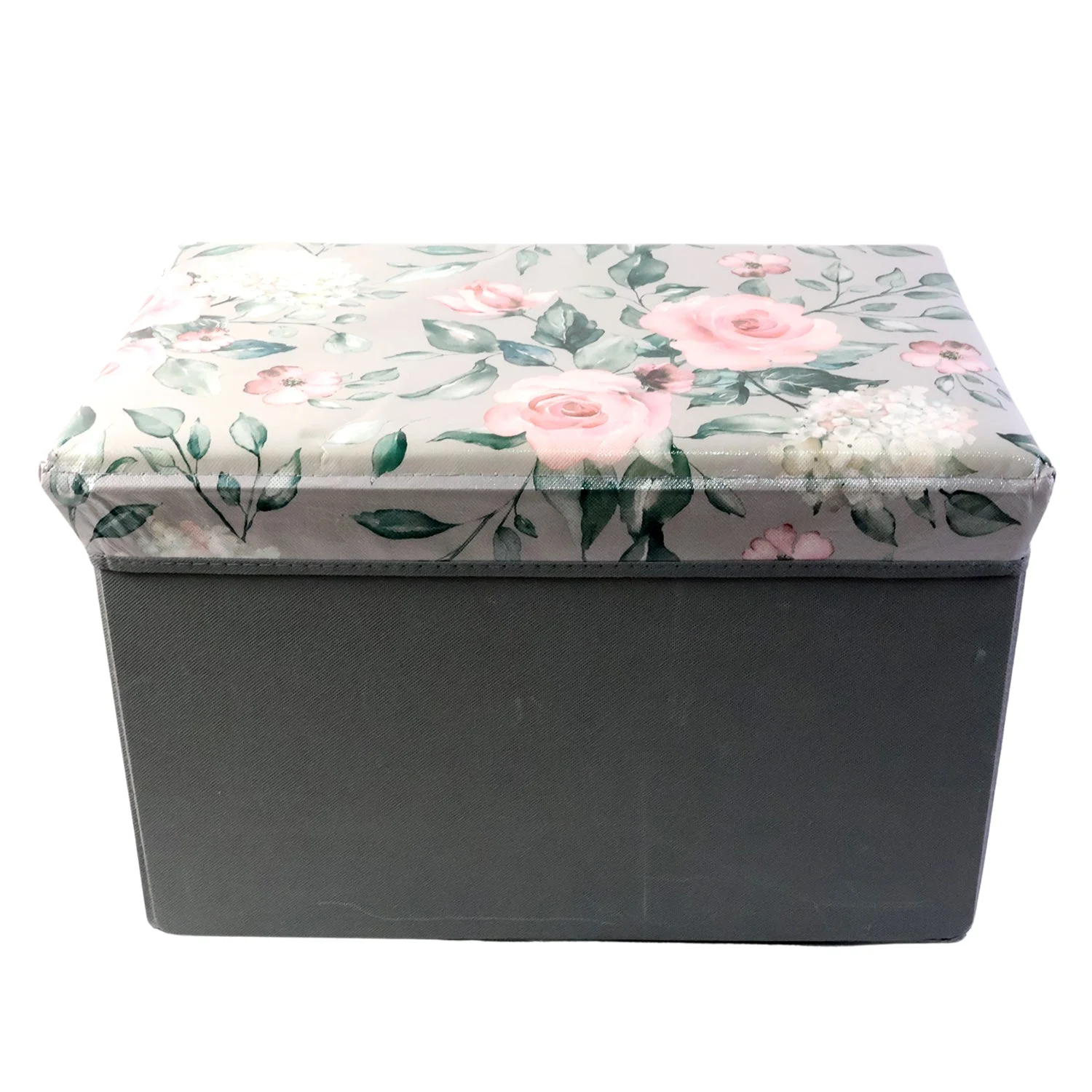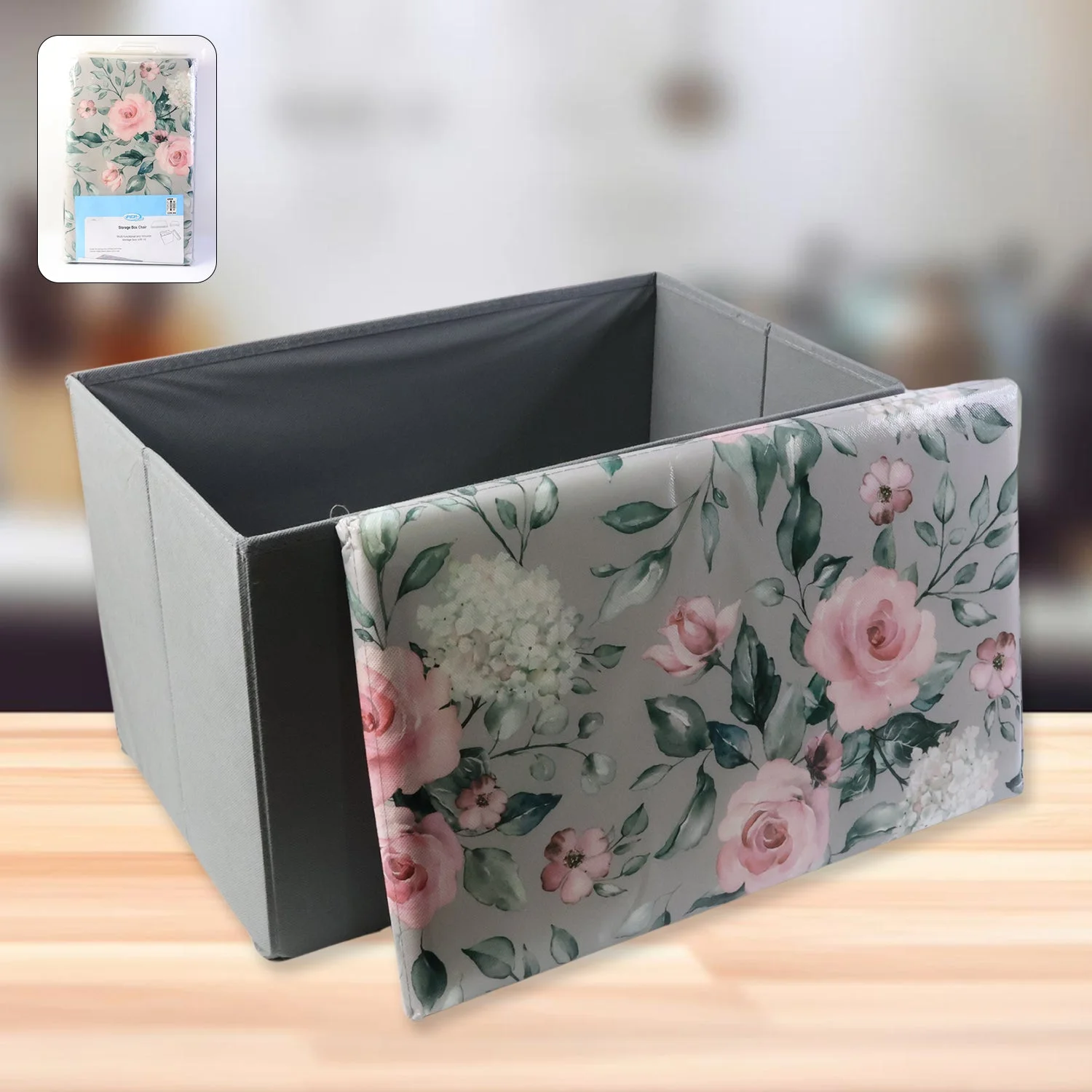 Premium Foldable Storage Box with Floral Lid – Multi-Purpose Organizer Basket for Clothes, Toys, Books, and Home Essentials | 48x30 cm Durable Fabric Storage Bin with Elegant Design