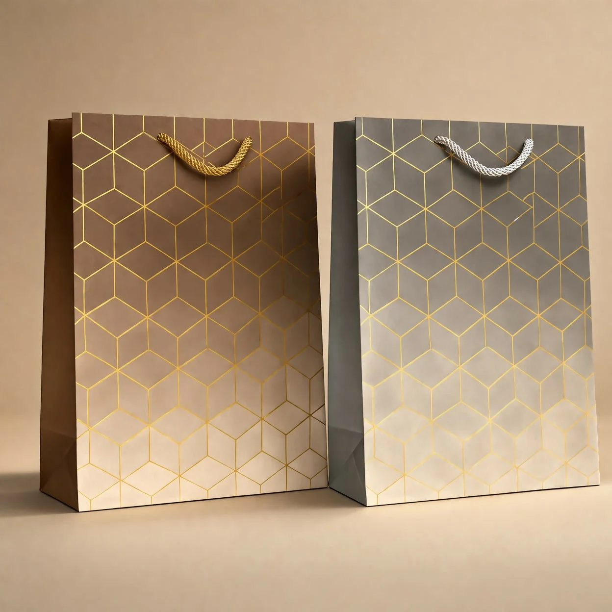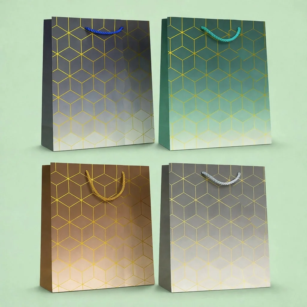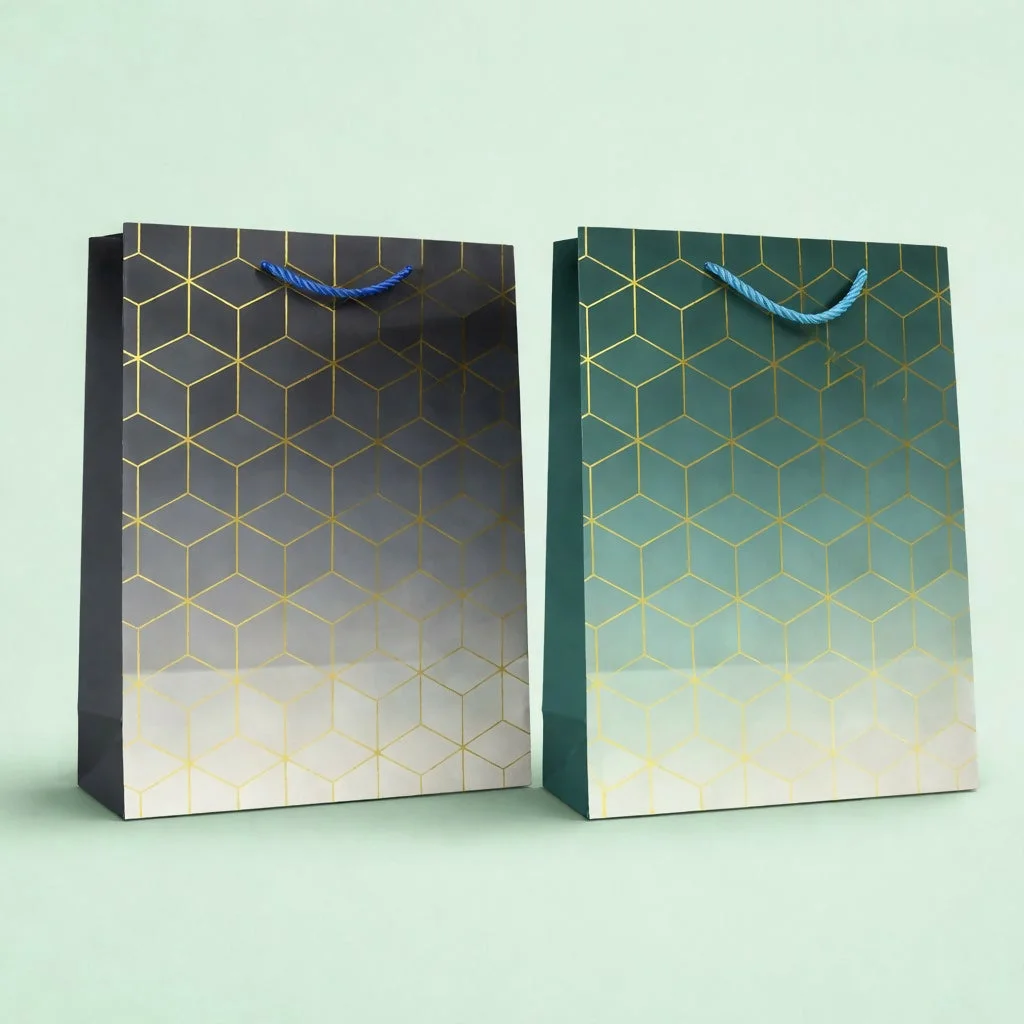 Present your gifts in style with this premium paper gift bag featuring a modern geometric pattern and sturdy rope handles. Designed with a smooth finish and elegant color gradient, this bag adds a luxurious touch to any occasion. Ideal for gifting clothes, accessories, return gifts, or festive hampers, it combines durability with aesthetic appeal. Perfect for birthdays, weddings, festivals, and special events.
