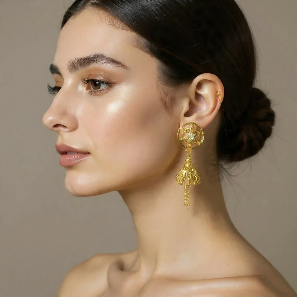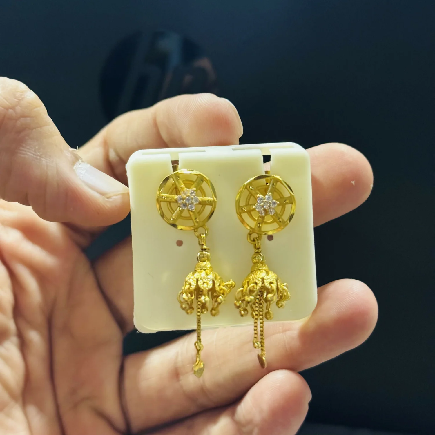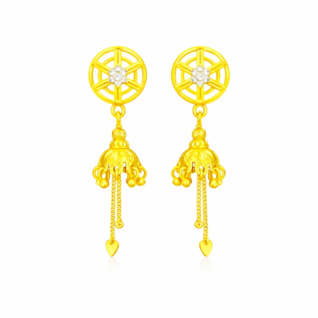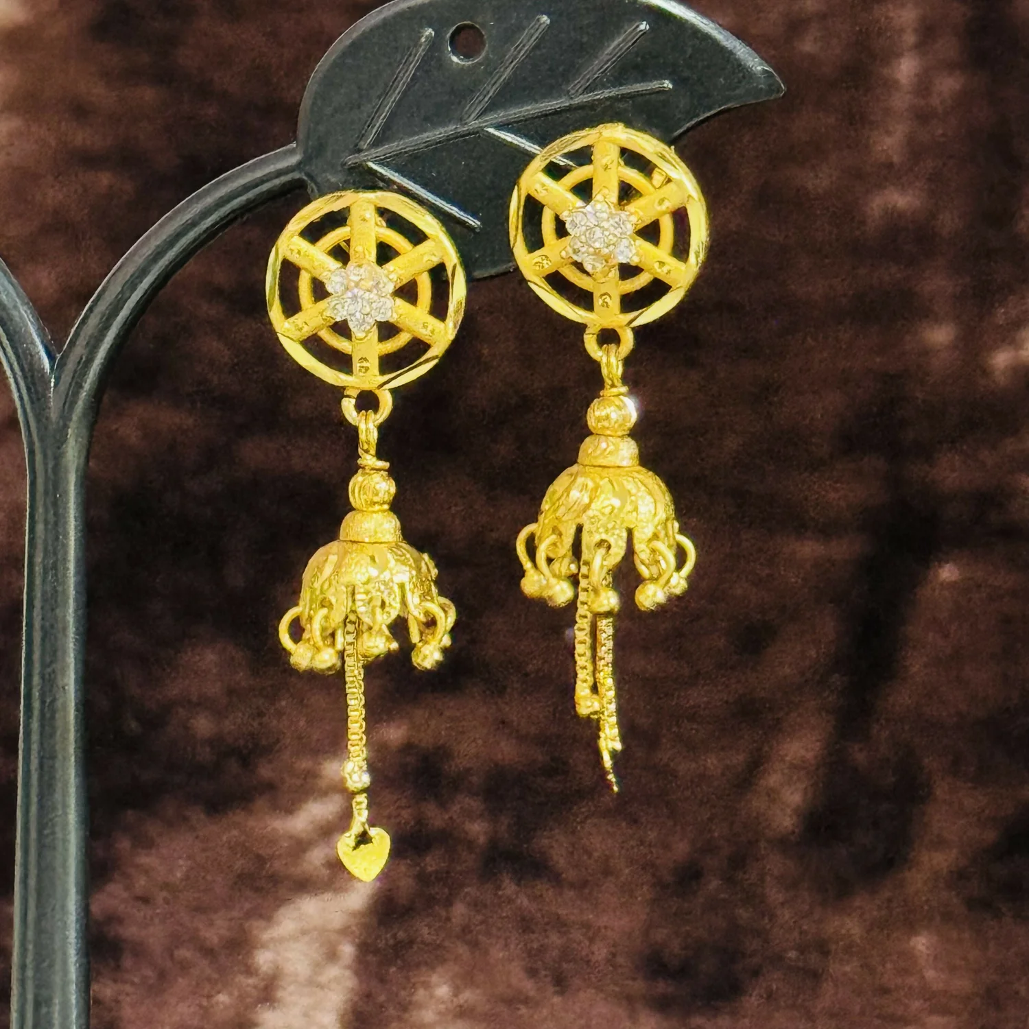 Be the first to review Premium Gold Finish Wheel Style Jhumki with Chain Tassels!