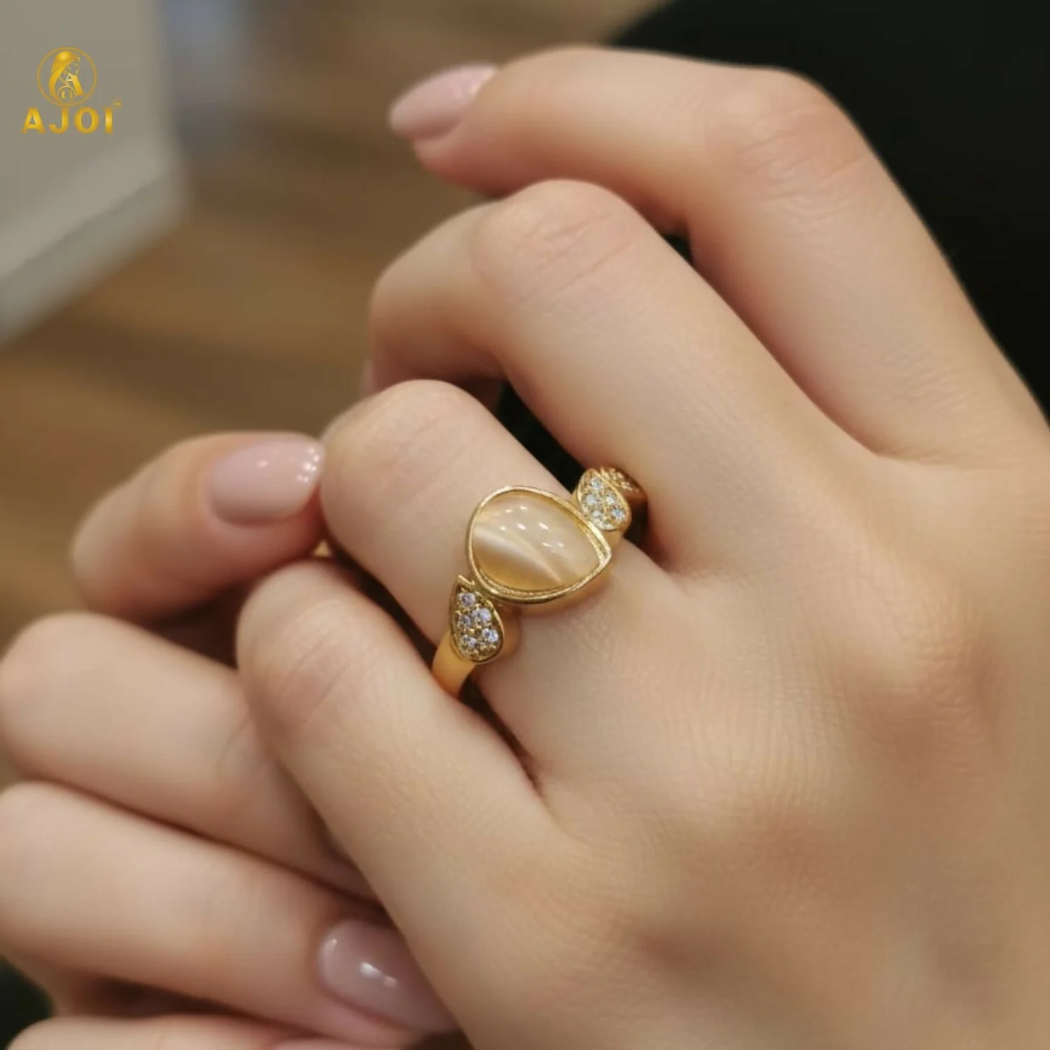Be the first to review Premium Gold Plated Cat Eye Stone Designer Ring for Women!