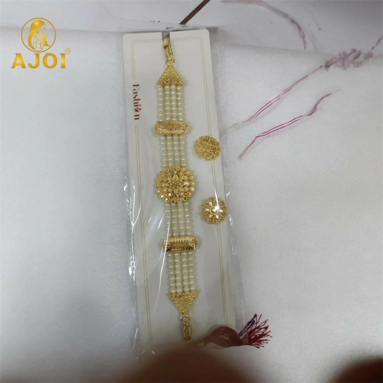 Introducing this exquisitely handcrafted Gold-Plated Pearl Chick Set, designed to elevate your ethnic elegance. Featuring multi-layered pearl detailing, intricate floral motifs, and a luxurious gold finish, this set brings a regal touch to any traditional outfit. Ideal for brides and festive occasions, this chic and timeless piece adds unmatched sophistication.