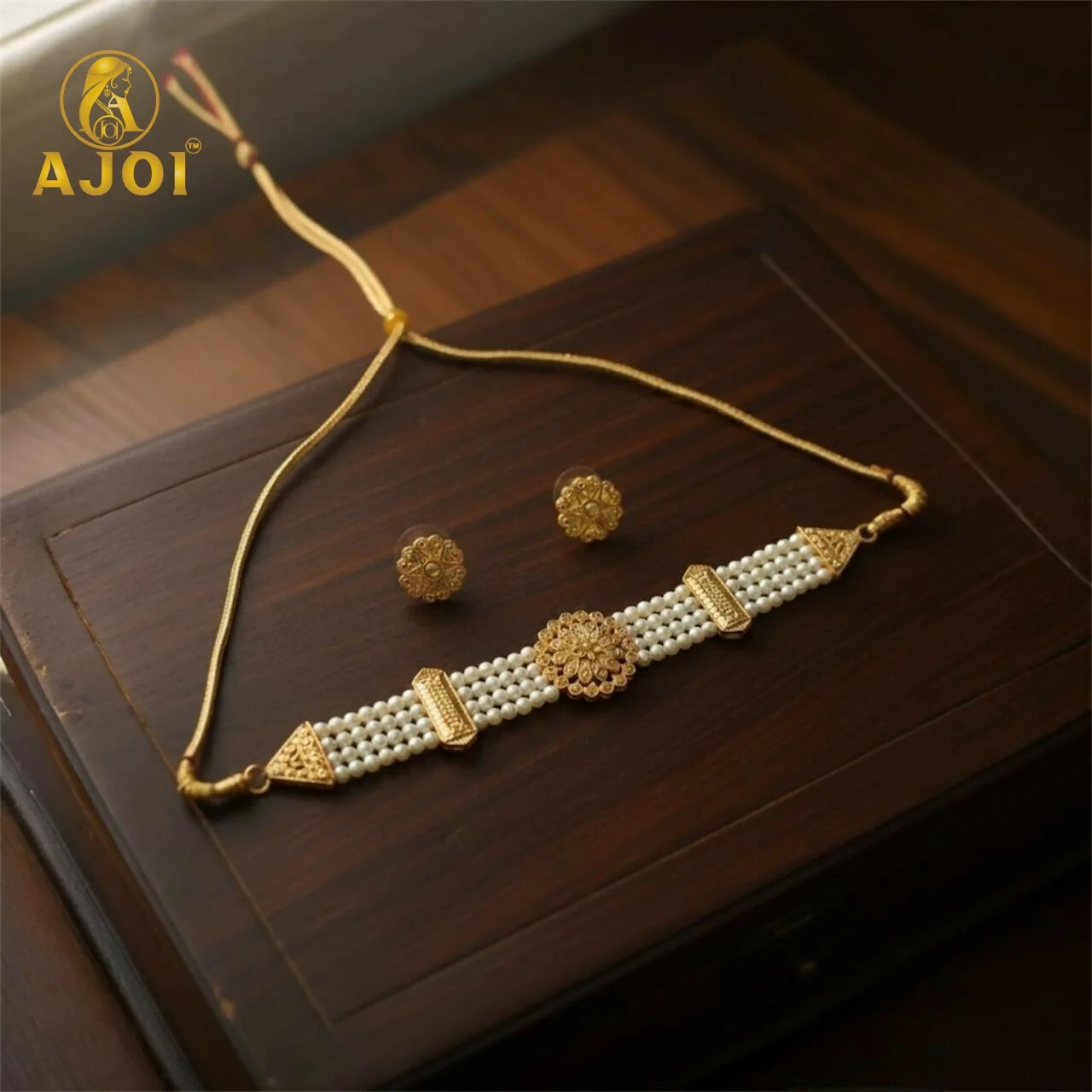 Be the first to review Premium Gold-Plated Pearl Chick Set | Traditional Bridal Jewellery Set!