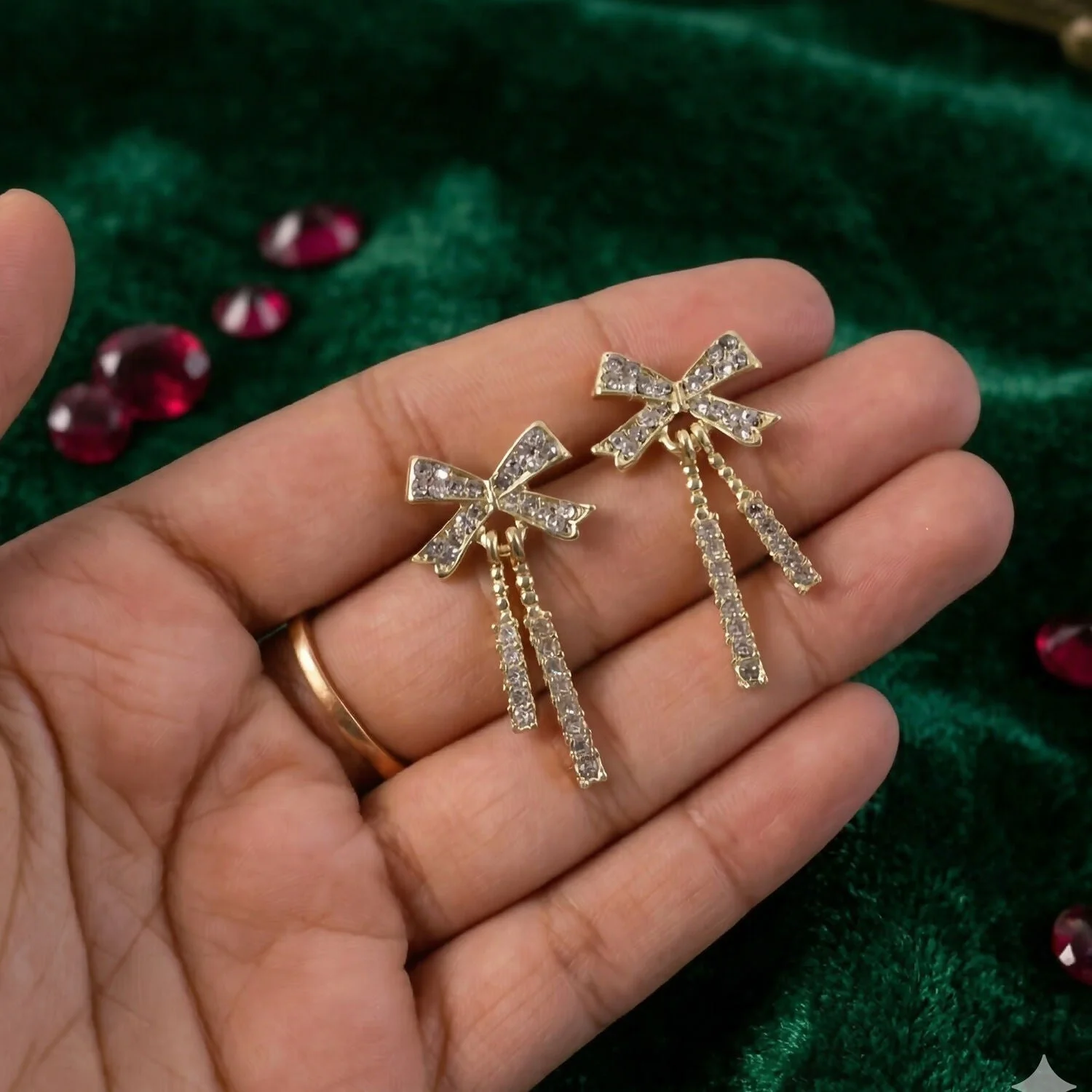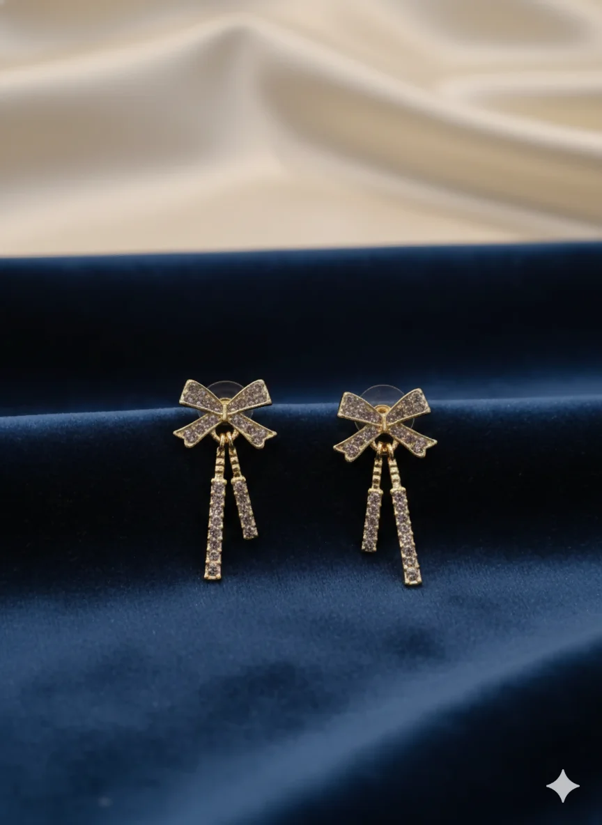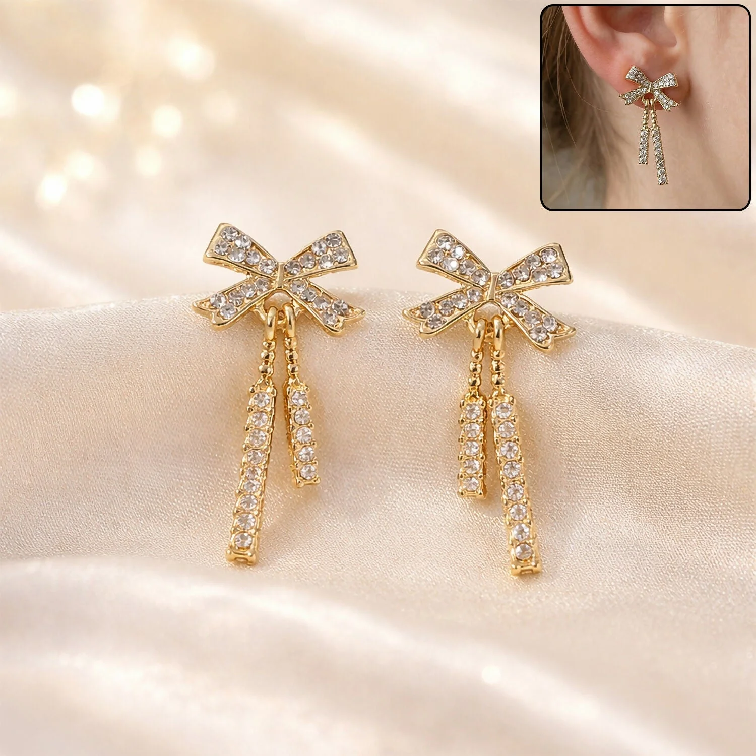 Be the first to review Premium Golden Bow-Knot Diamond Tassel Earrings (Korean Collection)!