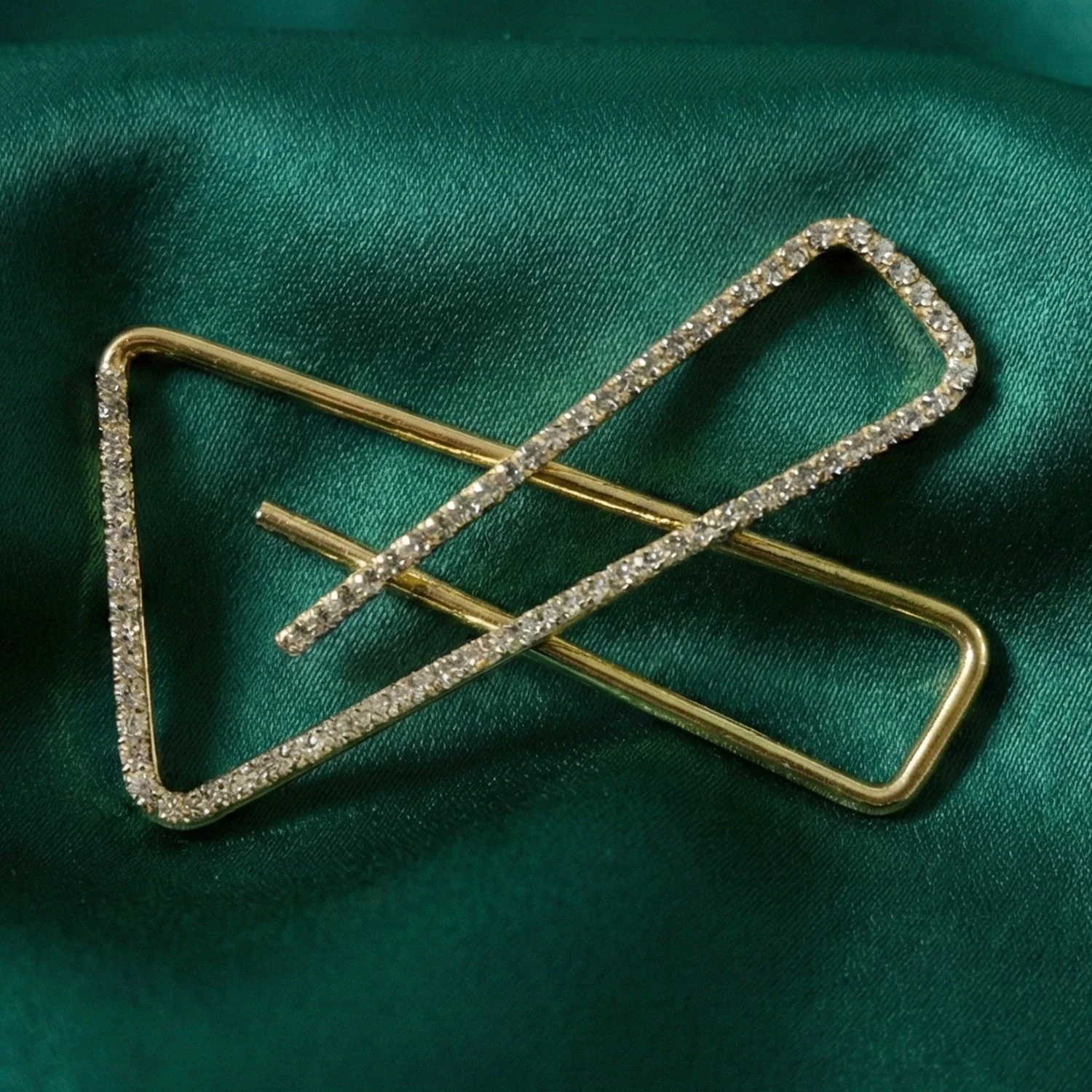 Elegant geometric triangle design with crystal embellishment