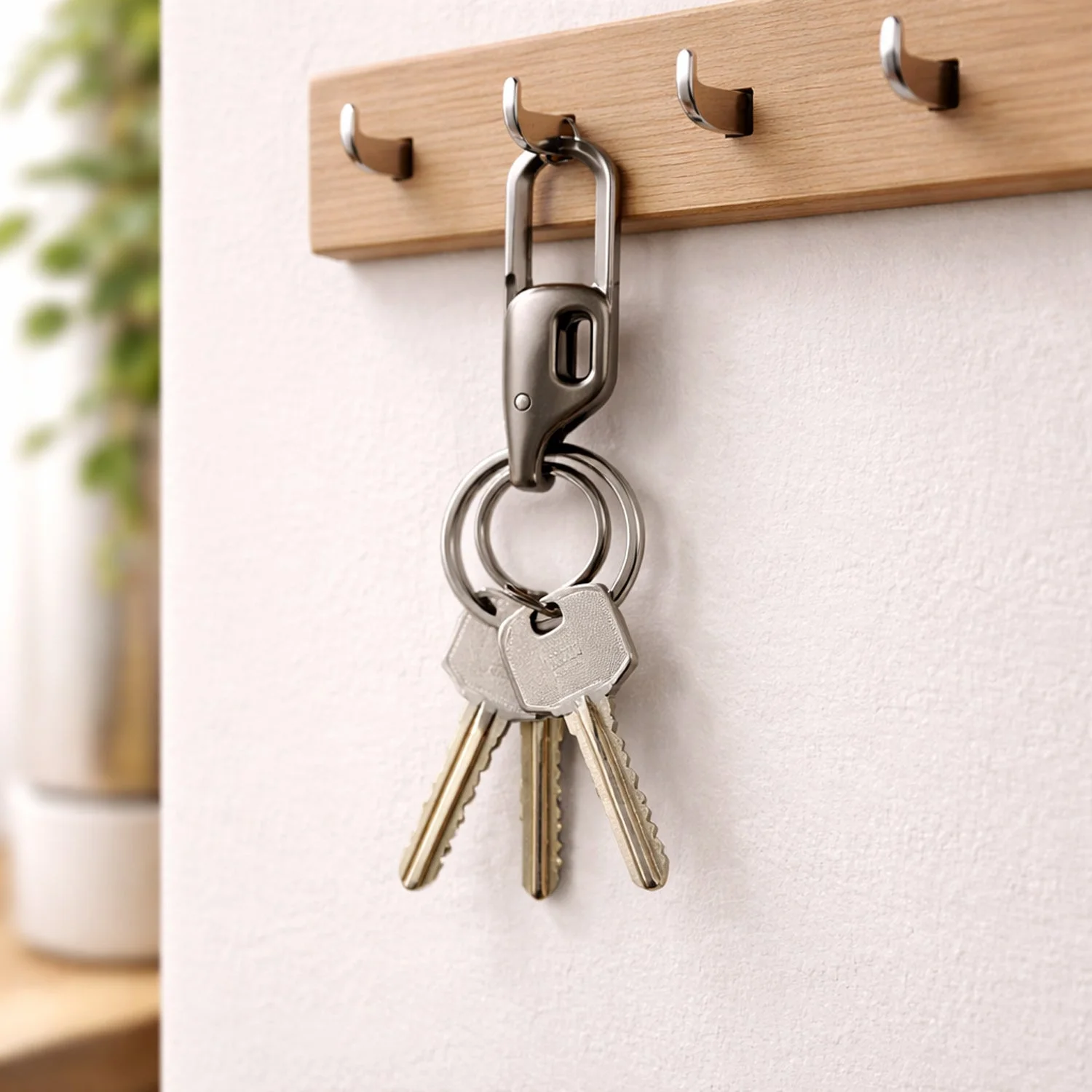 Keys can easily fall or get lost when keychains don’t hold them securely. The Premium Heavy Duty Push Lock Metal Keychain with Dual Ring provides a stronger locking mechanism for everyday use. This push lock metal keychain keeps keys firmly attached.