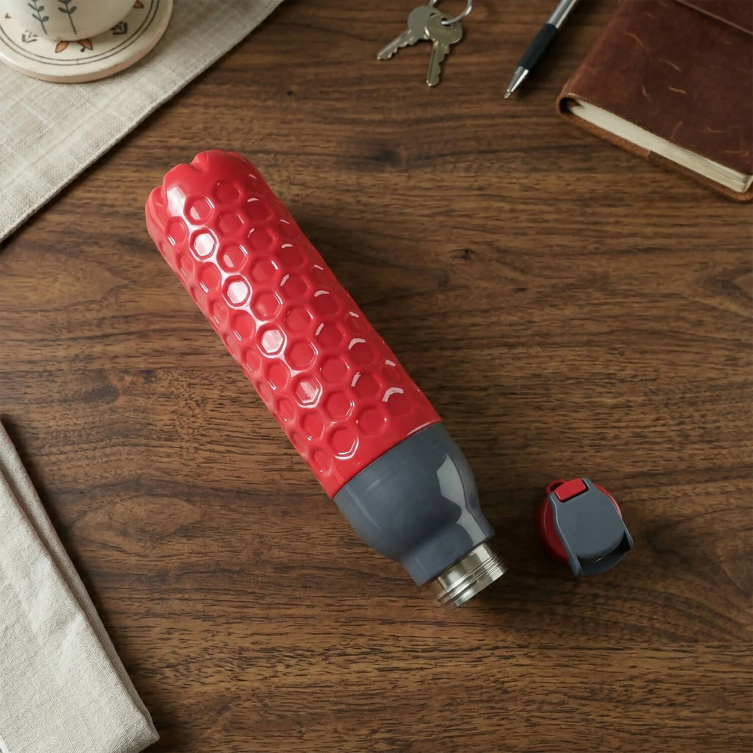 Ye 1100ml Insulated Water Bottle un logo ke liye design ki gayi hai jo fitness aur adventure ke shaukeen hain. Iska unique honeycomb textured surface na sirf ise ek futuristic look deta hai, balki behetreen anti-slip grip bhi pradan karta hai.