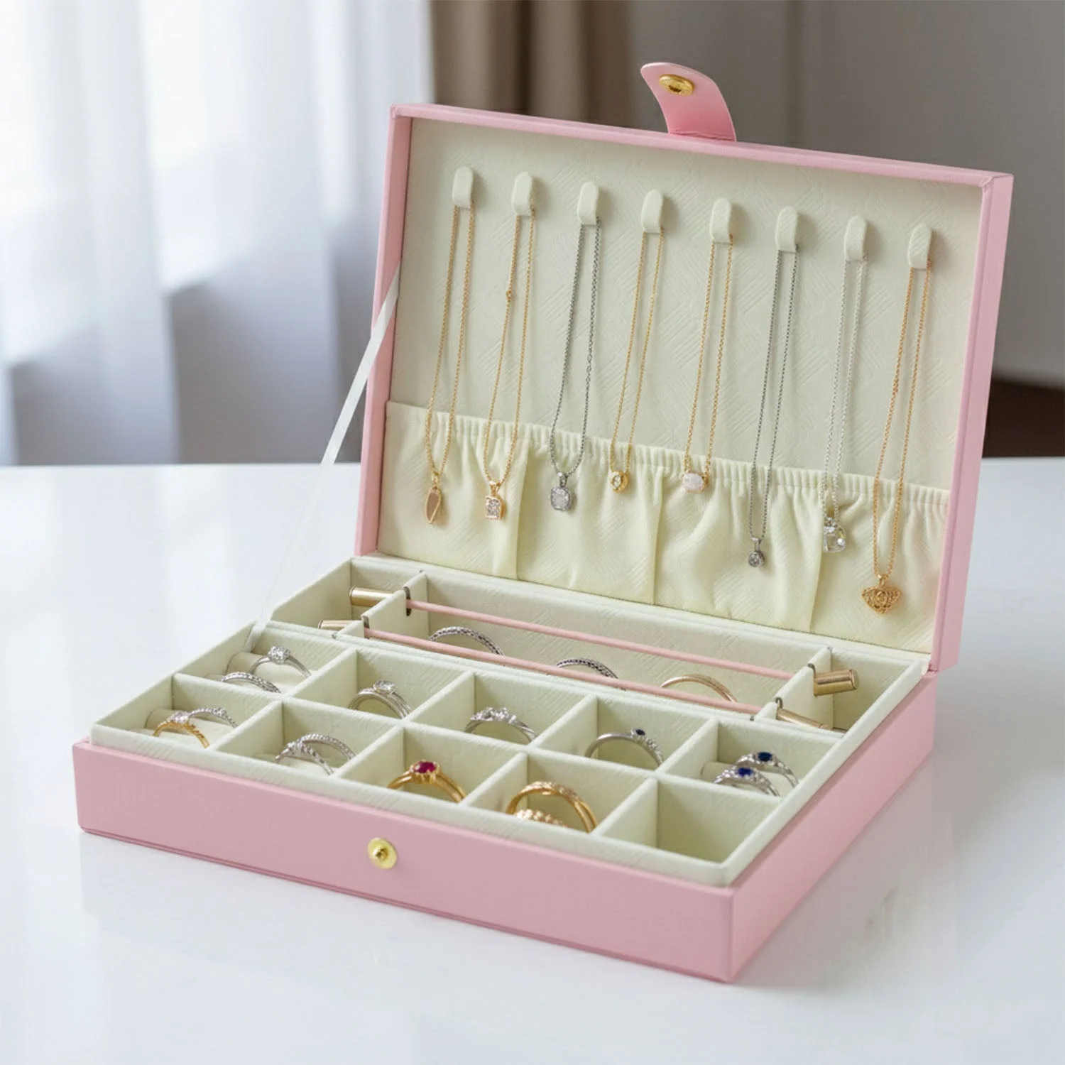 Separate sections to keep jewellery safe from scratches