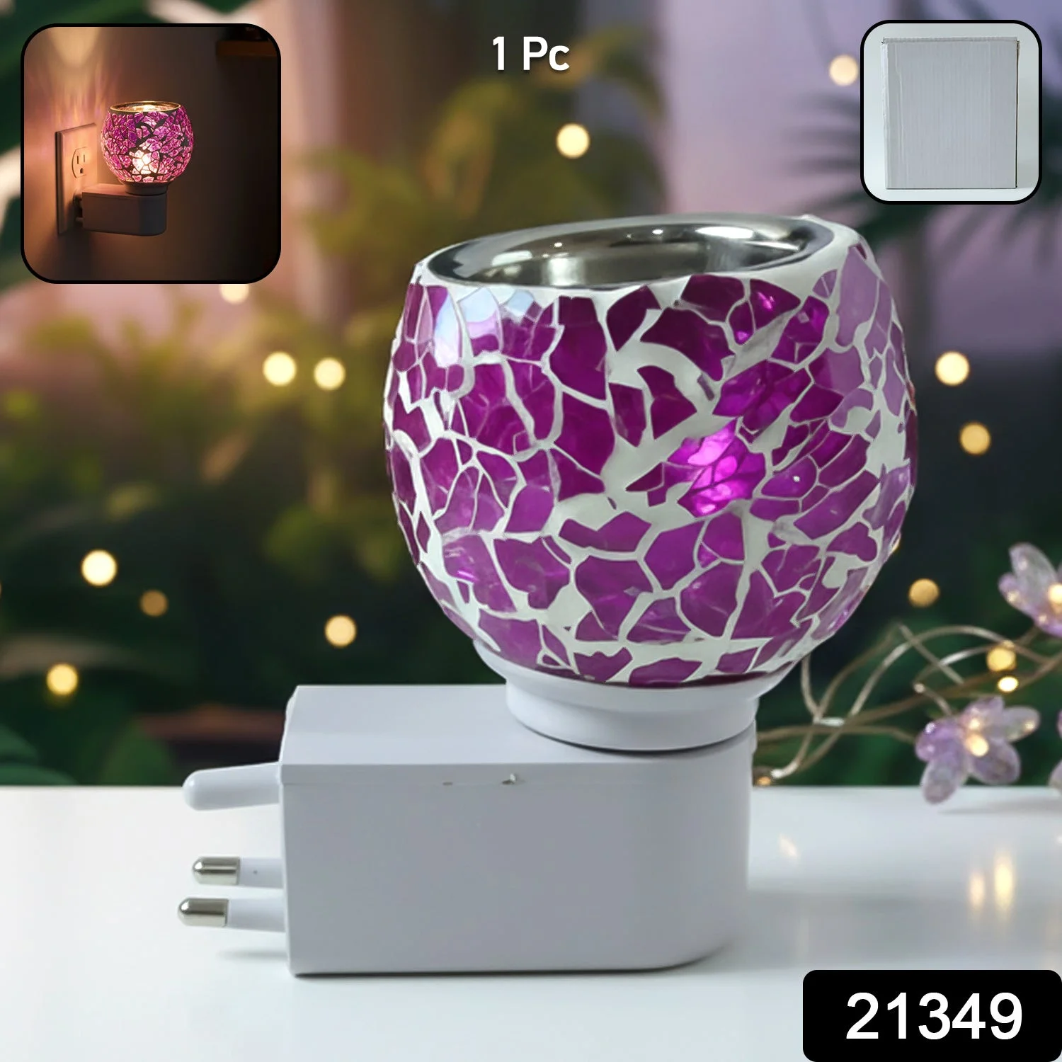 premium kapoor dani plug-in aroma diffuser, mosaic glass night lamp, purple crackle globe lamp, warm ambient light night lamp, electric fragrance oil burner, home bedroom aroma diffuser, living room decorative night light, festive decor night lamp, daily relaxation aroma lamp, multipurpose plug-in night lamp, stylish mosaic diffuser, ambient fragrance lamp, cozy room lighting diffuser, decorative home fragrance lamp