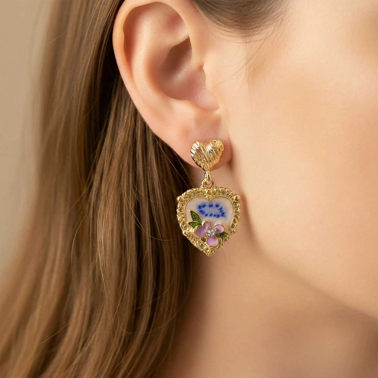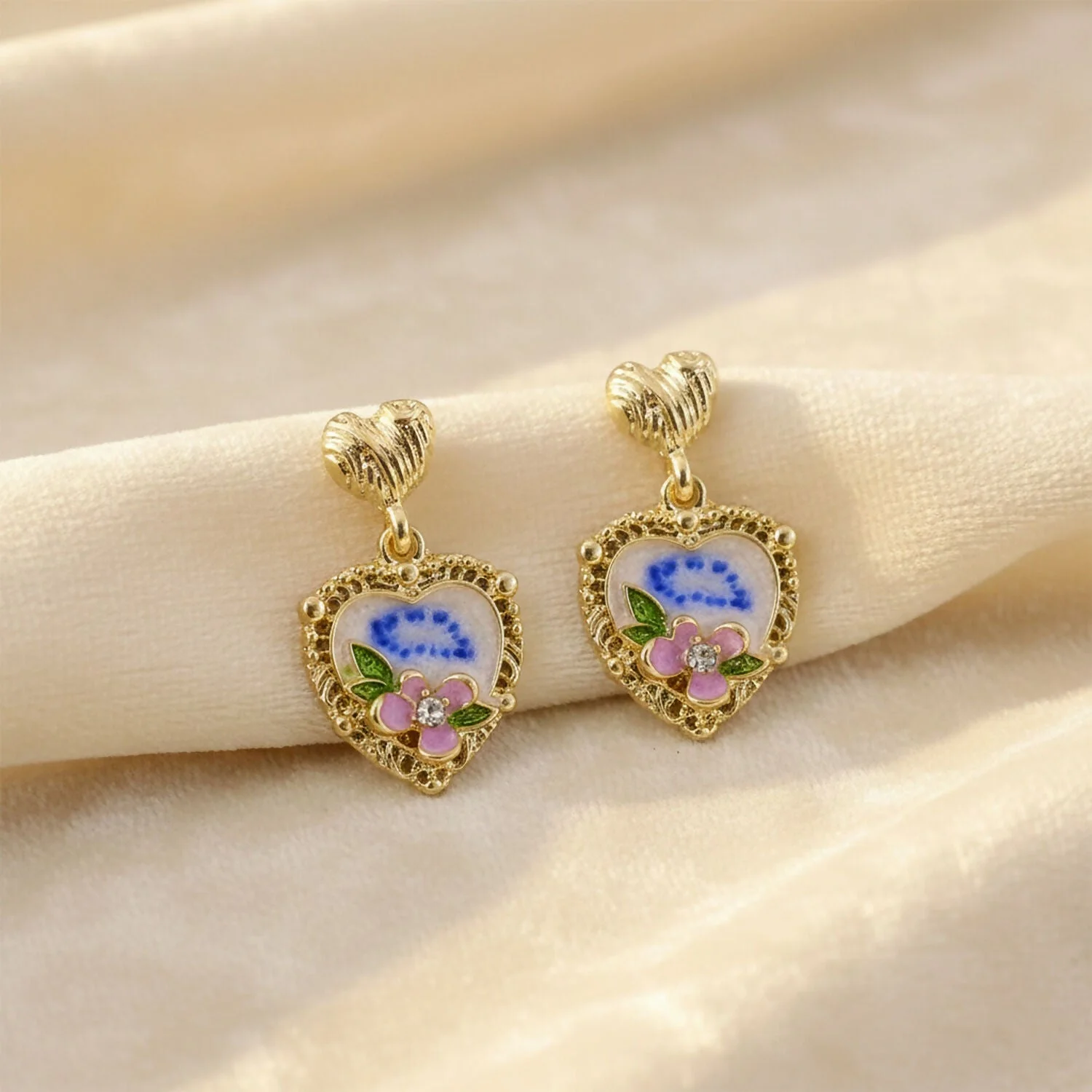 Be the first to review Premium Korean Style Heart Floral Drop Earrings for Women | Gold Plated Pearl & Crystal Fashion Earrings!