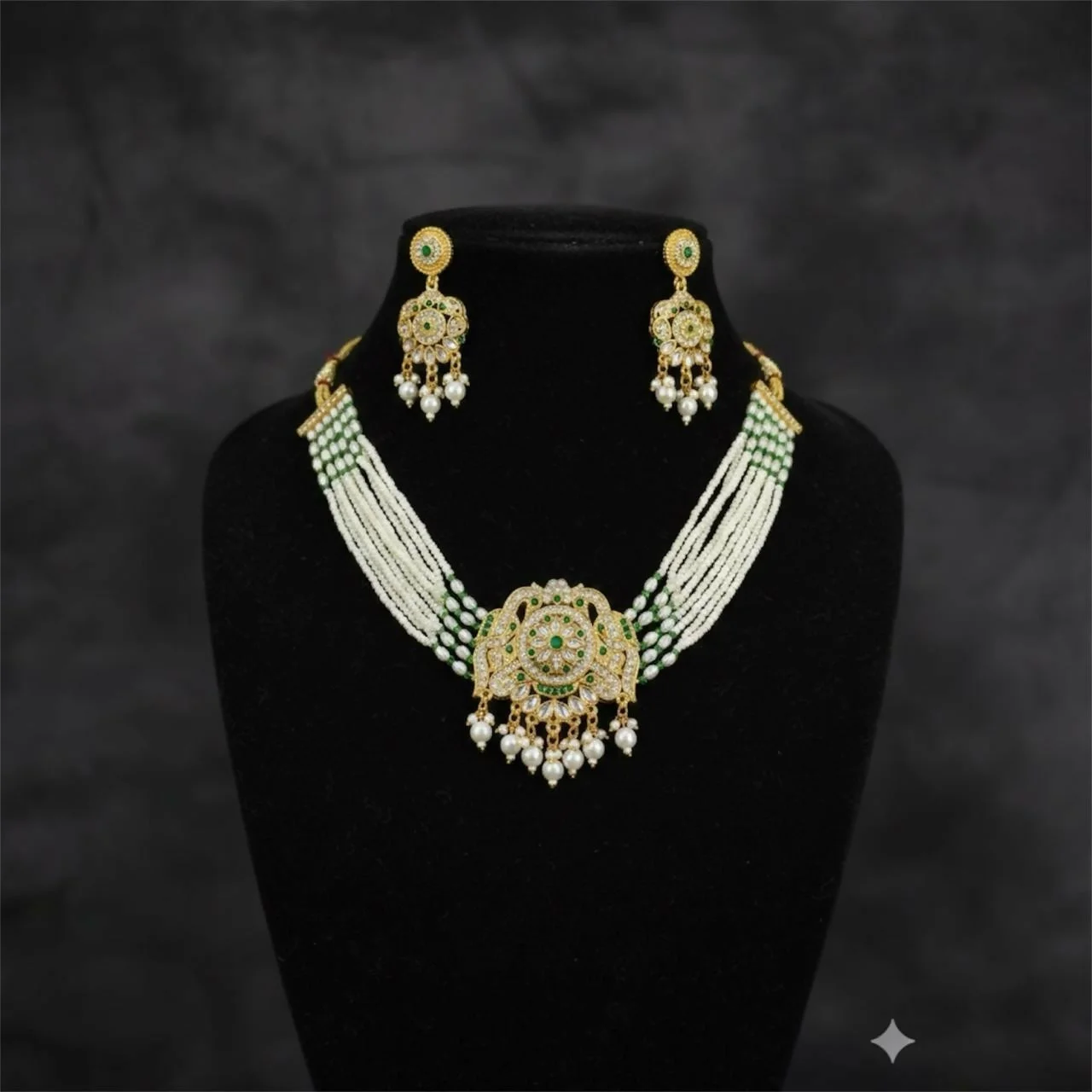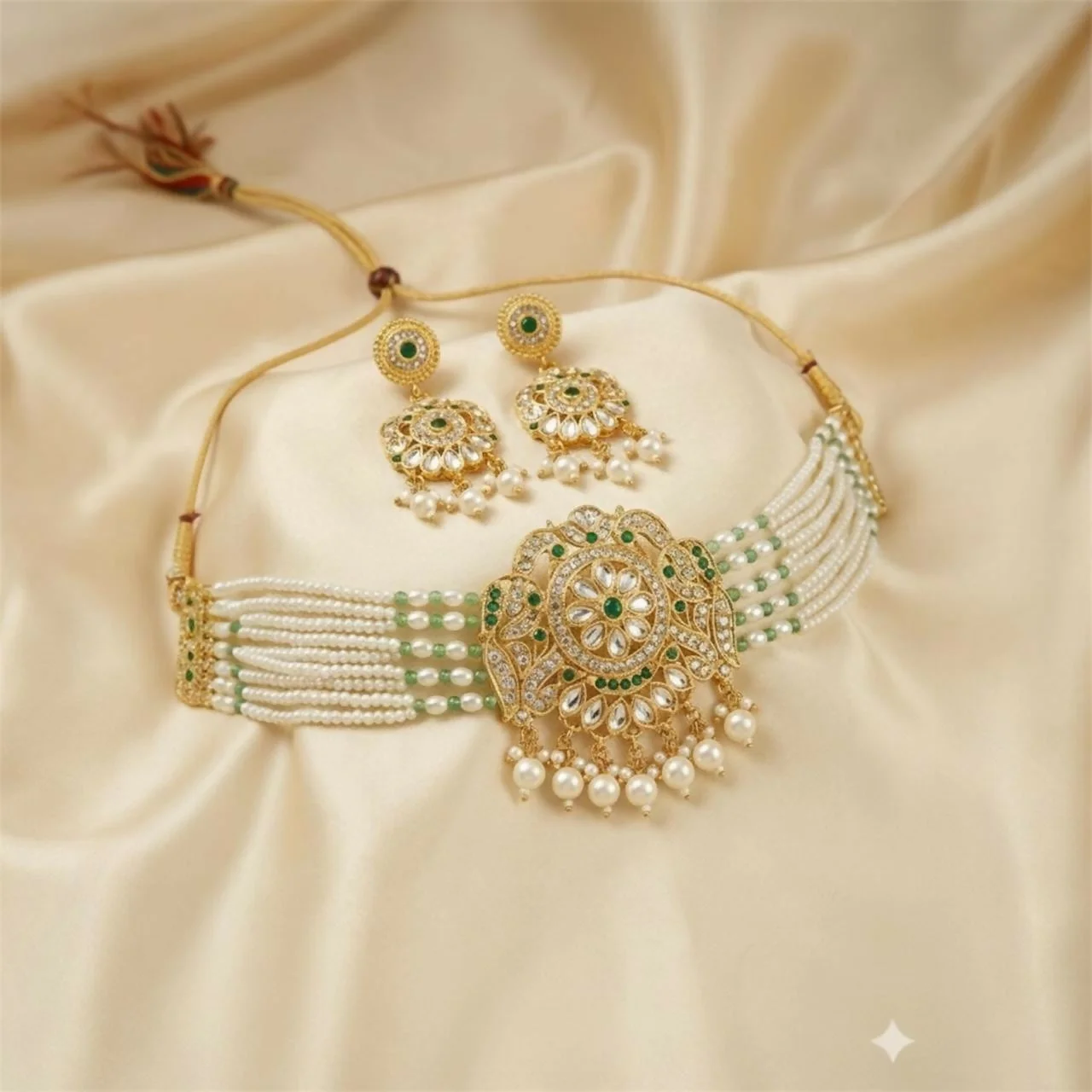 Matched with coordinating earrings, this set complements traditional outfits such as silk sarees and lehengas, making it ideal for weddings, festive occasions, receptions, engagement ceremonies, and bridal styling.