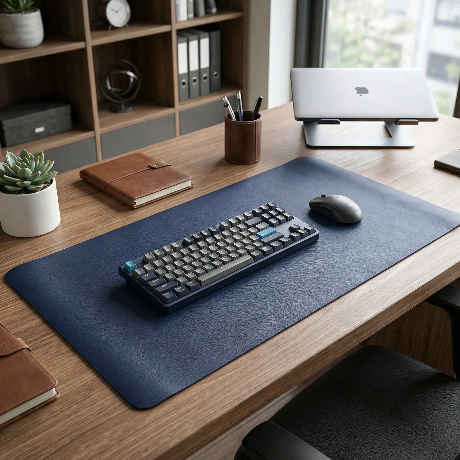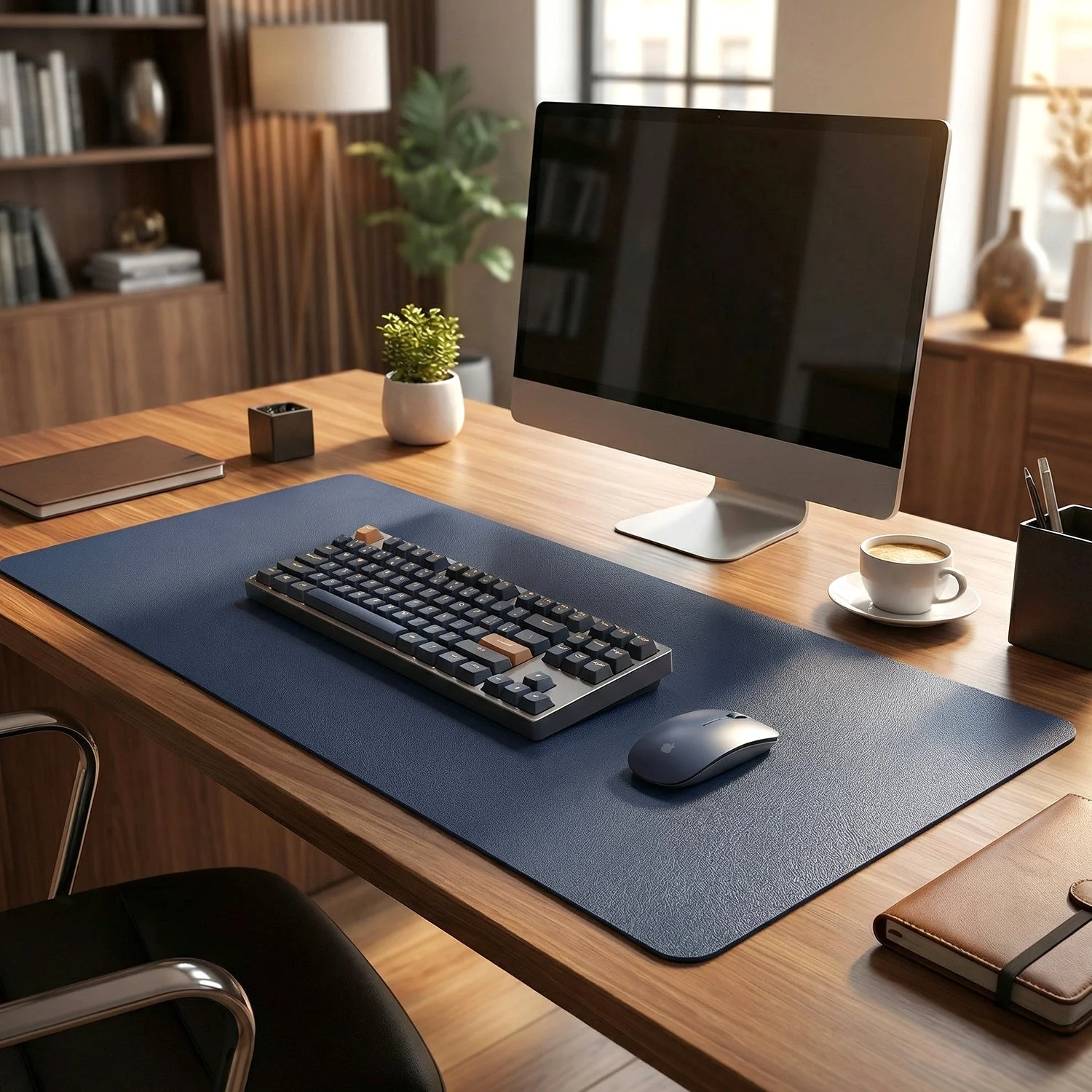 Ideal for office setups and gaming desks, this large desk mat for office desk offers enough space for multiple devices. The leather desk protector mat helps prevent scratches while improving mouse movement. A premium extended desk mouse pad designed for modern workspaces.