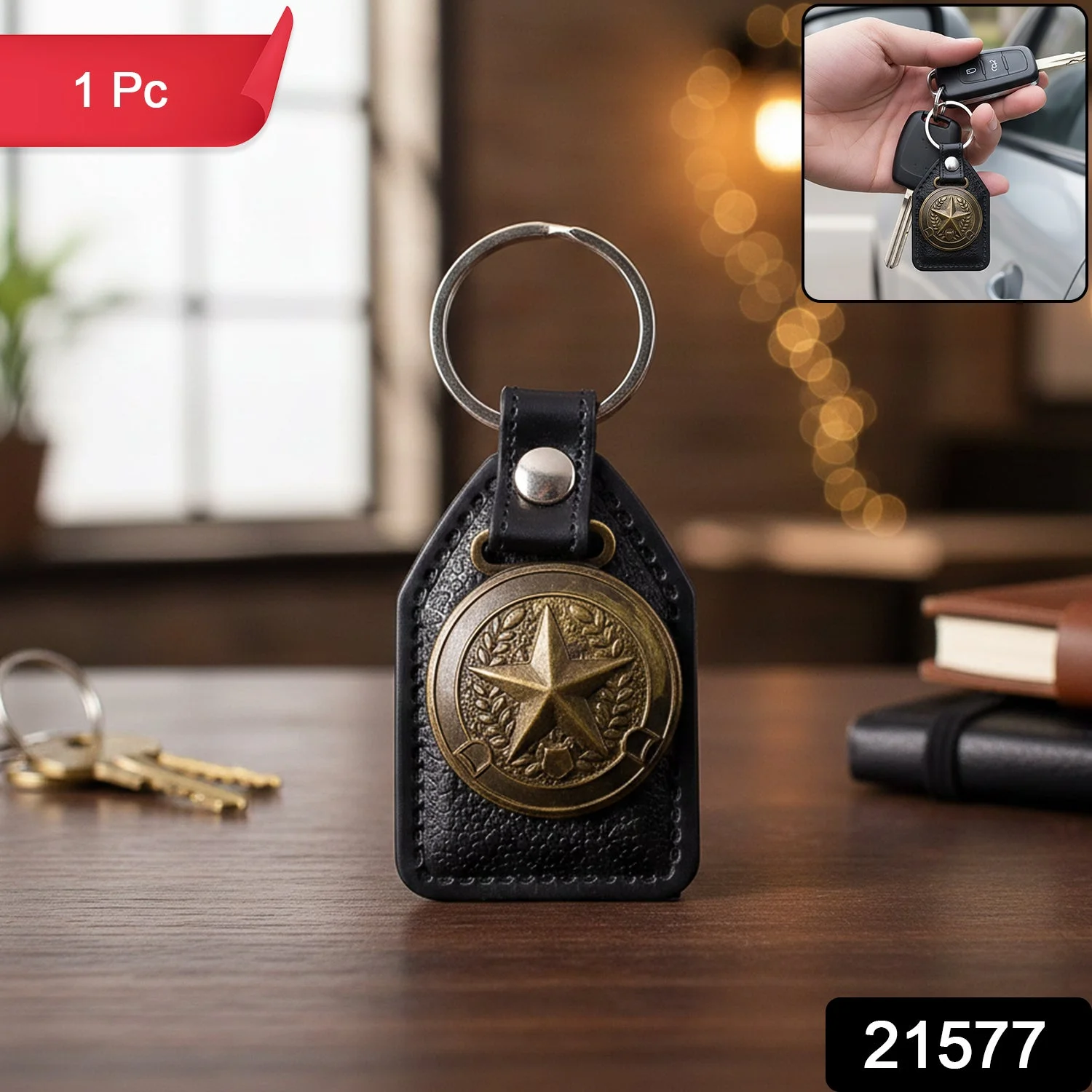 premium leather finish keychain, metal star emblem keychain, stylish decorative key holder, strong key ring keychain, car keys keychain, bike keys key ring, home keys keychain, leather and metal keychain, gift keychain accessory, luxury key ring for men, novelty star keychain, durable leather key holder, fashion keychain for keys, collectible metal keychain