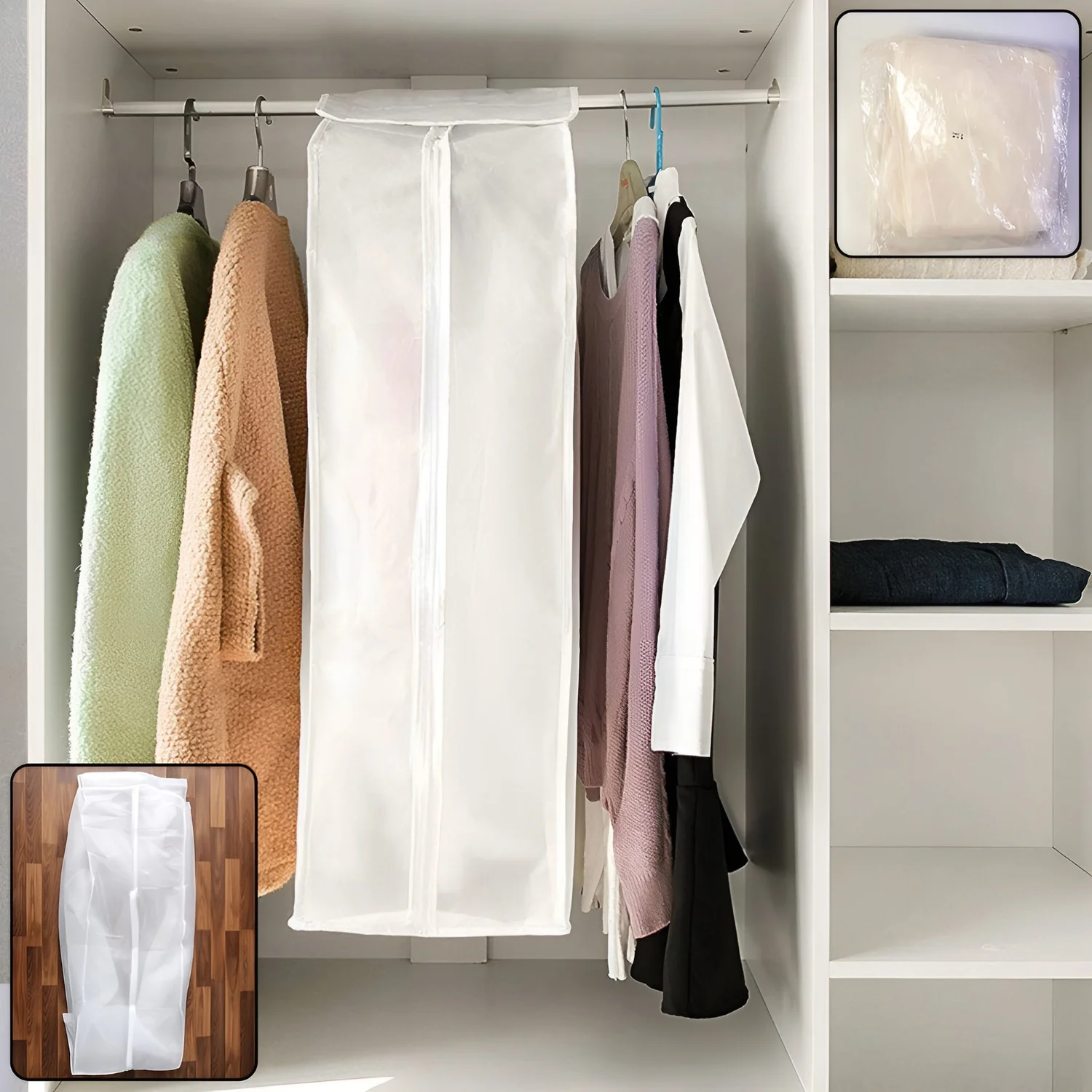 A perfect storage solution for seasonal clothing, travel, wardrobe organization, and long-term garment preservation.
