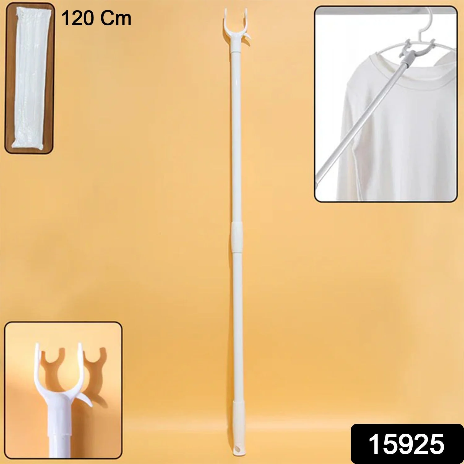 This premium long reach clothes hook rod is designed to make hanging and removing clothes from high places effortless and convenient. With an 120 cm length, it provides the perfect extended reach for wardrobes, overhead drying rods, balcony hangers, and storage racks. The sturdy, lightweight construction ensures easy handling, while the front U-shaped hook grips hangers securely without slipping. The ergonomic handle offers a comfortable grip, allowing smooth lifting, positioning, and retrieving of clothes. Ideal for both homes and professional settings, this rod is especially useful for individuals who need extra reach or prefer organized and efficient laundry routines. Durable and practical, it enhances accessibility while reducing strain and enhancing overall convenience.