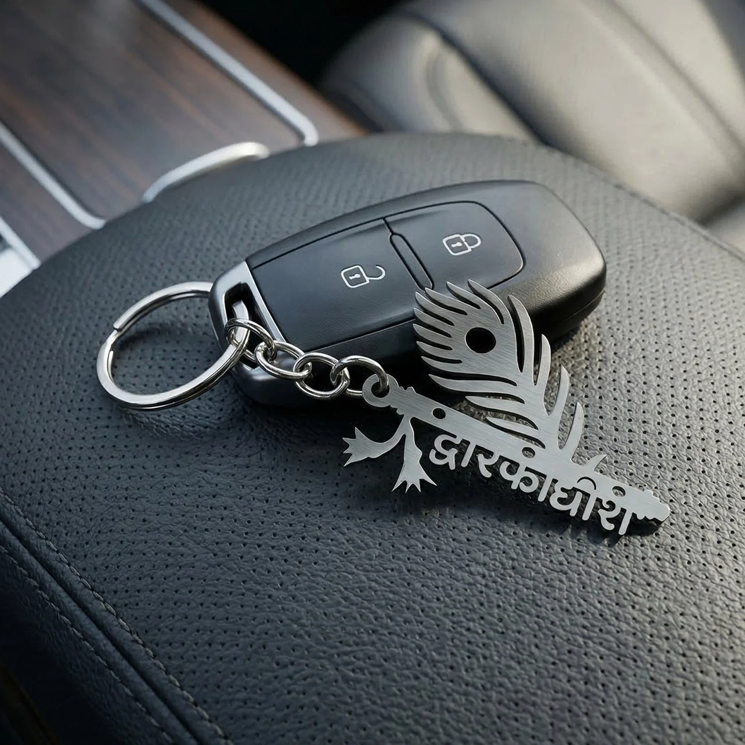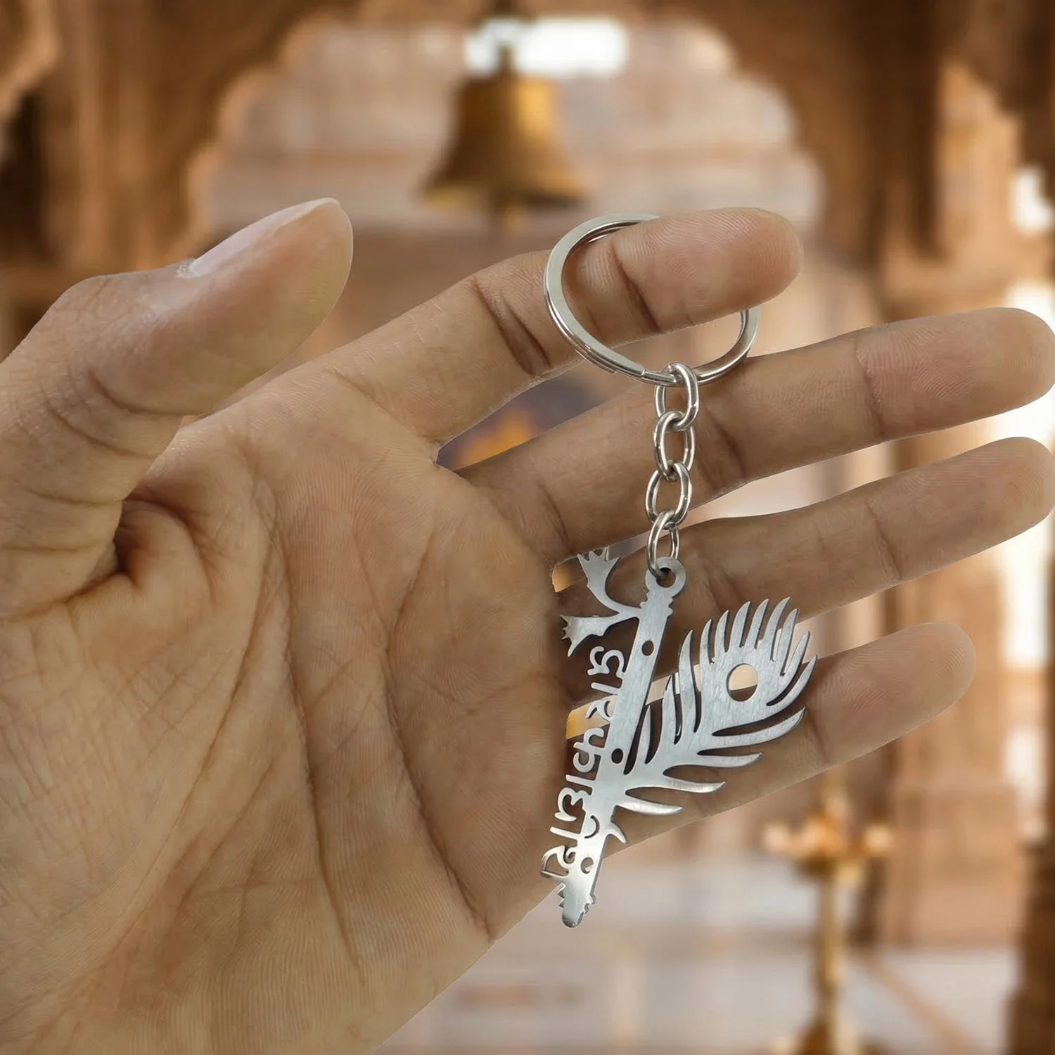 Premium Metal Dwarkadhish Feather Design Keychain 1 Pc – Elegant Spiritual Key Holder with Durable Ring for Car Keys, Bike Keys, Bags and Everyday Use