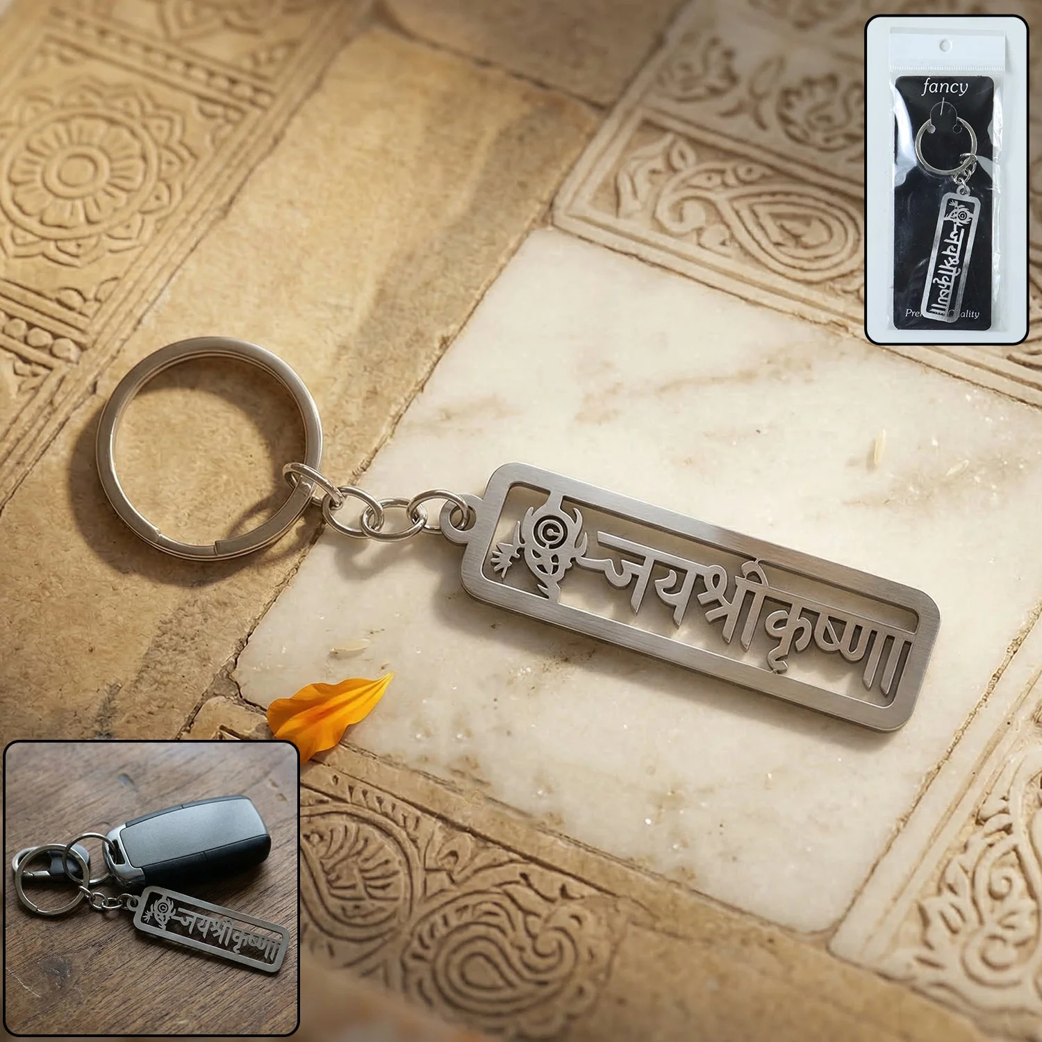 For many people, carrying a symbol of devotion brings comfort during daily life. The Premium Metal Jay Shri Krishna Engraved Keychain combines spiritual meaning with practical key organization. This jay shri krishna keychain features a devotional engraving associated with Lord Krishna.