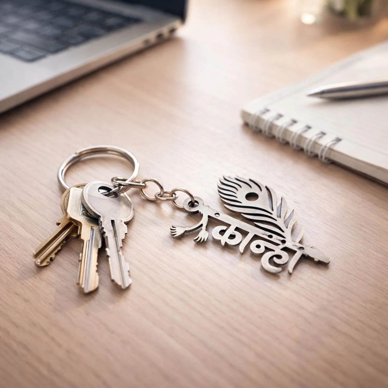 metal kanha keychain premium design, lord krishna kanha engraved keychain, peacock feather kanha key ring metal, spiritual hindu god kanha keychain, durable metal keychain for car bike home keys, stylish kanha krishna design keychain, religious kanha keychain gift item, premium metal key ring spiritual accessory, devotional kanha engraved keychain, small portable hindu god kanha keychain metal, artistic kanha krishna keychain durable, decorative spiritual keychain daily use