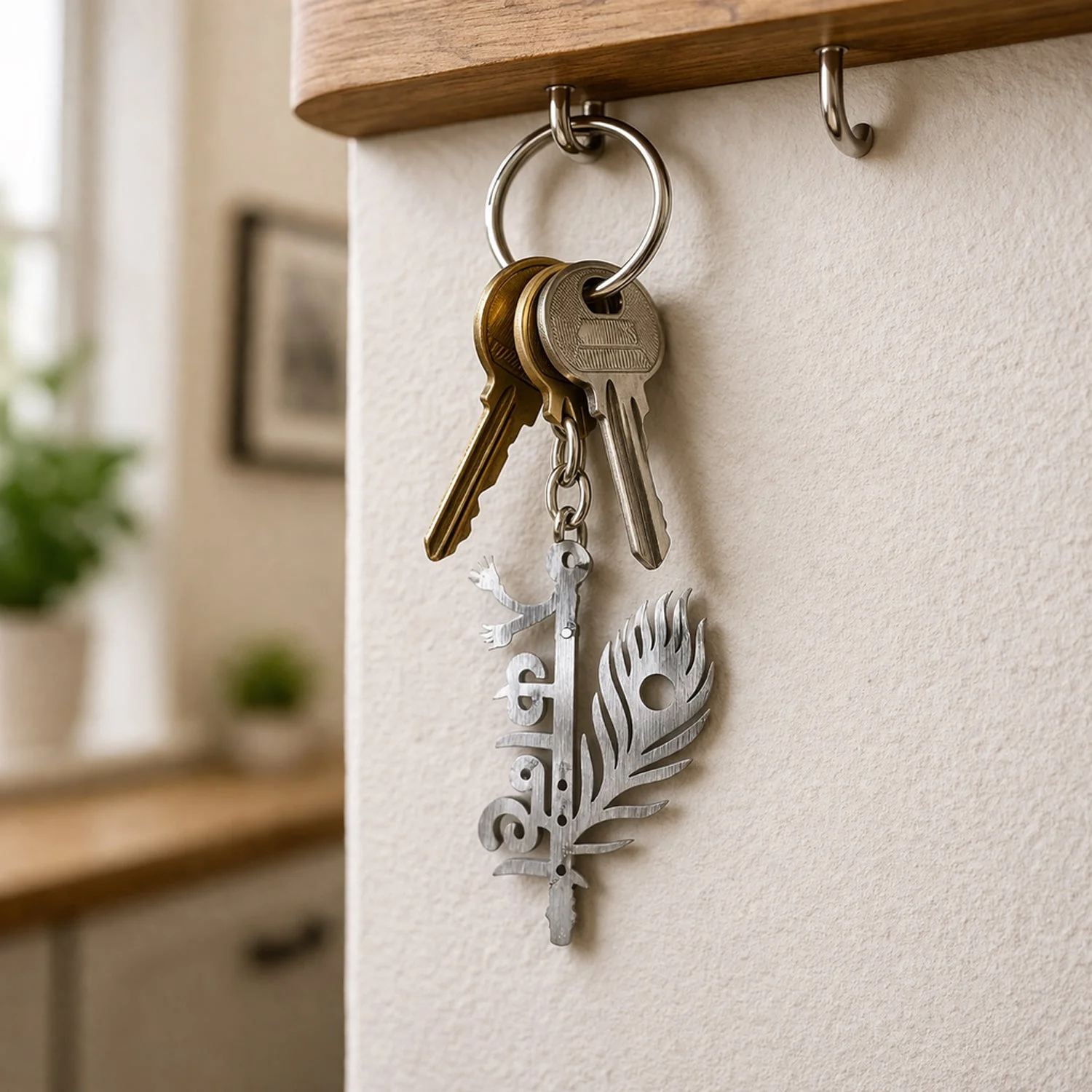 Premium Metal Kanha Keychain 1 Pc – Stylish Lord Krishna Engraved with Peacock Feather Design Durable Key Ring for Car, Bike, Home Keys and Spiritual Daily Use Accessory
