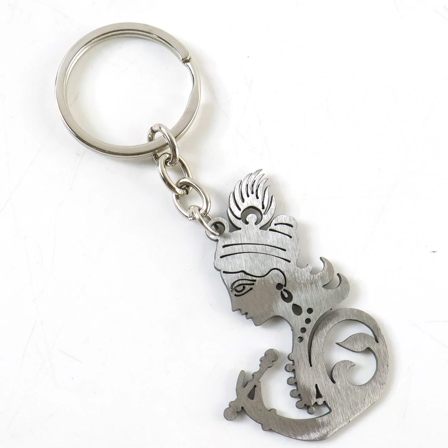 metal krishna face keychain premium design, lord krishna keychain with flute detailing, peacock feather krishna key ring, spiritual hindu god keychain metal, durable metal keychain for car bike keys, artistic krishna face pendant keychain, religious krishna keychain gift item, premium metal key ring for home keys, devotional krishna design keychain, small portable god keychain metal, handcrafted style krishna face keychain