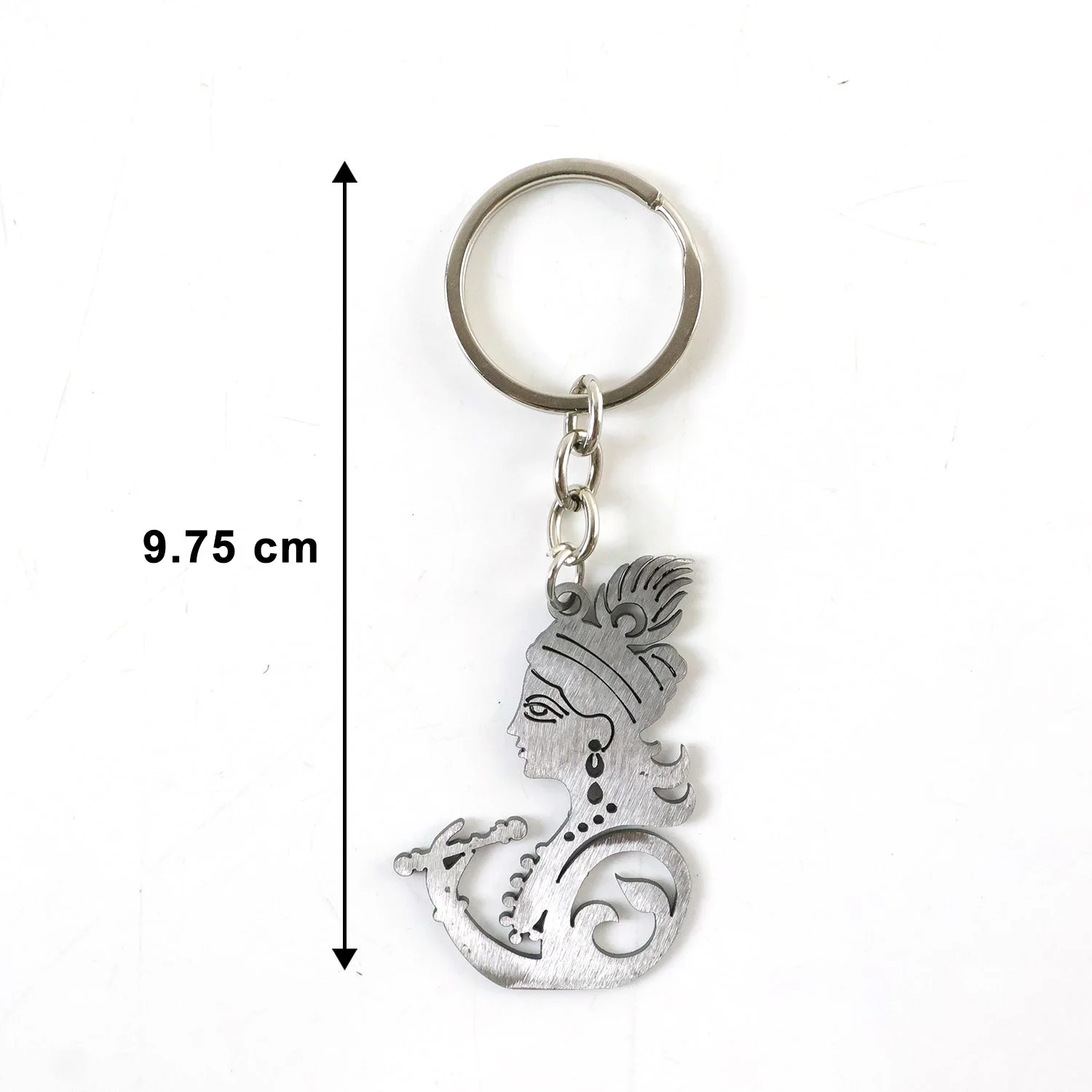Premium Metal Krishna Face Keychain 1 Pc – Artistic Lord Krishna Design with Flute and Peacock Feather Detailing Durable Key Ring for Car Bike Home Keys and Spiritual Daily Use